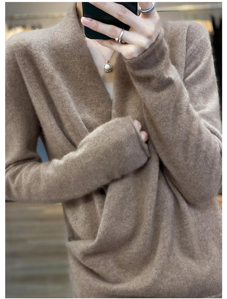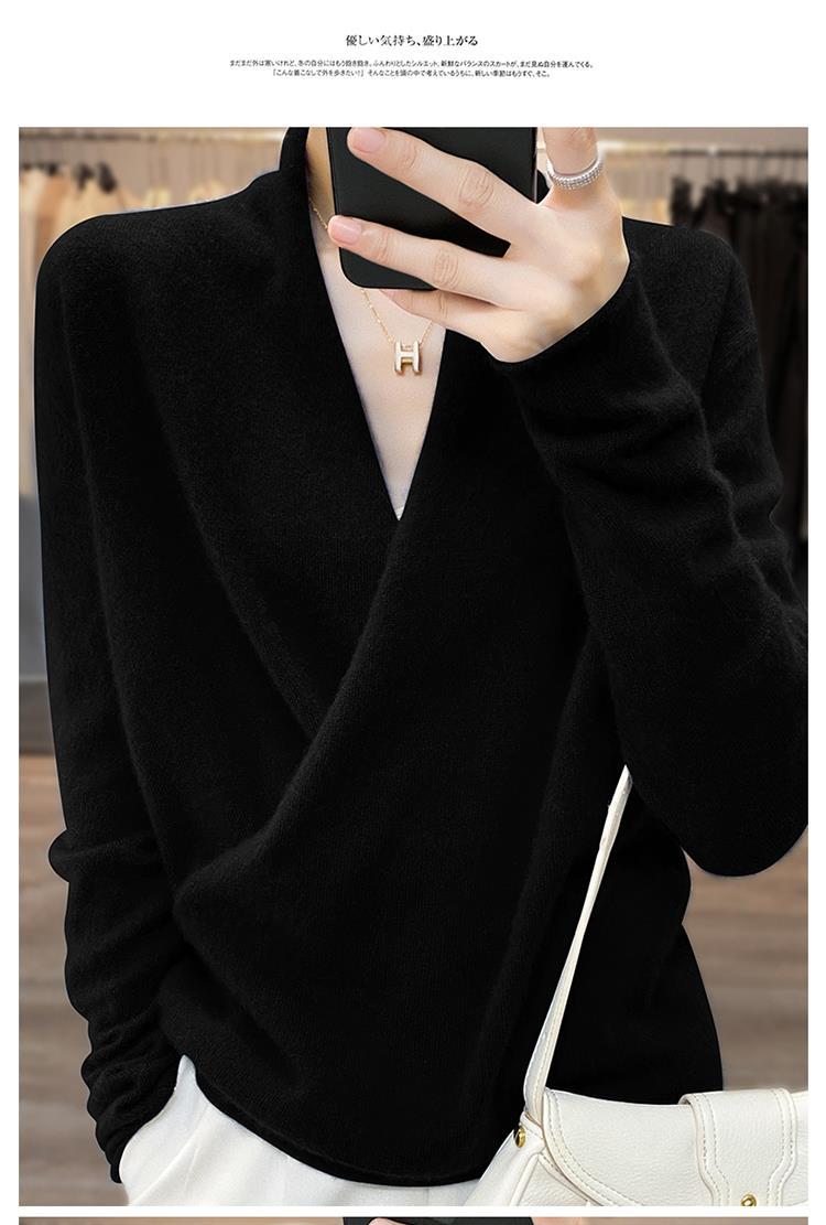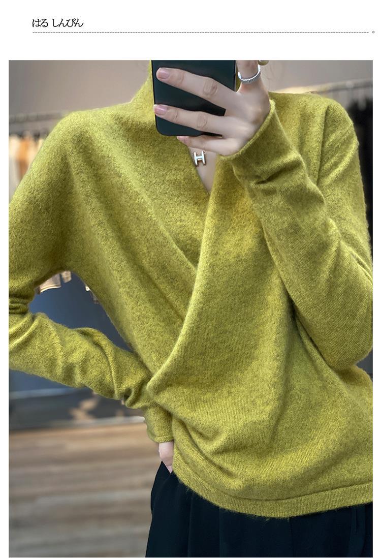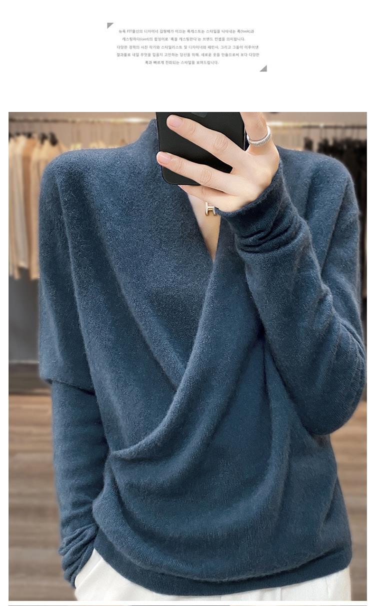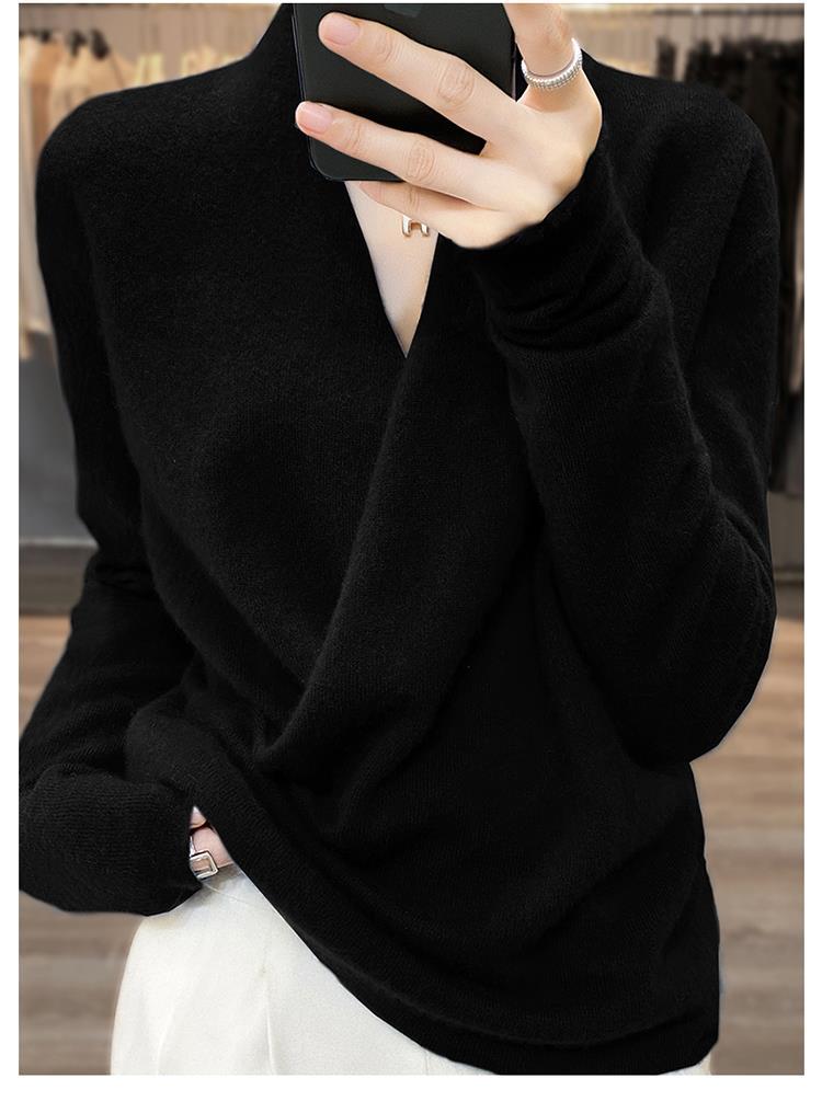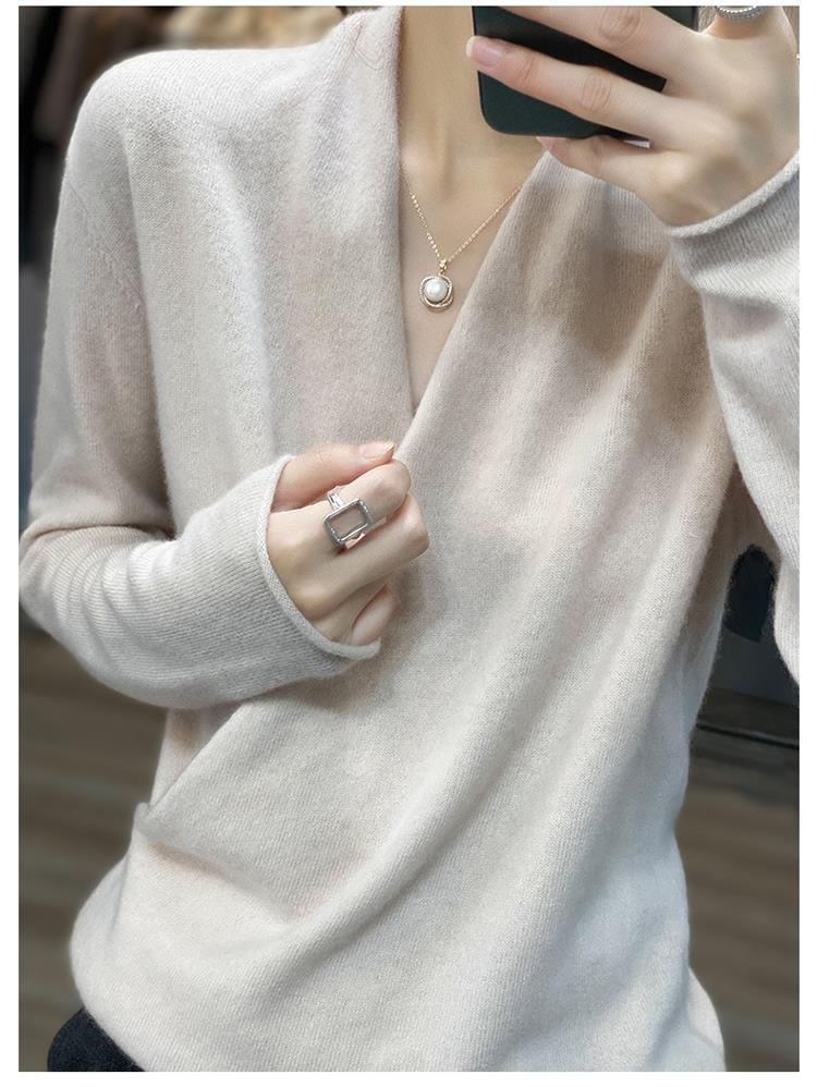 새로운 스타일 가슴 포장 100 순수 양모 스웨터 여성 패션 V-Neck 루즈 캐시미어 스웨터 가을과 겨울 서양식 니트 베이스 셔츠스토어 가기