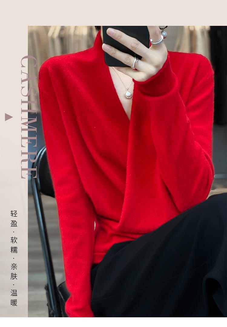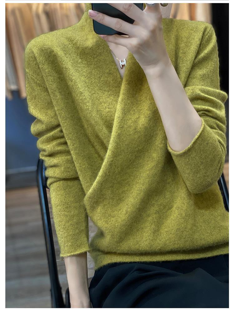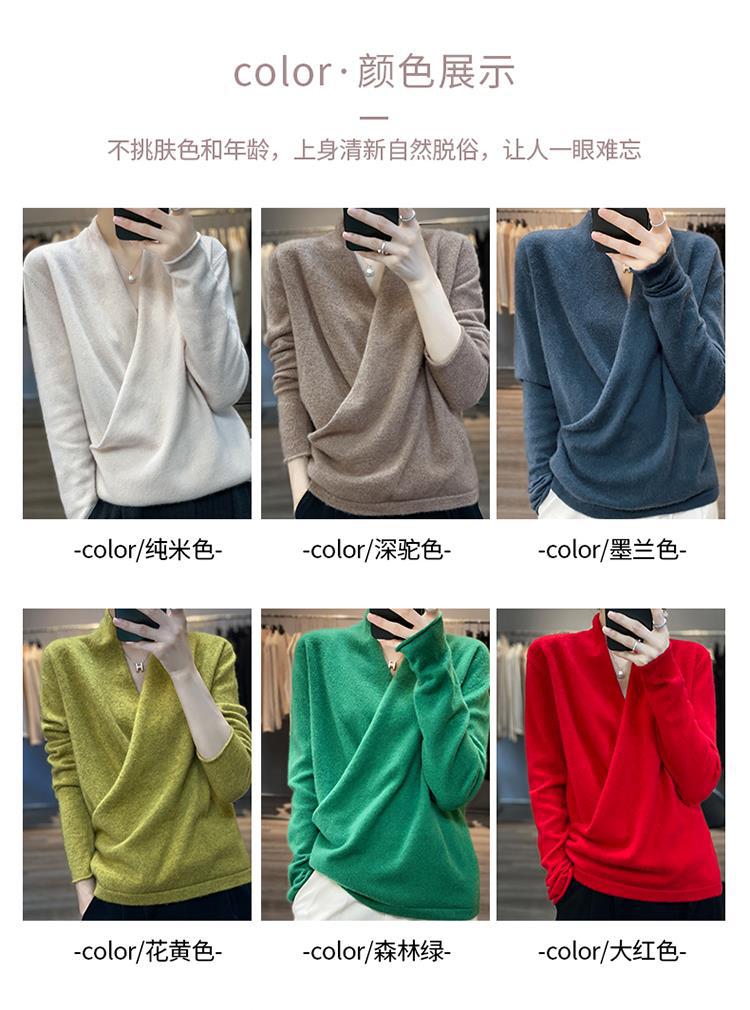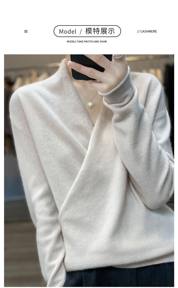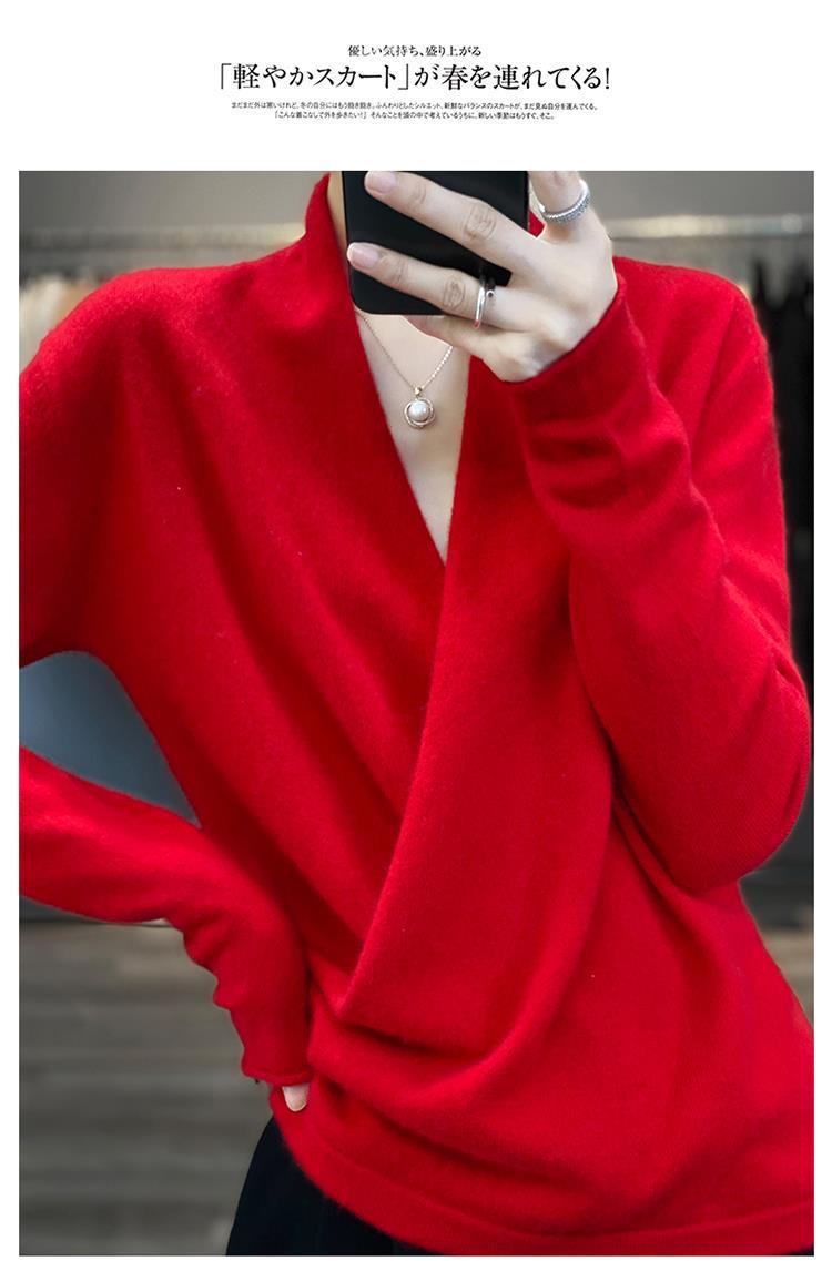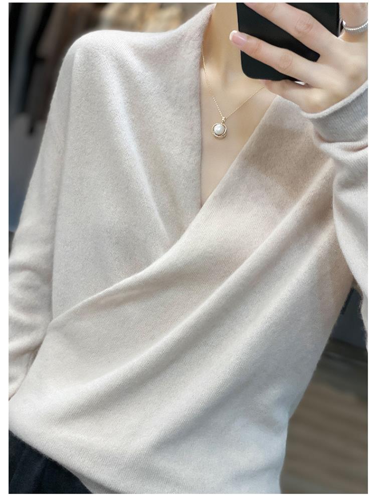 새로운 스타일 가슴 포장 100 순수 양모 스웨터 여성 패션 V-Neck 루즈 캐시미어 스웨터 가을과 겨울 서양식 니트 베이스 셔츠스토어 가기