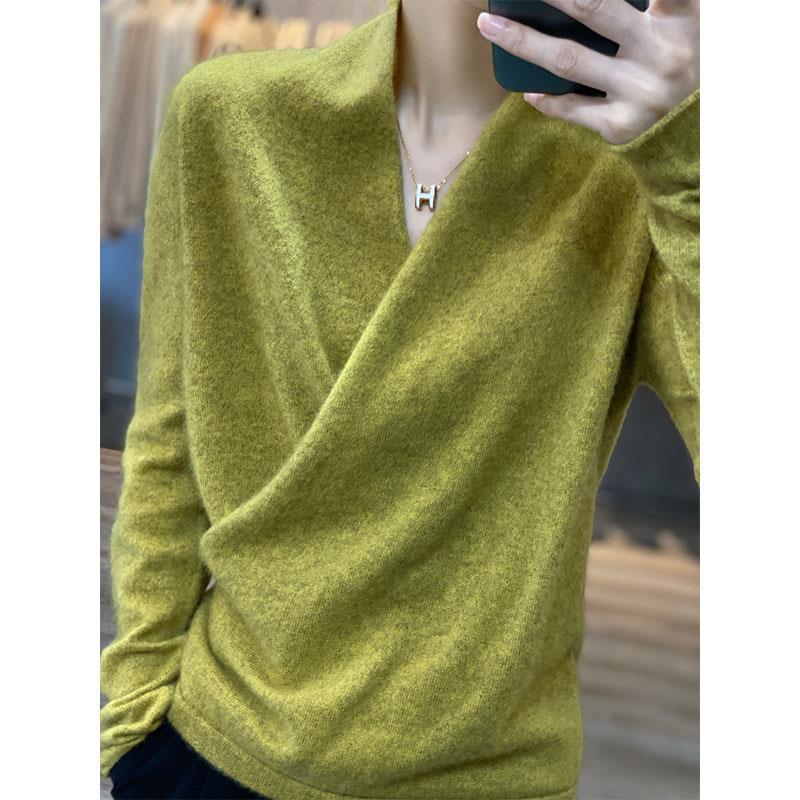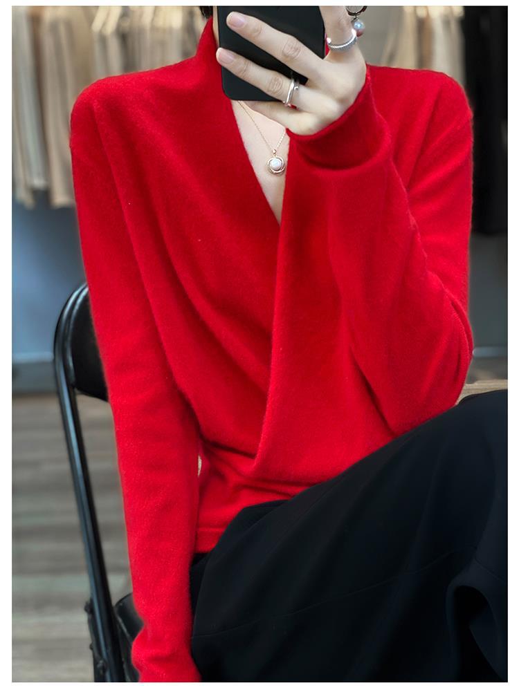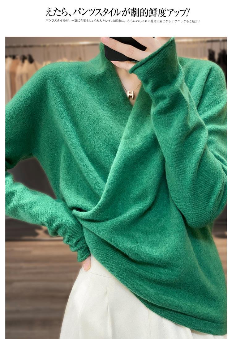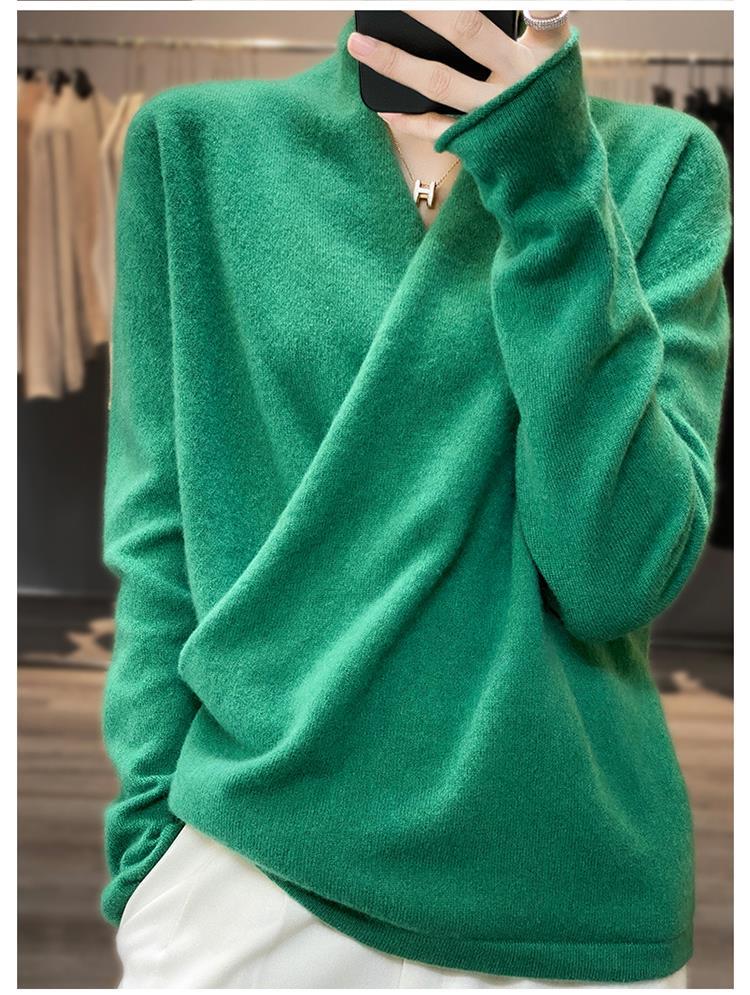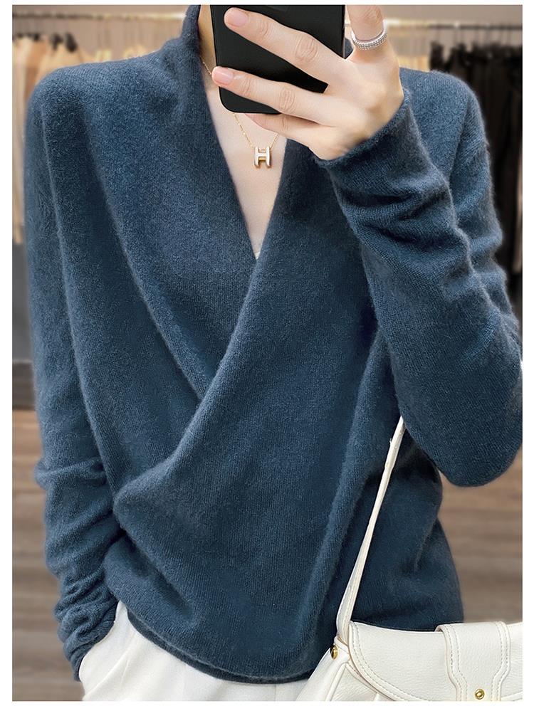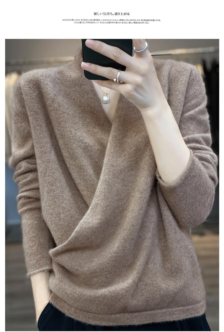 새로운 스타일 가슴 포장 100 순수 양모 스웨터 여성 패션 V-Neck 루즈 캐시미어 스웨터 가을과 겨울 서양식 니트 베이스 셔츠스토어 가기