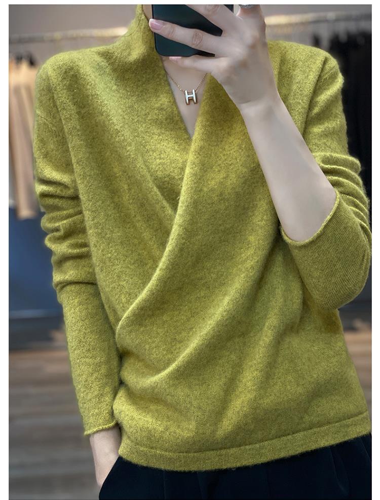 새로운 스타일 가슴 포장 100 순수 양모 스웨터 여성 패션 V-Neck 루즈 캐시미어 스웨터 가을과 겨울 서양식 니트 베이스 셔츠