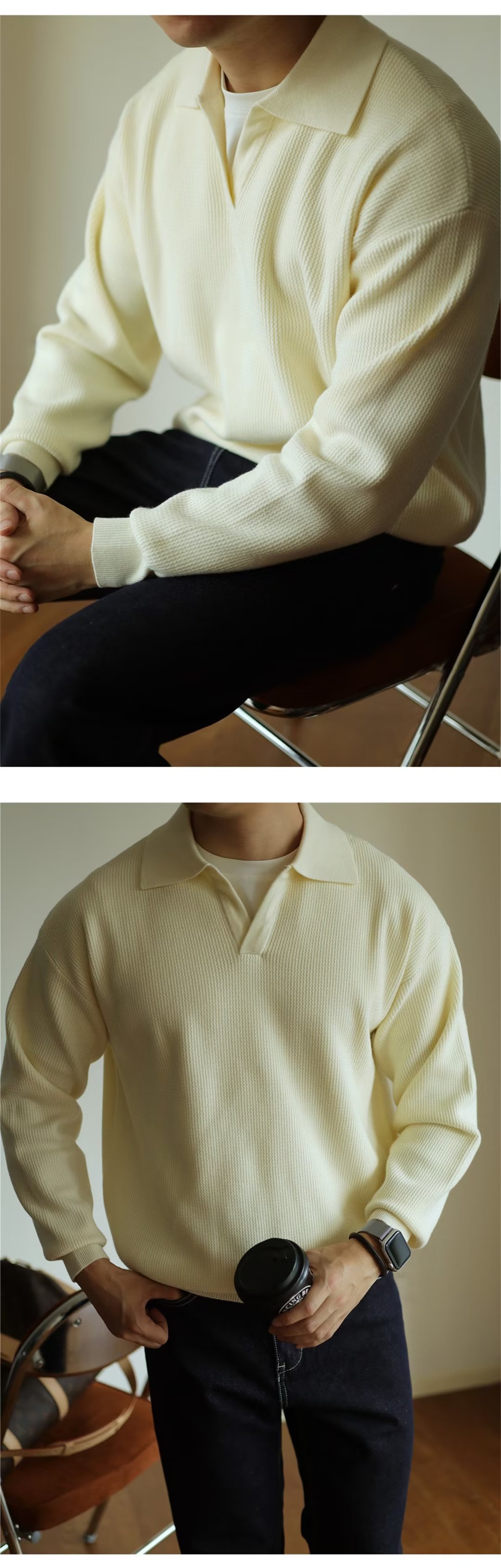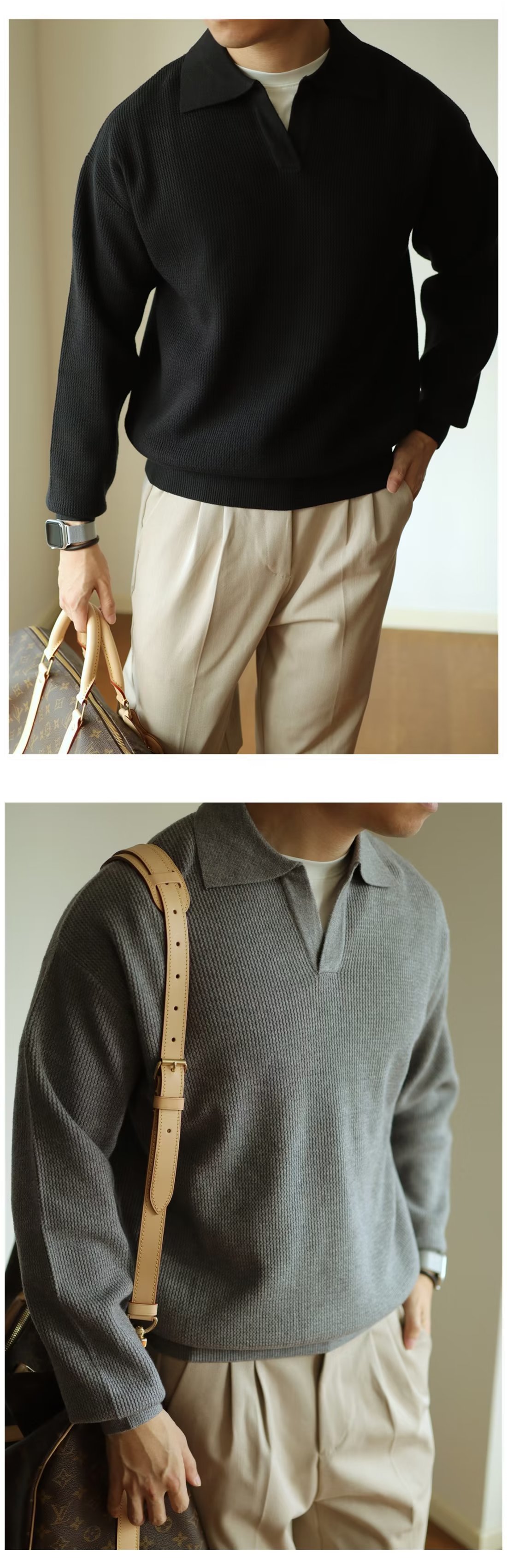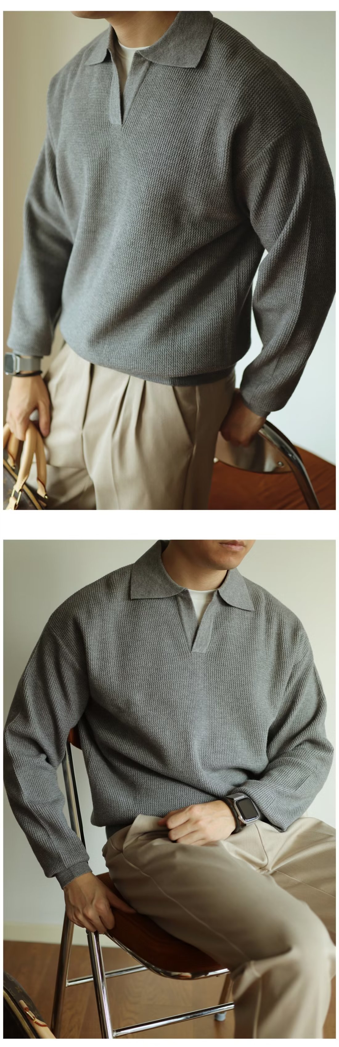 국경을 넘나 드는 가을과 겨울 그레이 V 넥 풀오버 스웨터 남자 한국식 슬림 핏 긴팔 폴로 셔츠 니트 캐주얼베이스 셔츠스토어 가기