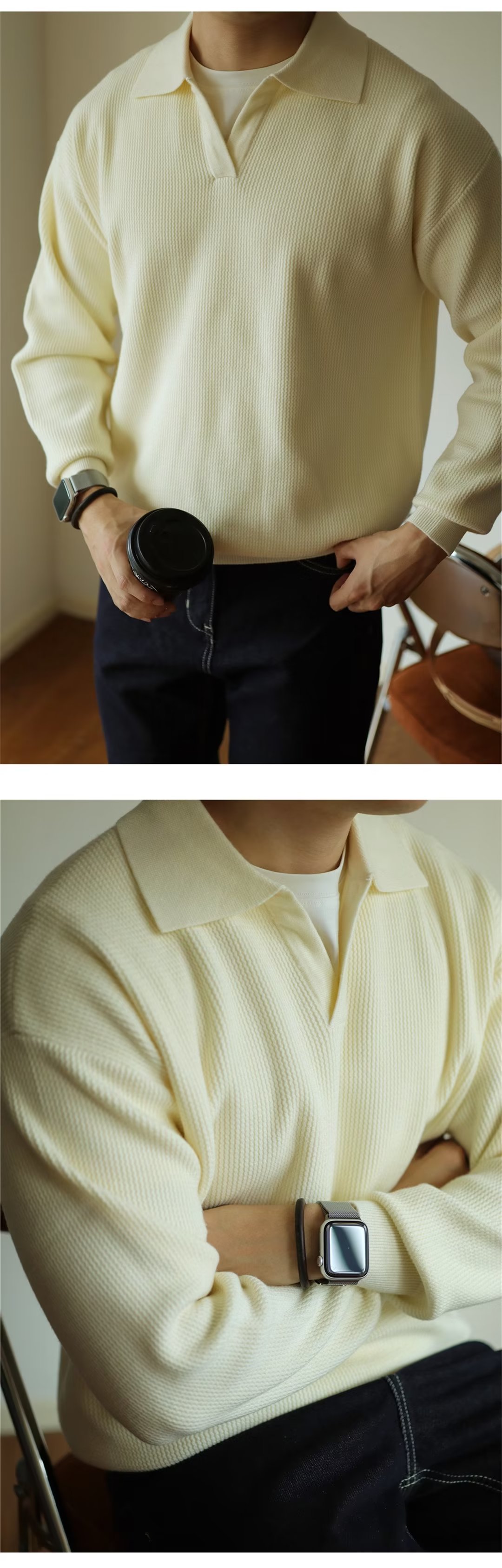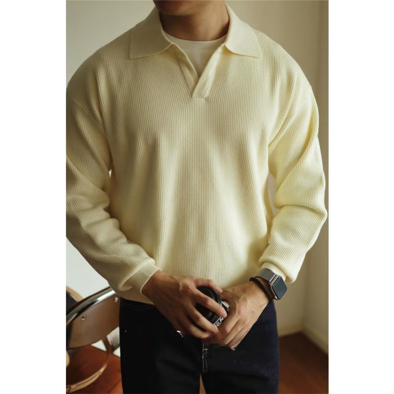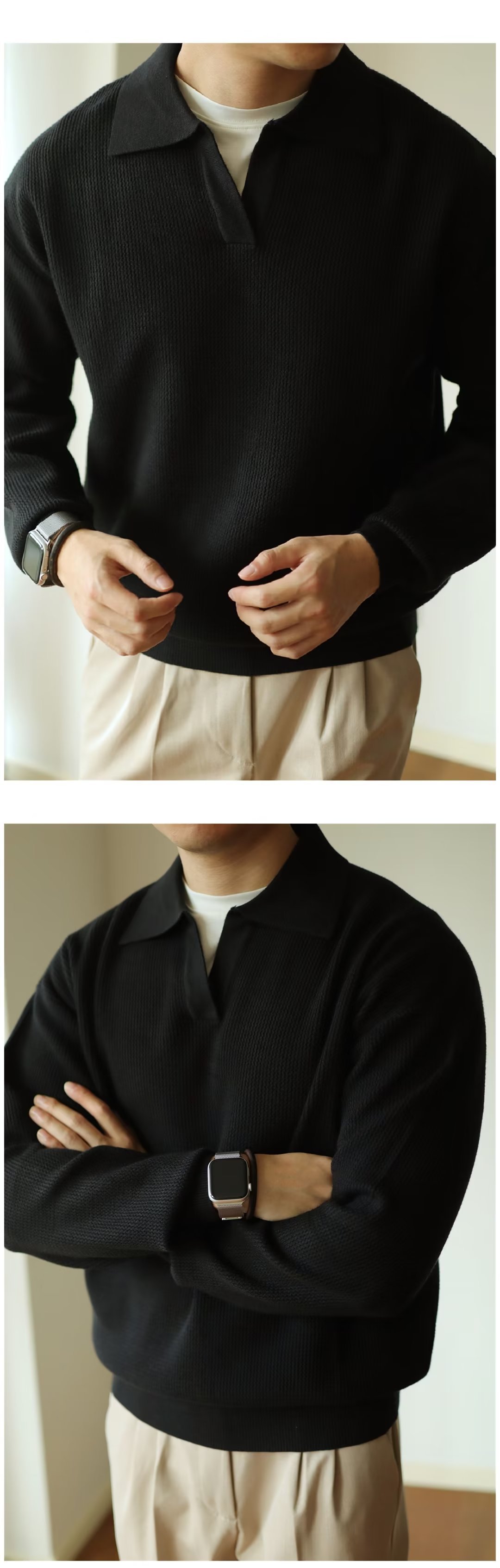 국경을 넘나 드는 가을과 겨울 그레이 V 넥 풀오버 스웨터 남자 한국식 슬림 핏 긴팔 폴로 셔츠 니트 캐주얼베이스 셔츠스토어 가기