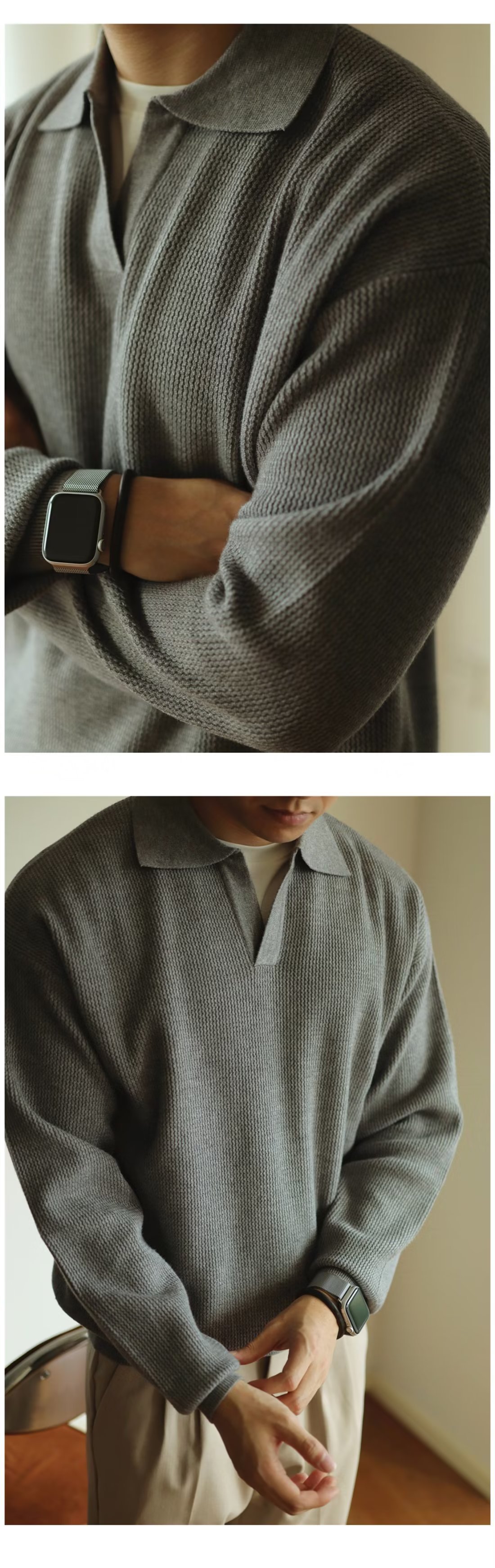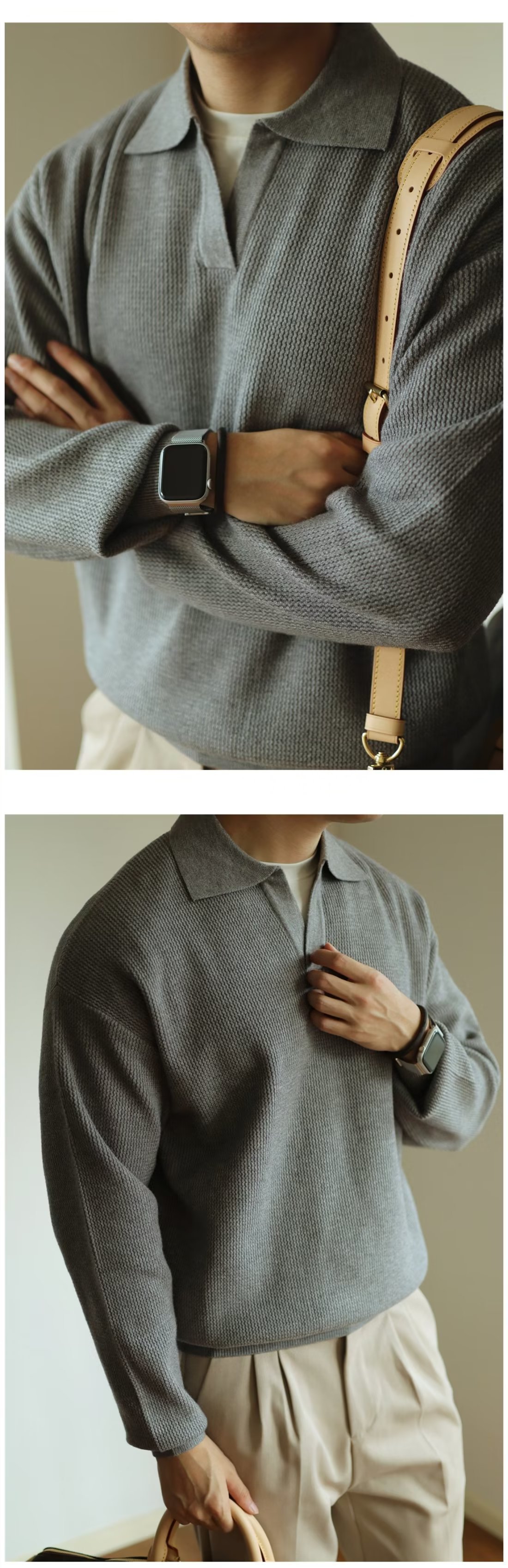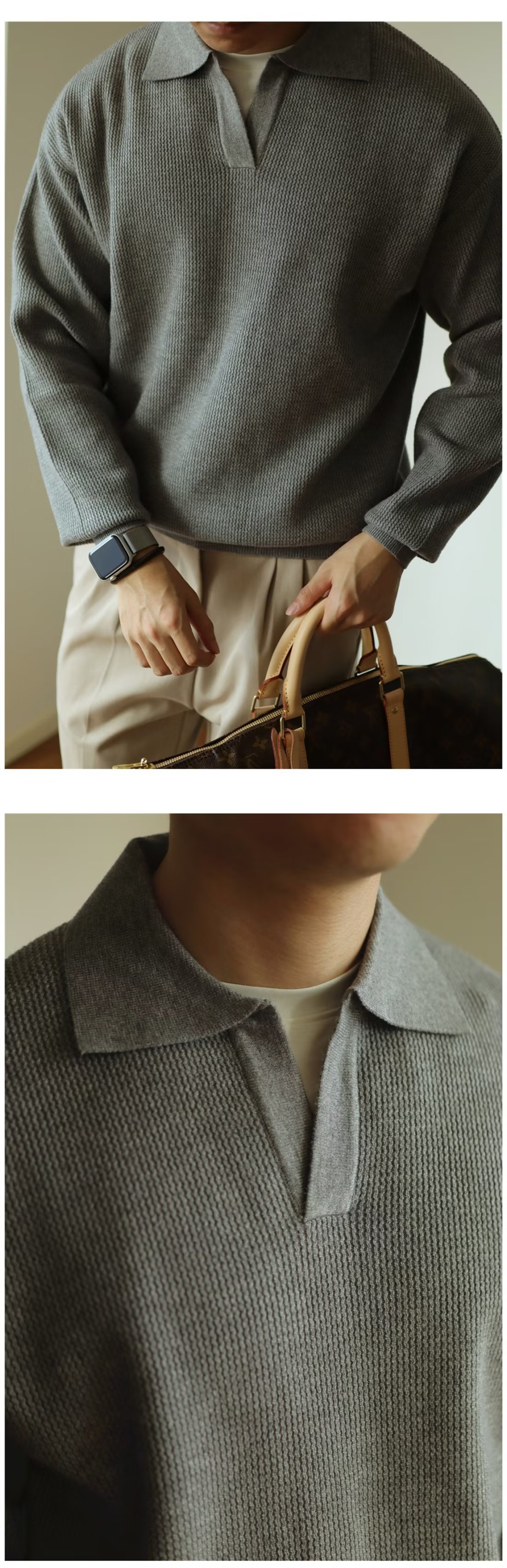 국경을 넘나 드는 가을과 겨울 그레이 V 넥 풀오버 스웨터 남자 한국식 슬림 핏 긴팔 폴로 셔츠 니트 캐주얼베이스 셔츠
