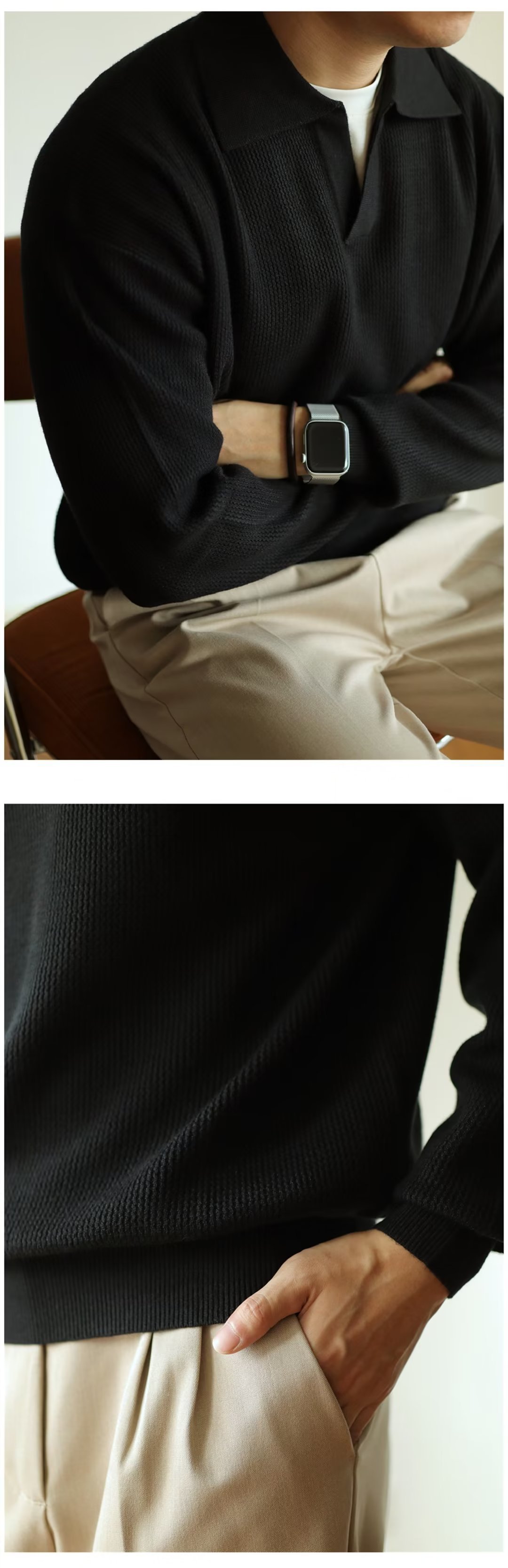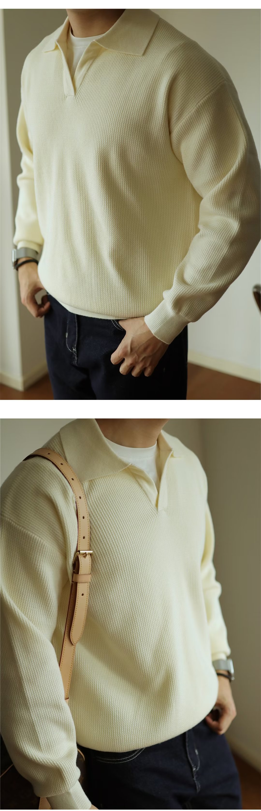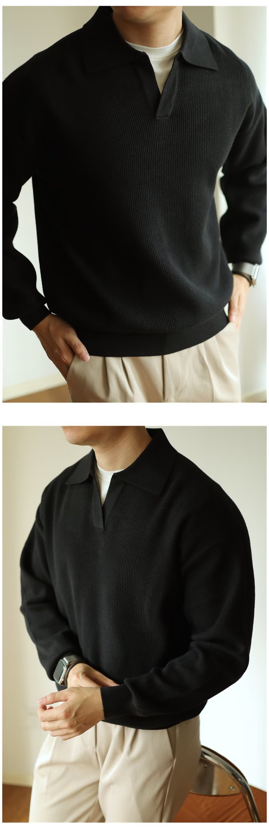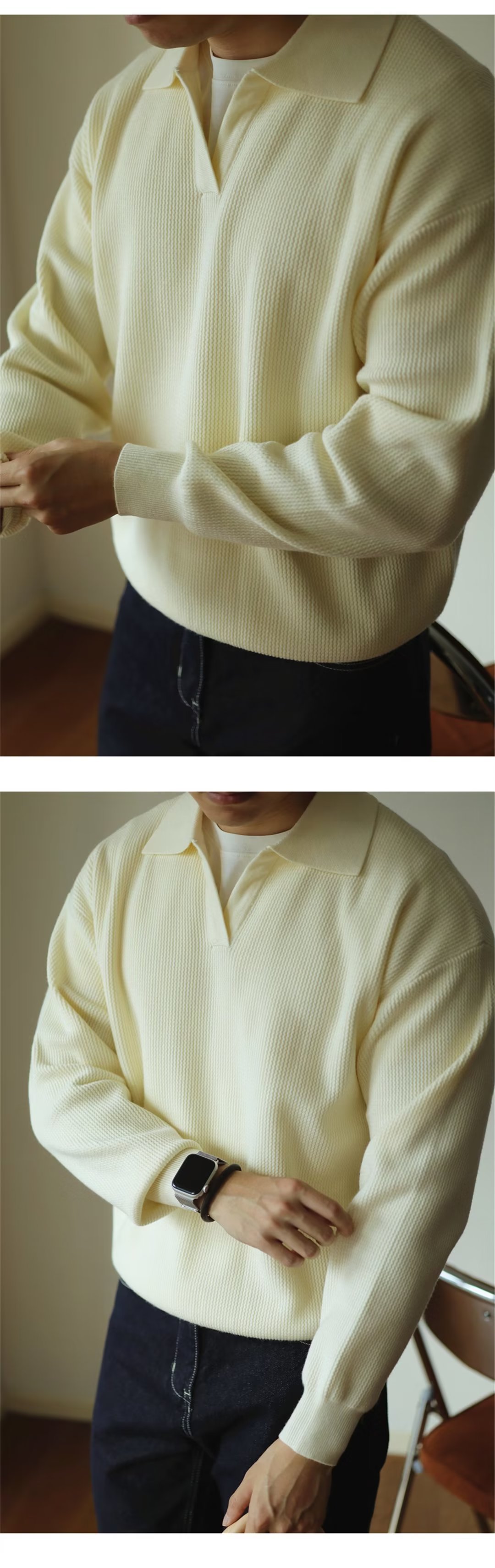 국경을 넘나 드는 가을과 겨울 그레이 V 넥 풀오버 스웨터 남자 한국식 슬림 핏 긴팔 폴로 셔츠 니트 캐주얼베이스 셔츠