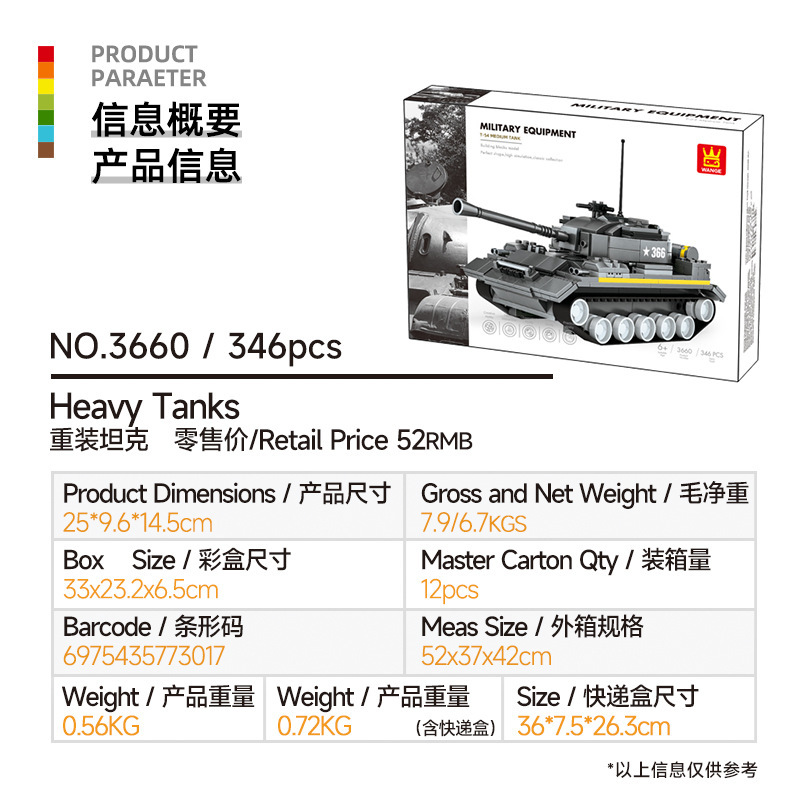 Wange 3510-4517 탱크 기갑 차량 시리즈 장식품 모델 어린이 소년 조립 건물 블록 장난감 선물