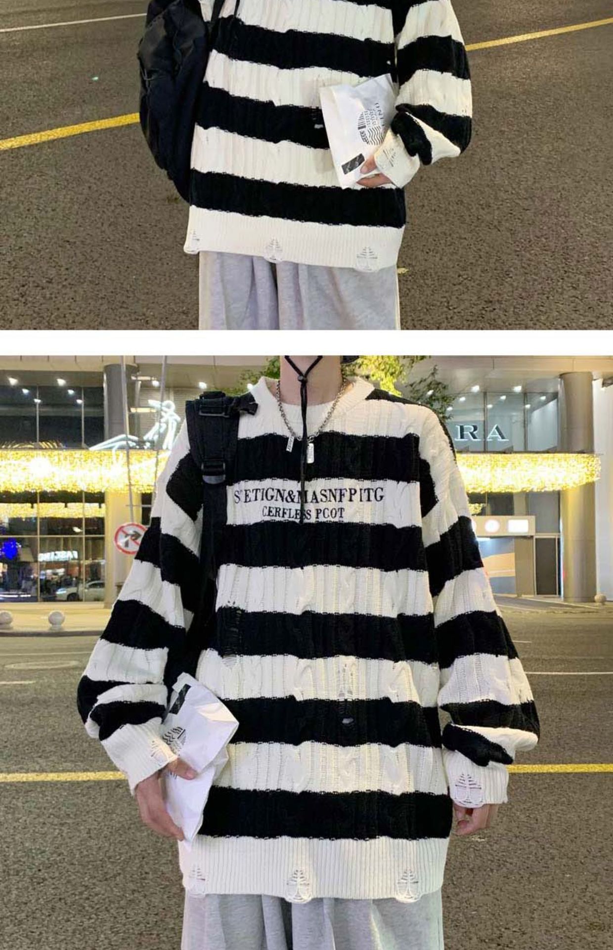 국경 간 가을과 겨울 레트로 게으른 줄무늬 스웨터 Ins 패션 브랜드 느슨한 Bf 스타일 커플 풀오버 아우터 착용 니트 스웨터스토어 가기