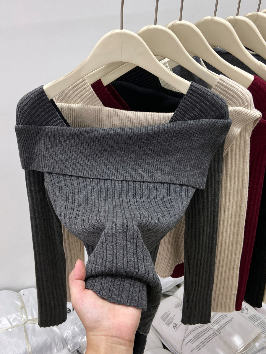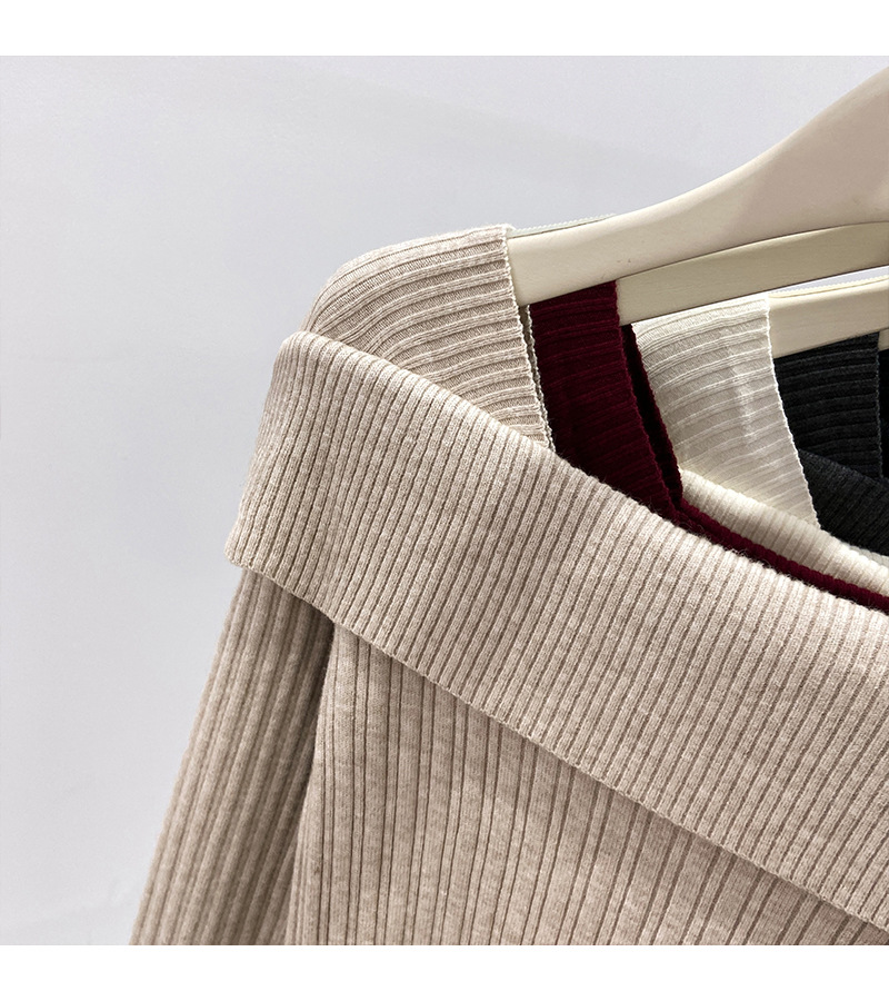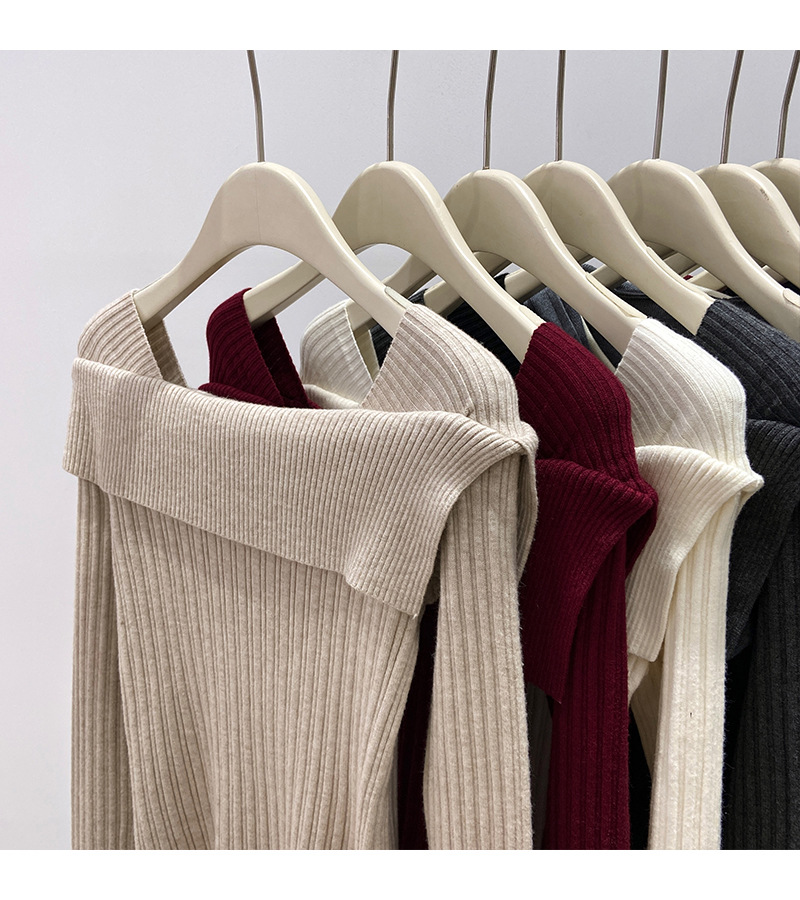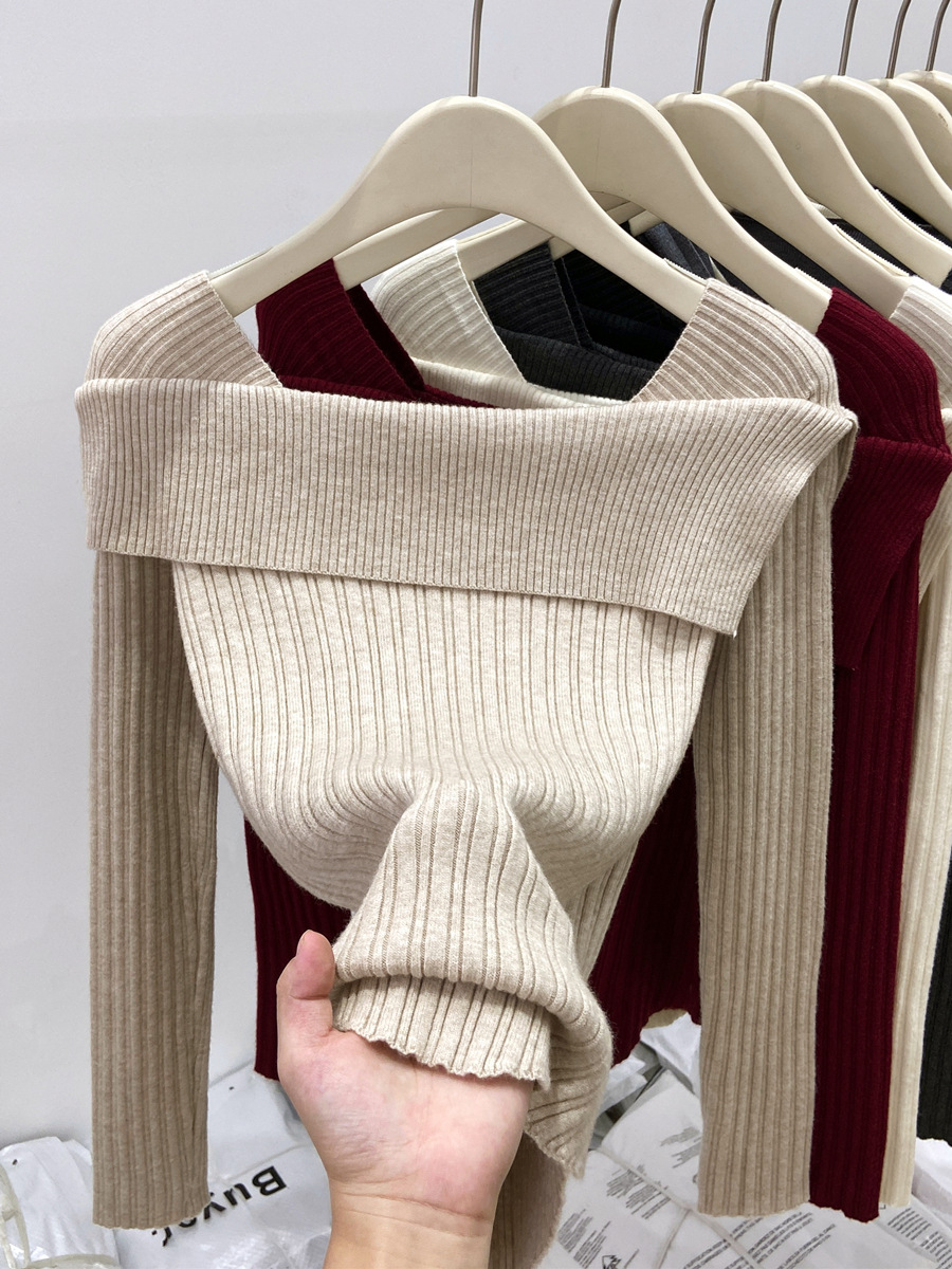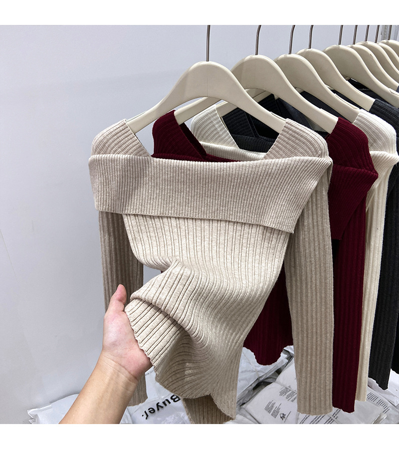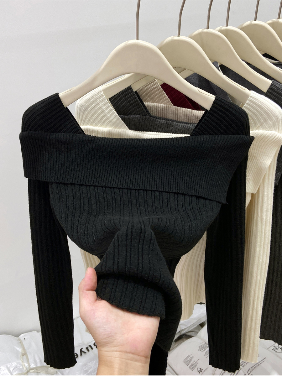 어깨 니트베이스 셔츠 여성의 가을 불규칙한 프랑스 높은 허리 어깨 쇄골 긴 소매 탑 도매스토어 가기