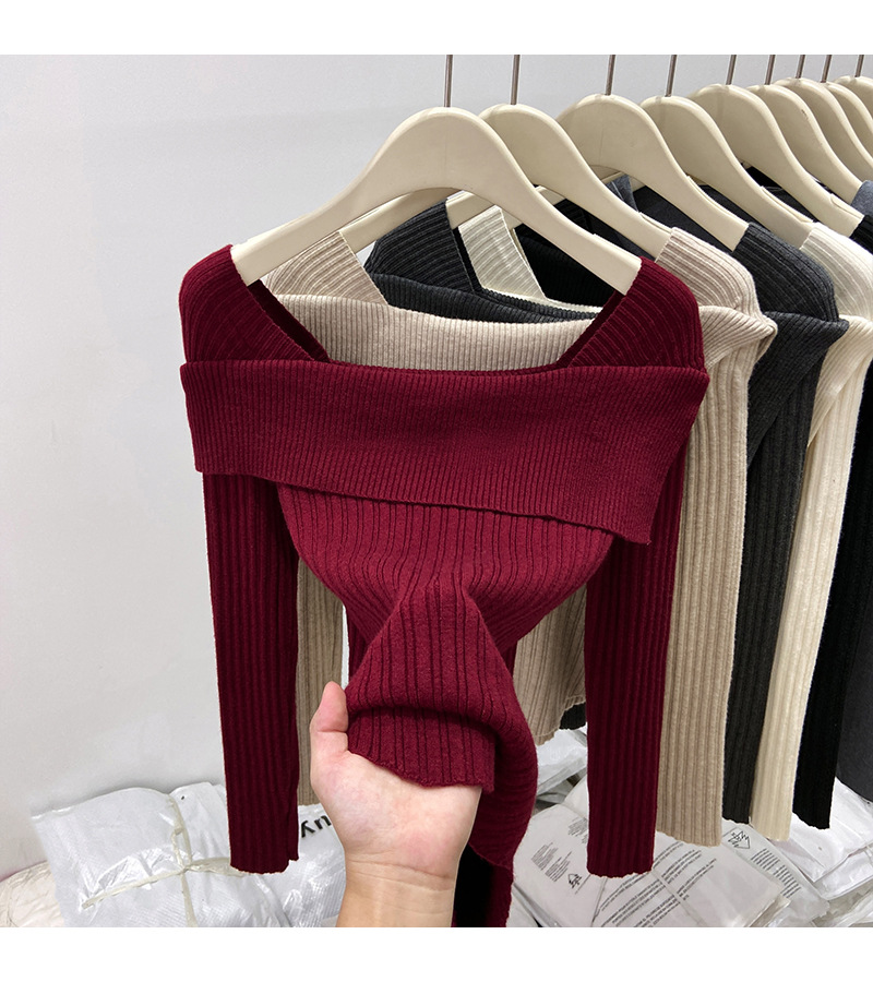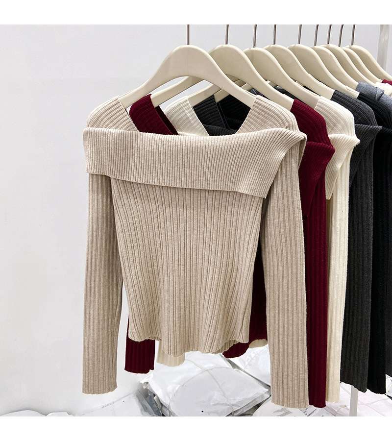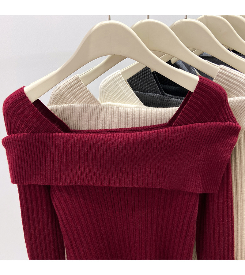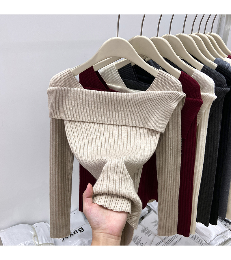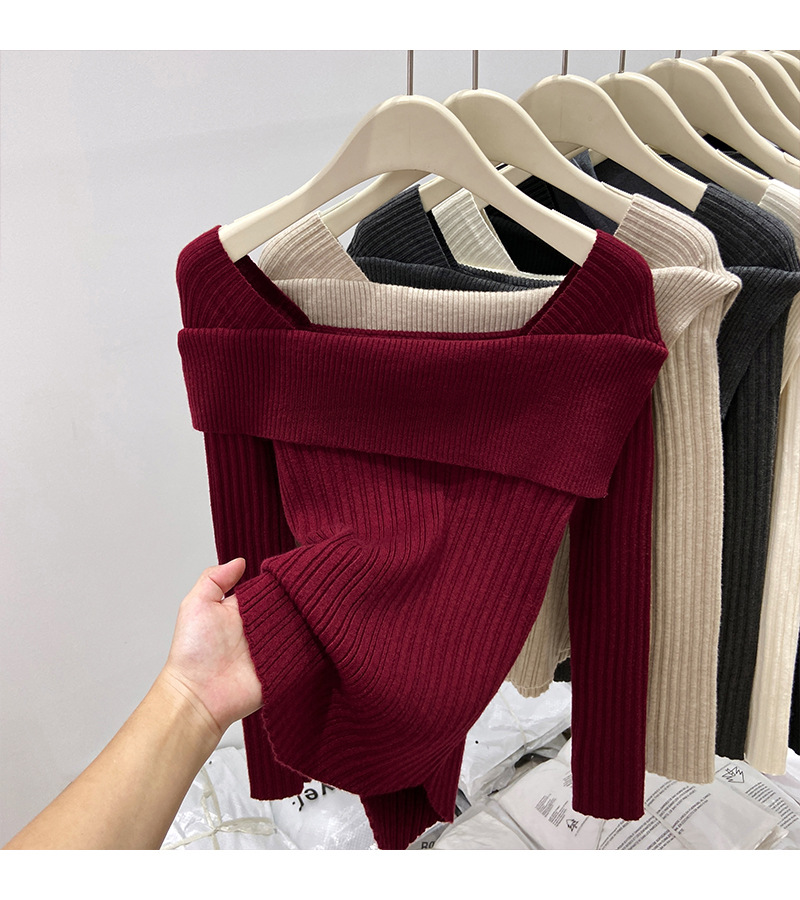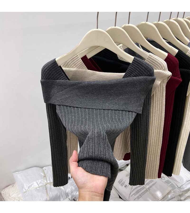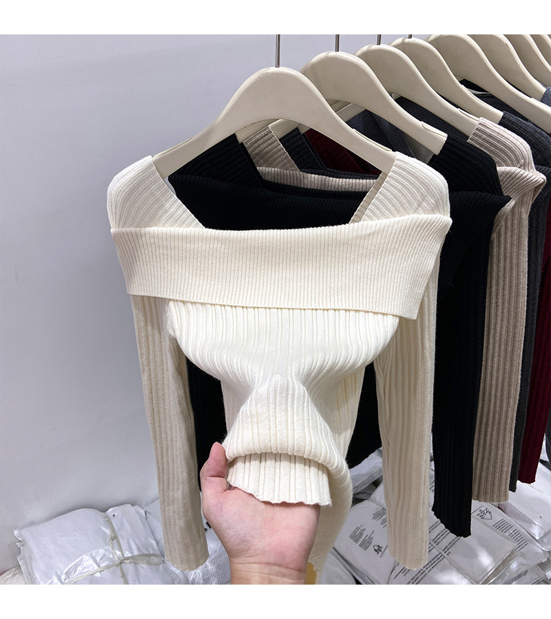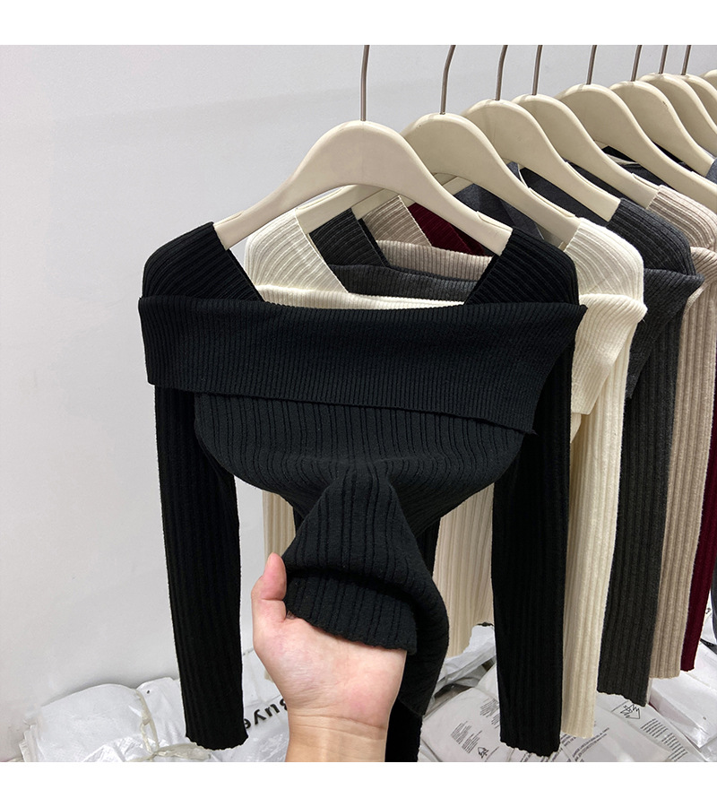 어깨 니트베이스 셔츠 여성의 가을 불규칙한 프랑스 높은 허리 어깨 쇄골 긴 소매 탑 도매스토어 가기