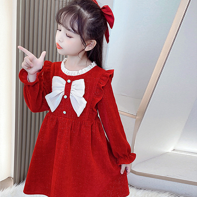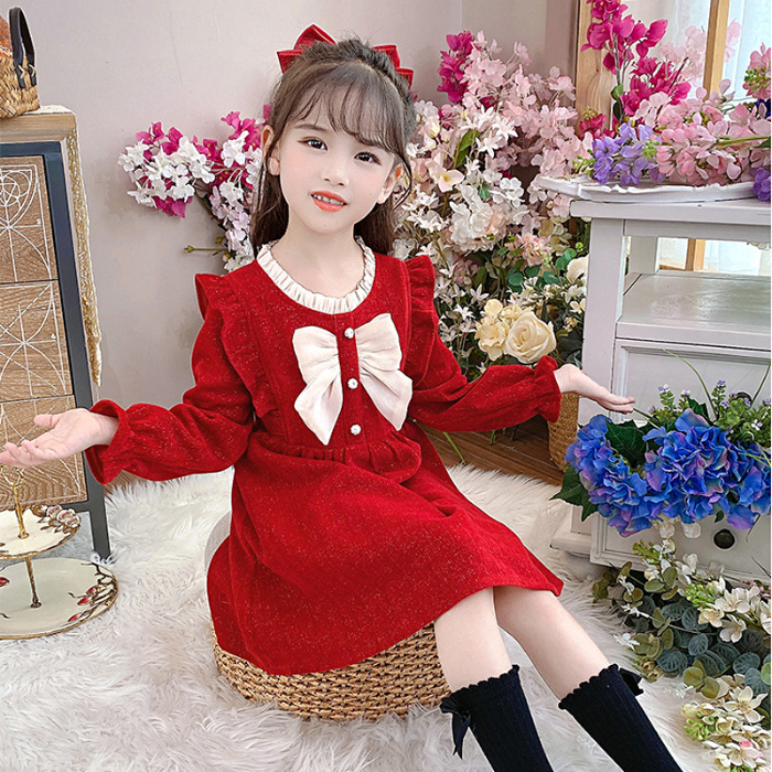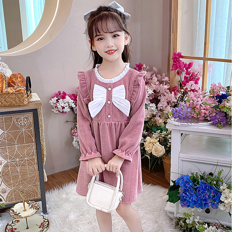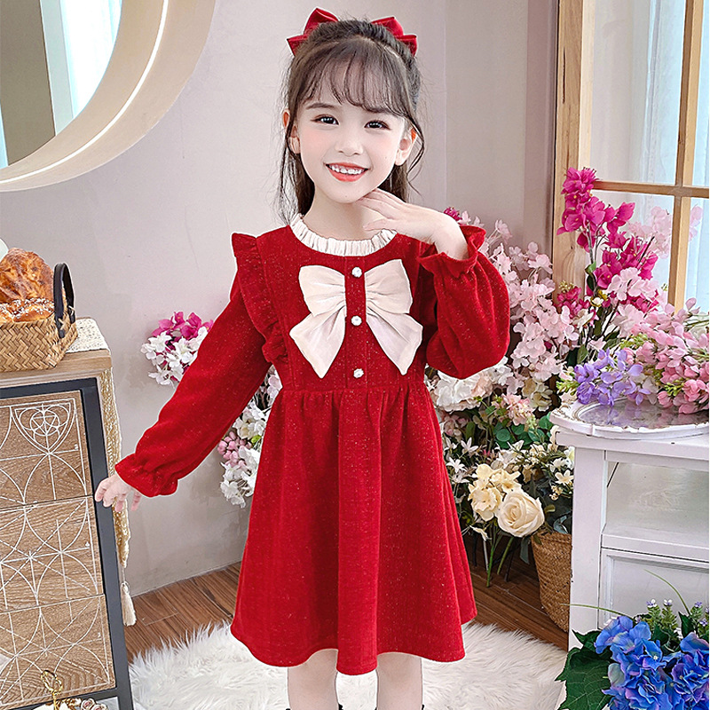 가을 겨울 신작 아동복, 캐주얼하고 다재다능한 여아 긴팔 드레스, 패셔너블하고 귀여운 여아 휴일 공연 드레스스토어 가기