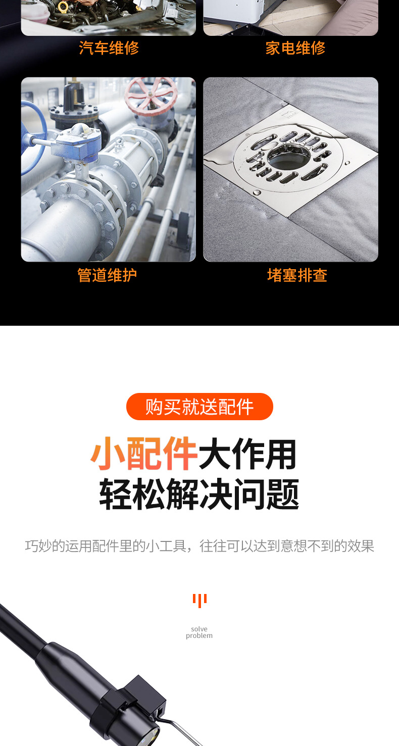 2025款,新品工业内窥镜上市,采用4.3寸IPS全视角硬屏,支持1-100米线长,8mm超清1080P摄像头,180°画面旋转,黑白画面切换,镜头搭配8个超量LED灯珠,1米仅需59元,新品限时促销。