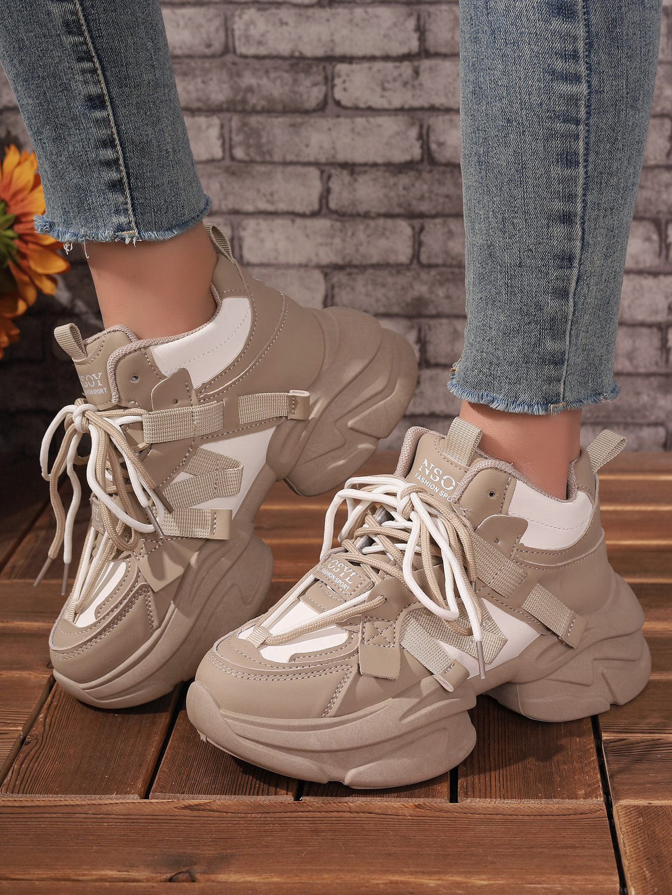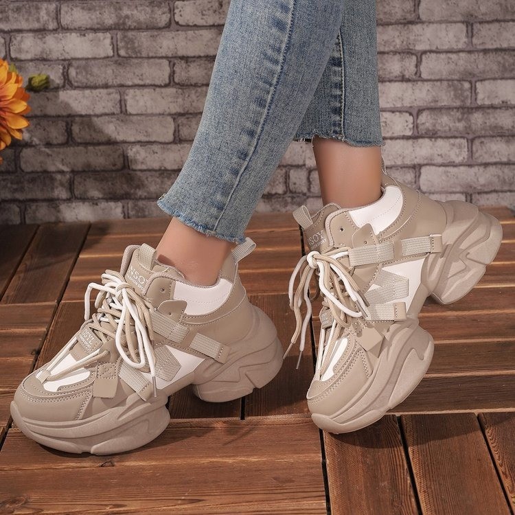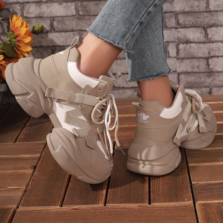 두꺼운 밑창 토르 신발 캐주얼 운동화 여성 봄 새로운 라운드 토드 크로스 벨트 대학 스타일의 세련된 올 매치 운동화