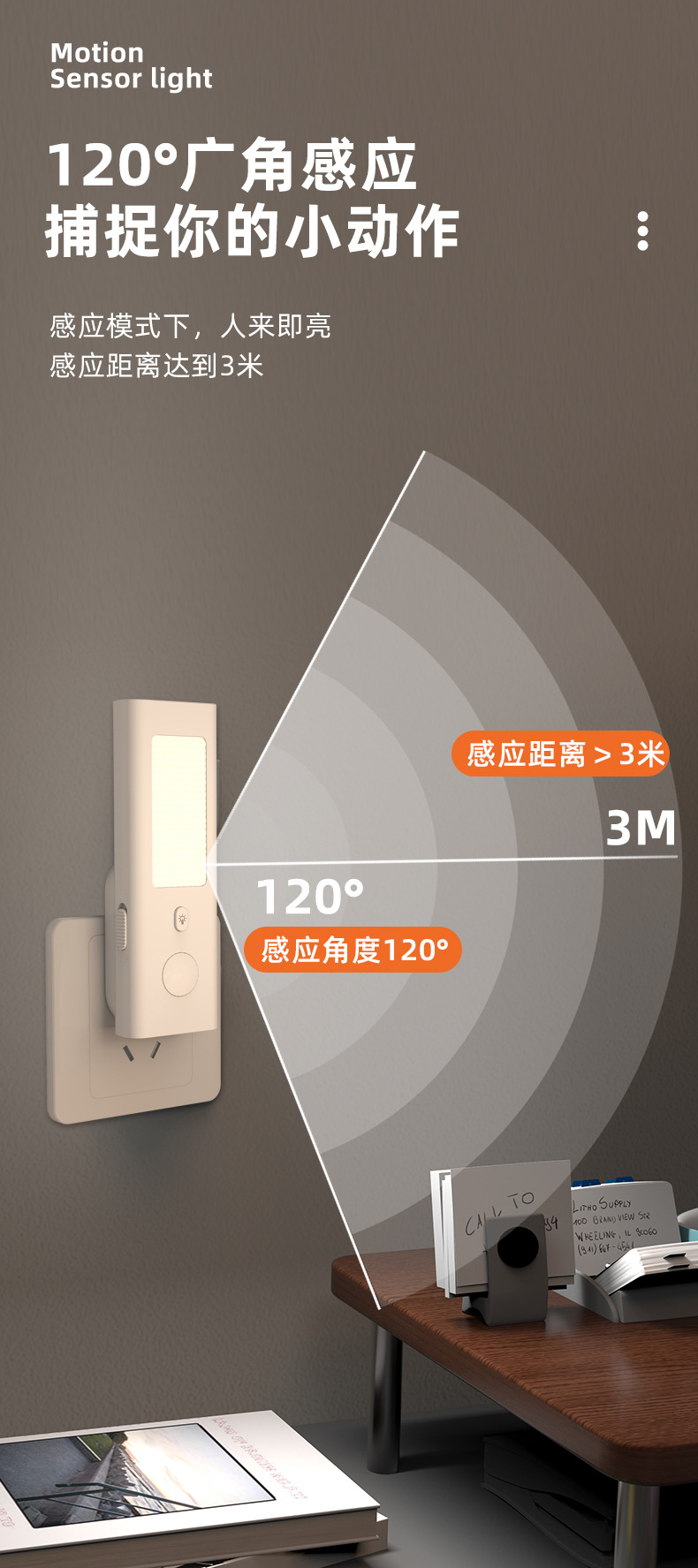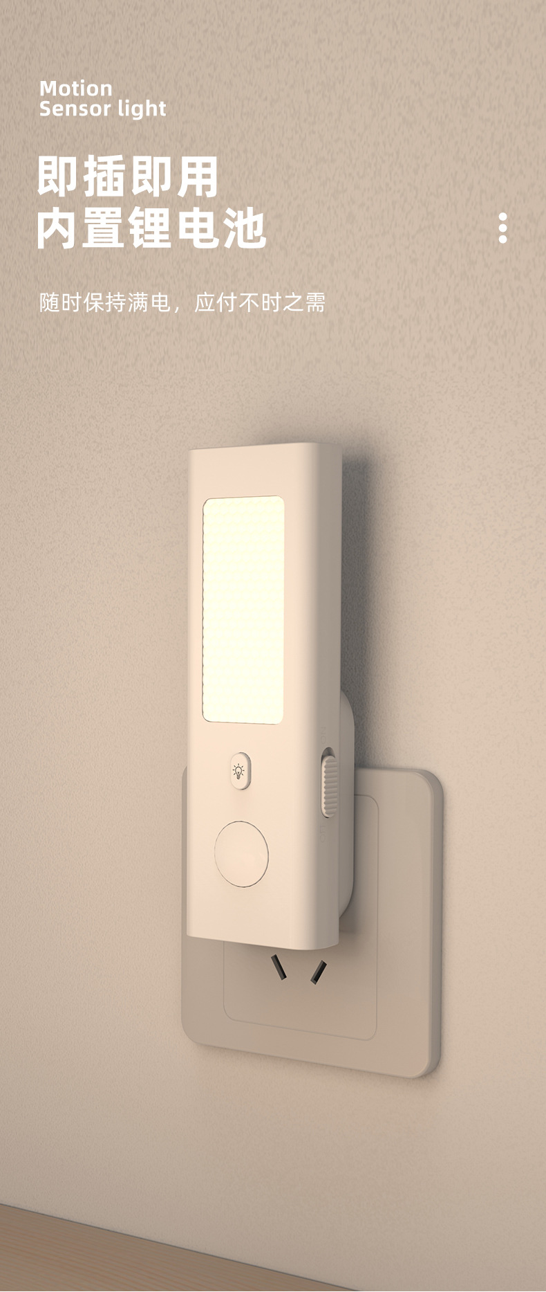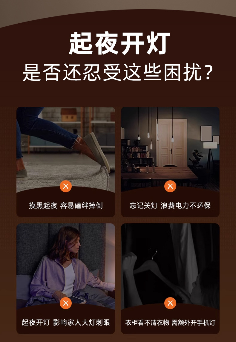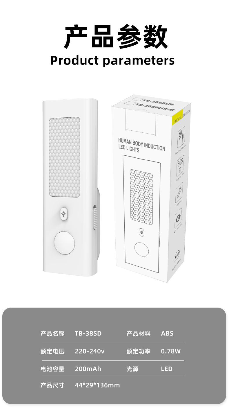 국경을 넘는 인기 상품, 인체 감지 센서로 사람이 움직일 때 조명이 꺼지고 사람이 다가갈 때 조명이 켜지는 센서 내장형 플러그인 스위치 포함 충전식 겸용 소형 야간등