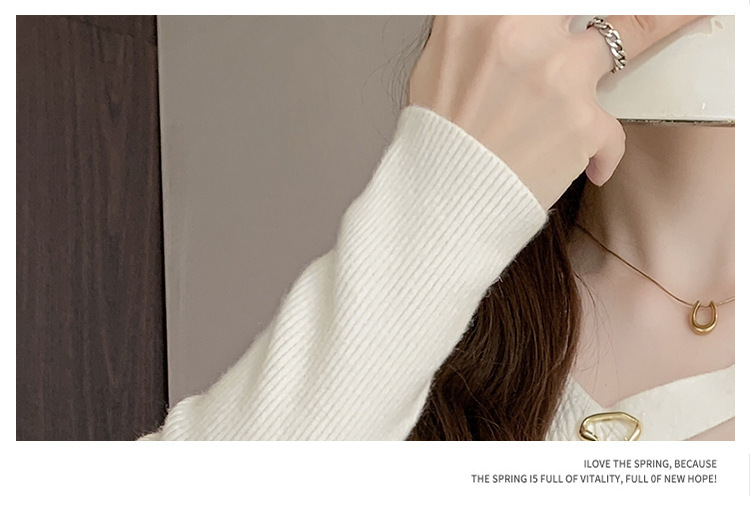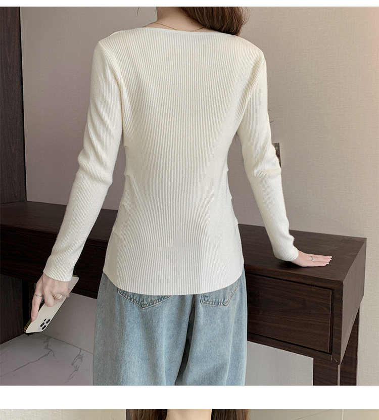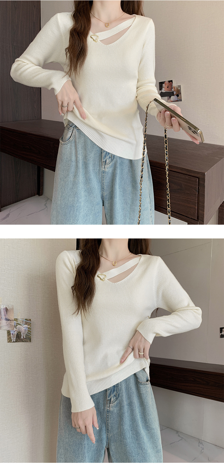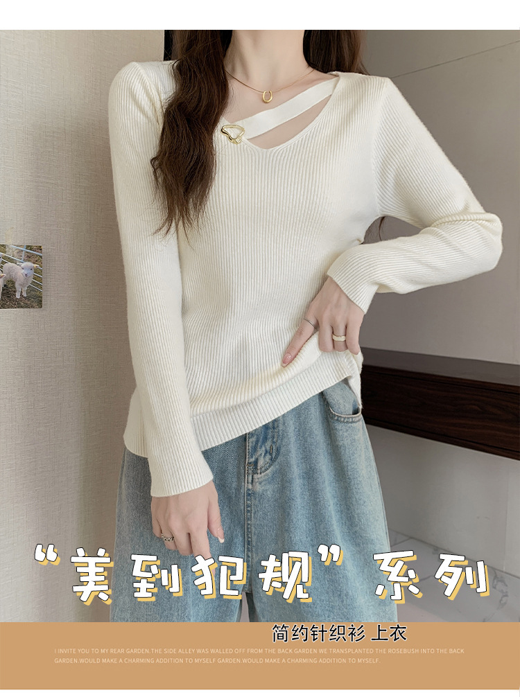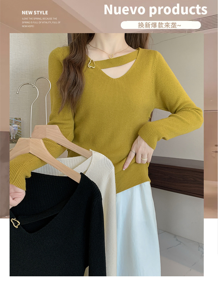 중공 디자인 센스 긴 소매베이스 셔츠 여성용 내복 가을 새 Collarbone 케어 기계 니트 V-Neck 스웨터 외부 착용스토어 가기
