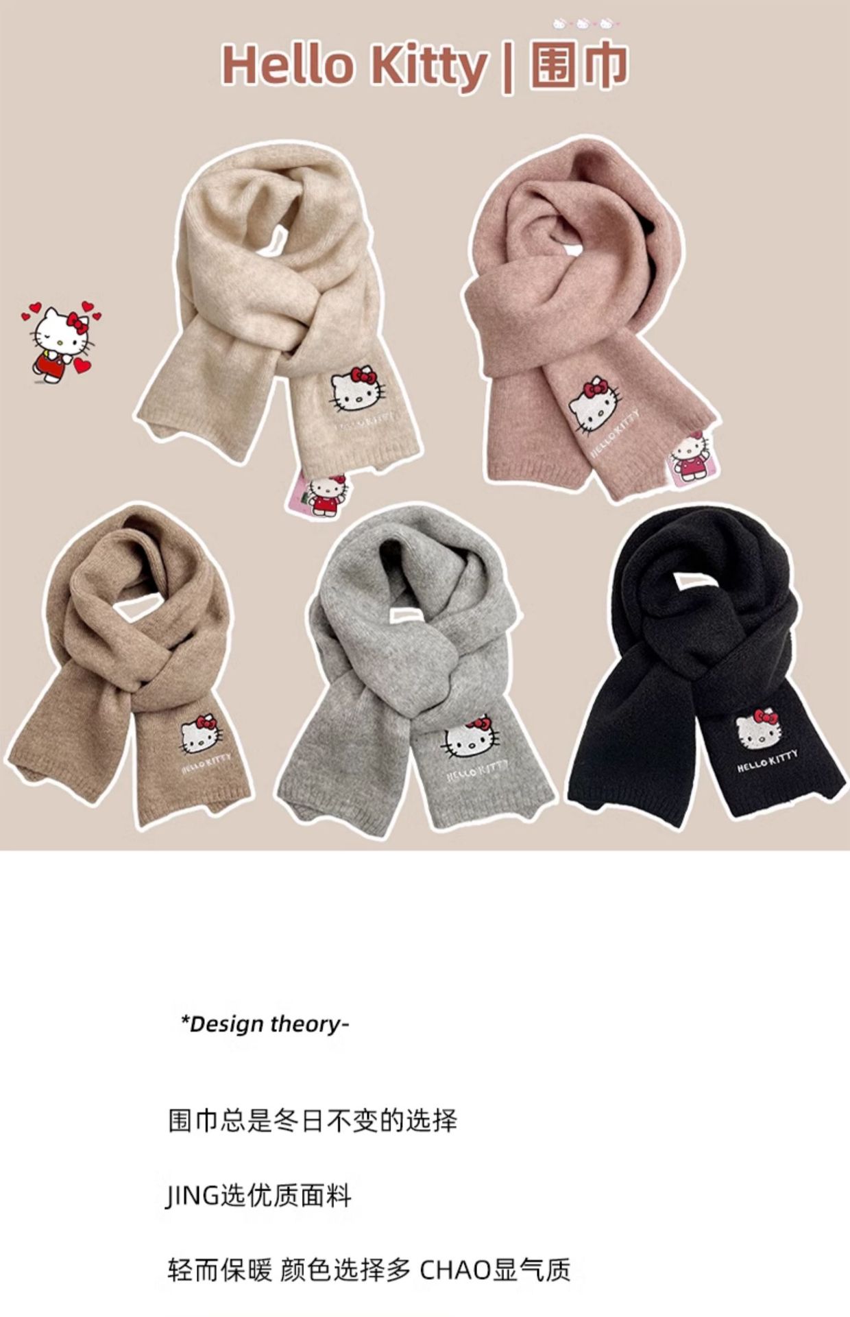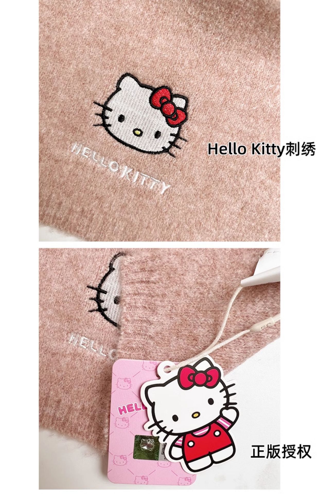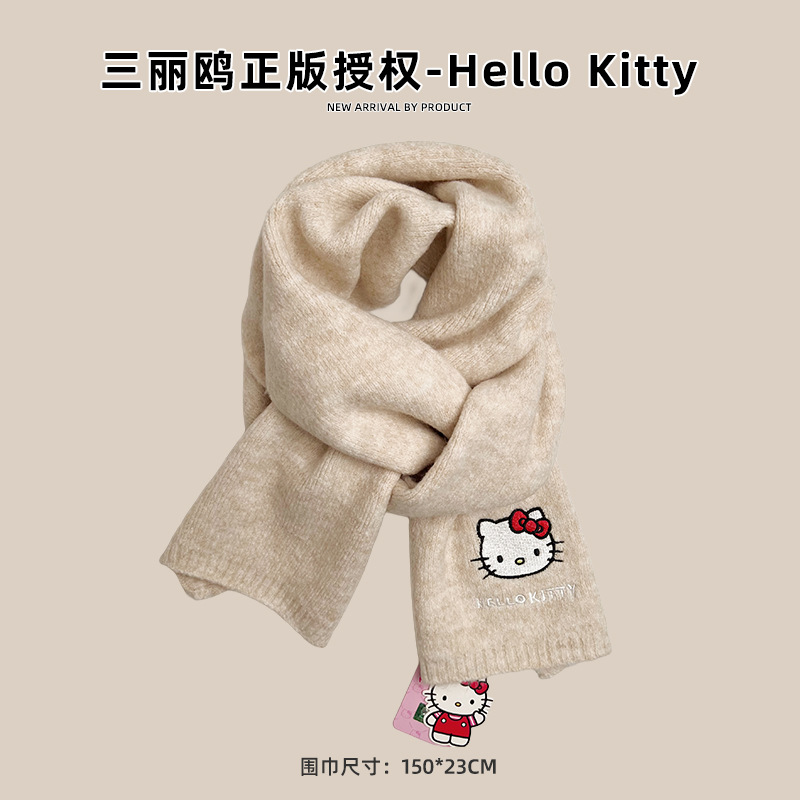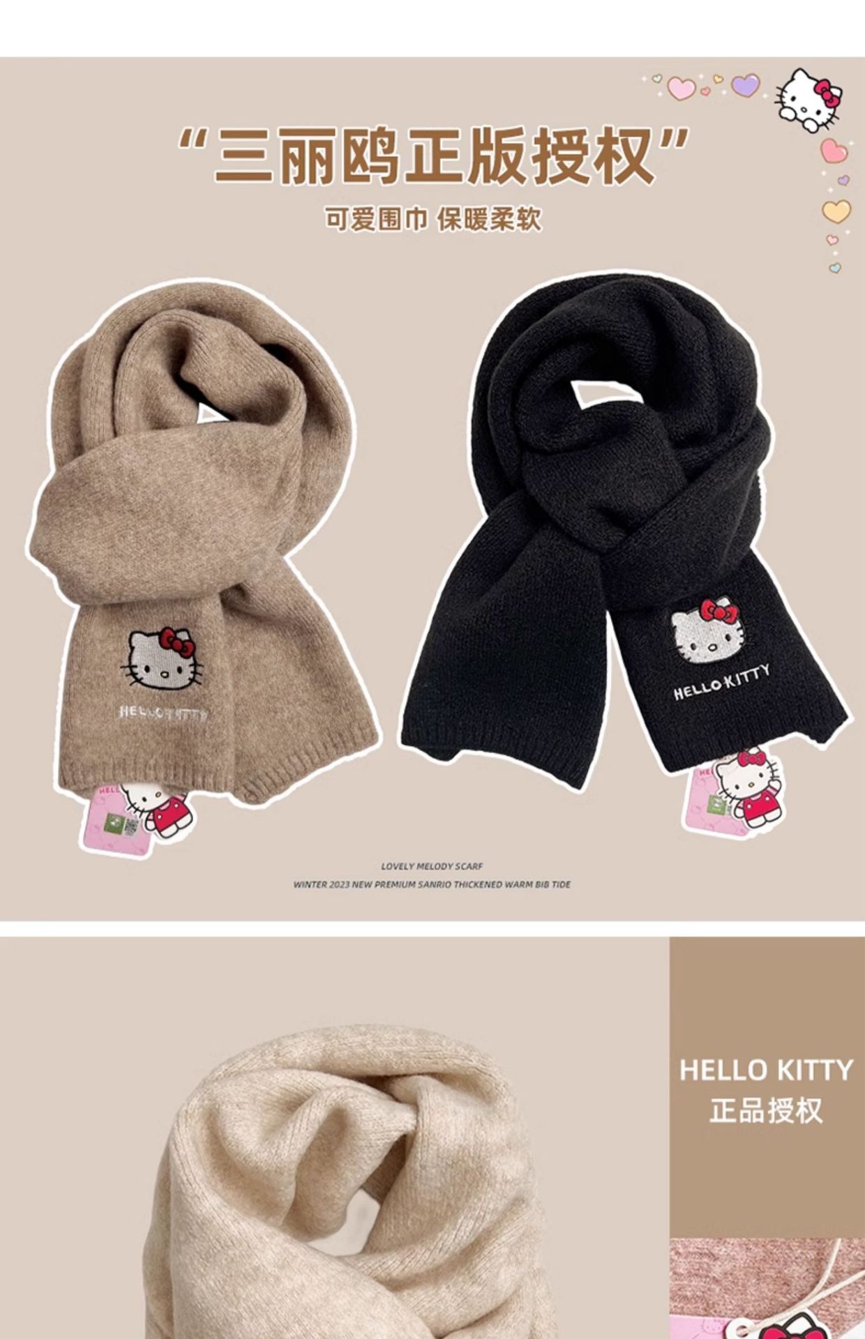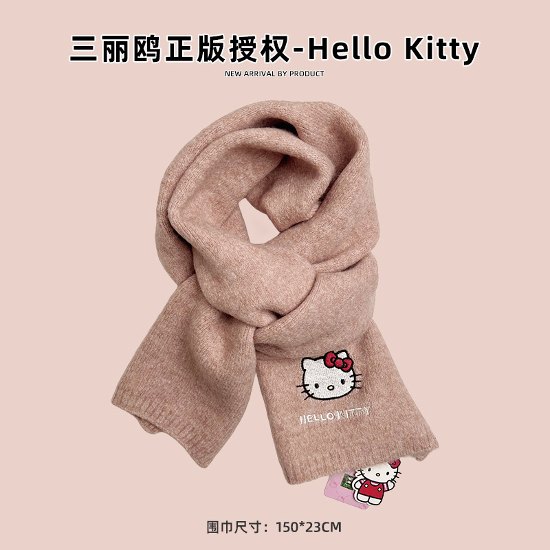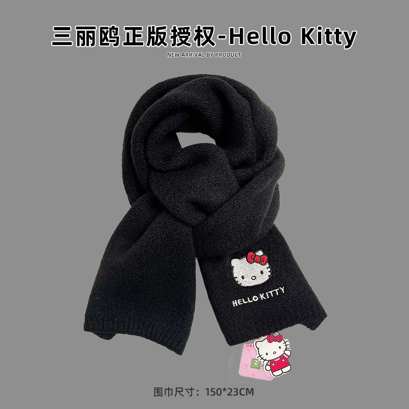정품 공인 헬로 키티 헬로 키티 니트 자수 스카프 여성의 가을과 겨울 학생들을위한 귀여운 따뜻한 스카프