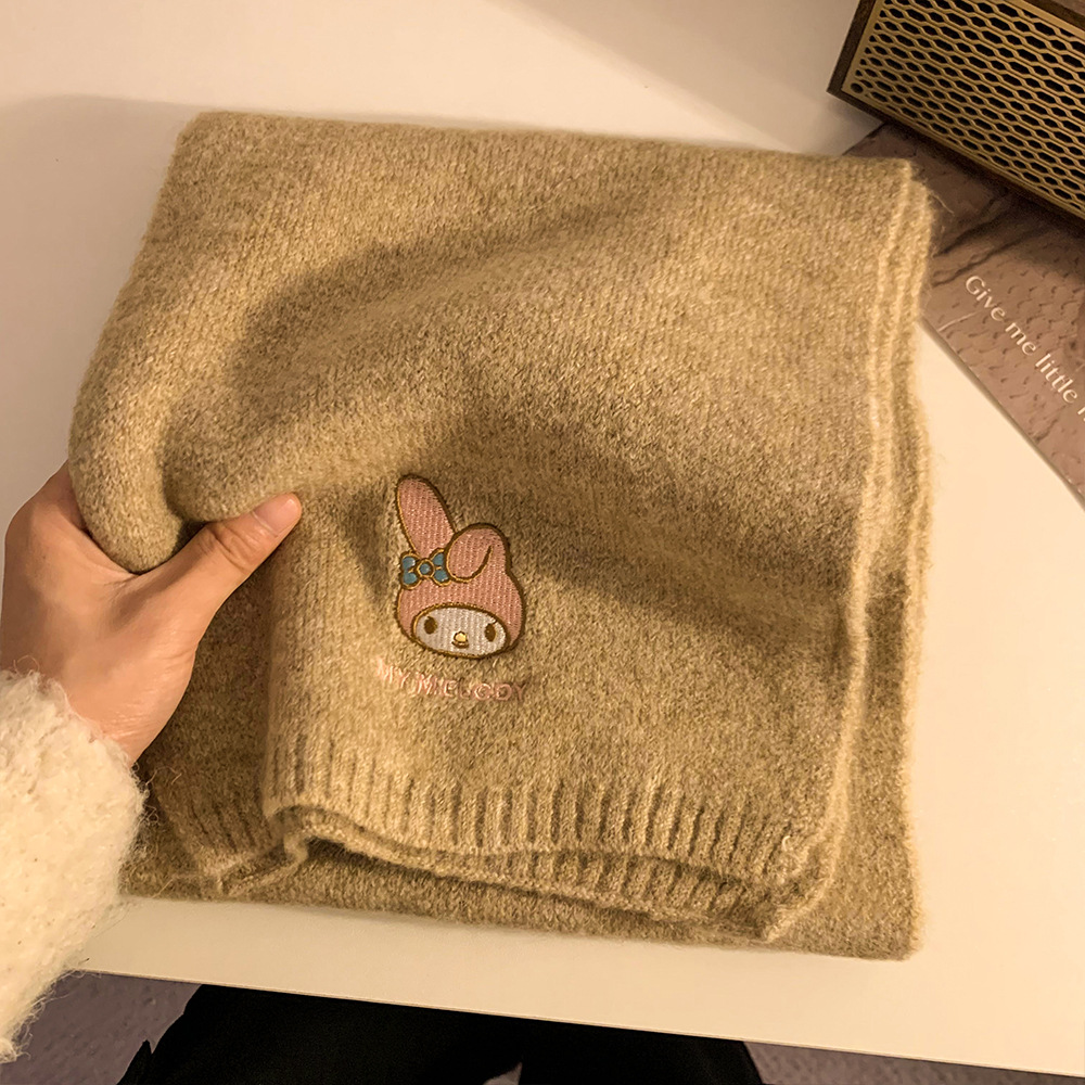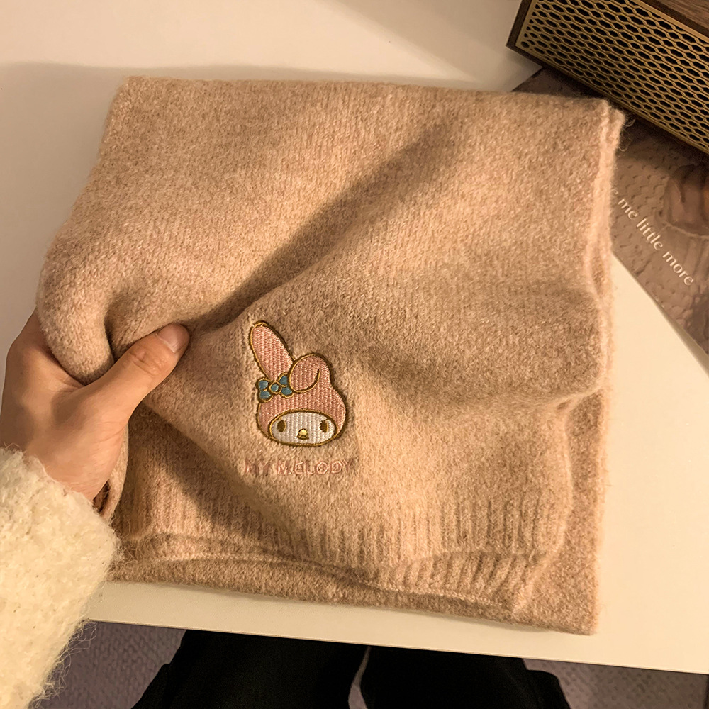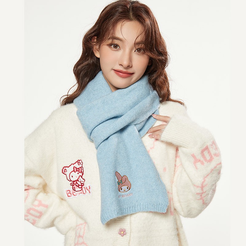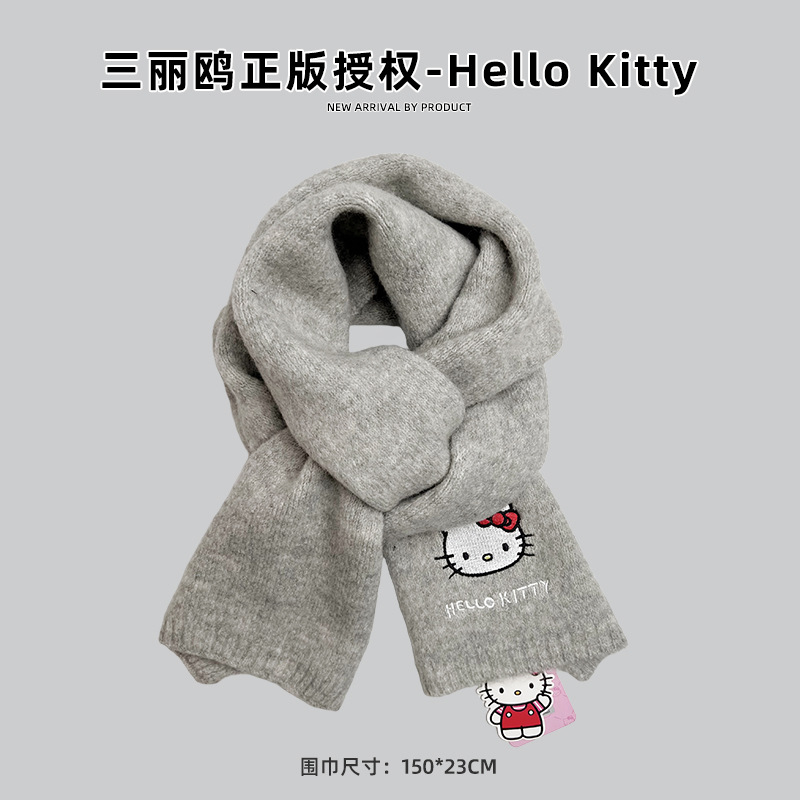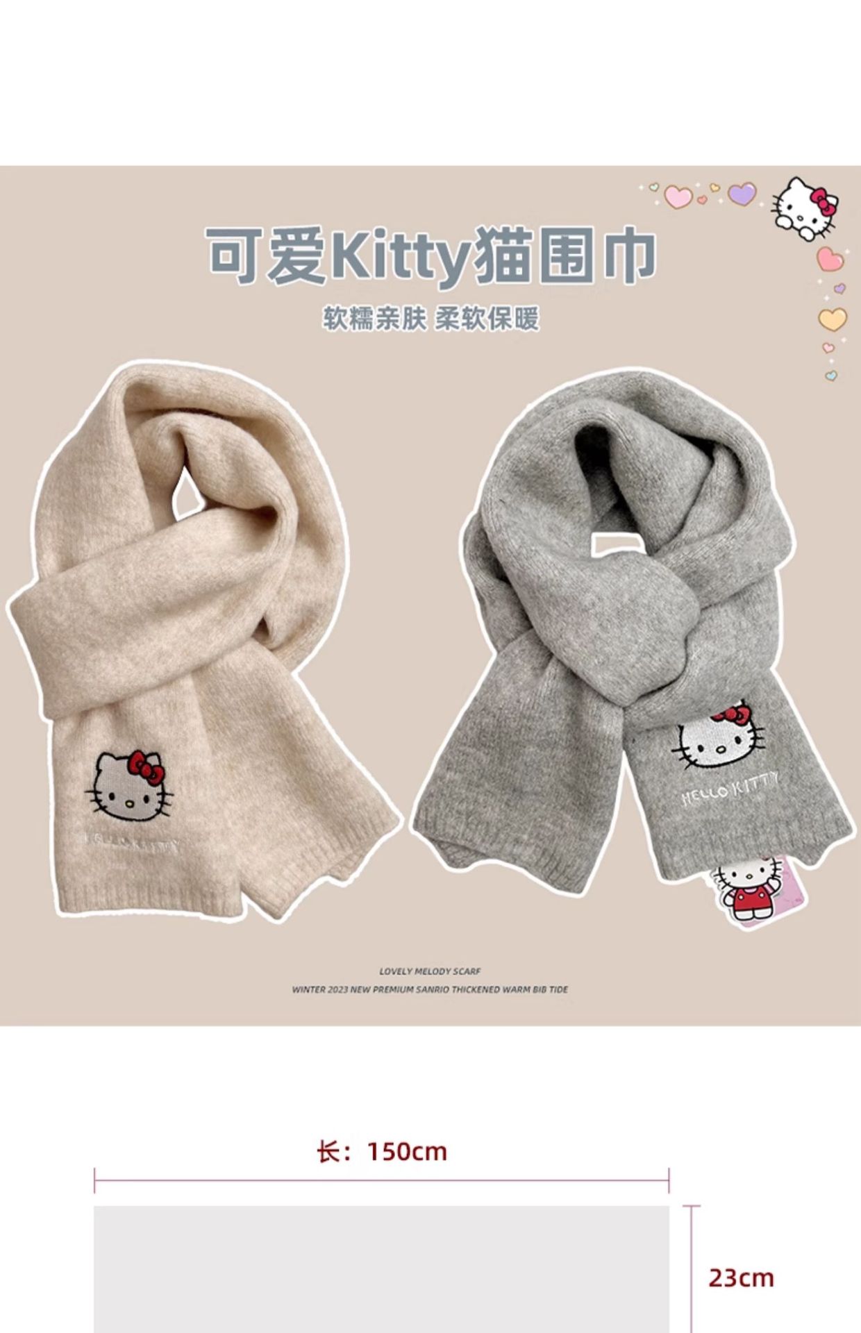 정품 공인 헬로 키티 헬로 키티 니트 자수 스카프 여성의 가을과 겨울 학생들을위한 귀여운 따뜻한 스카프