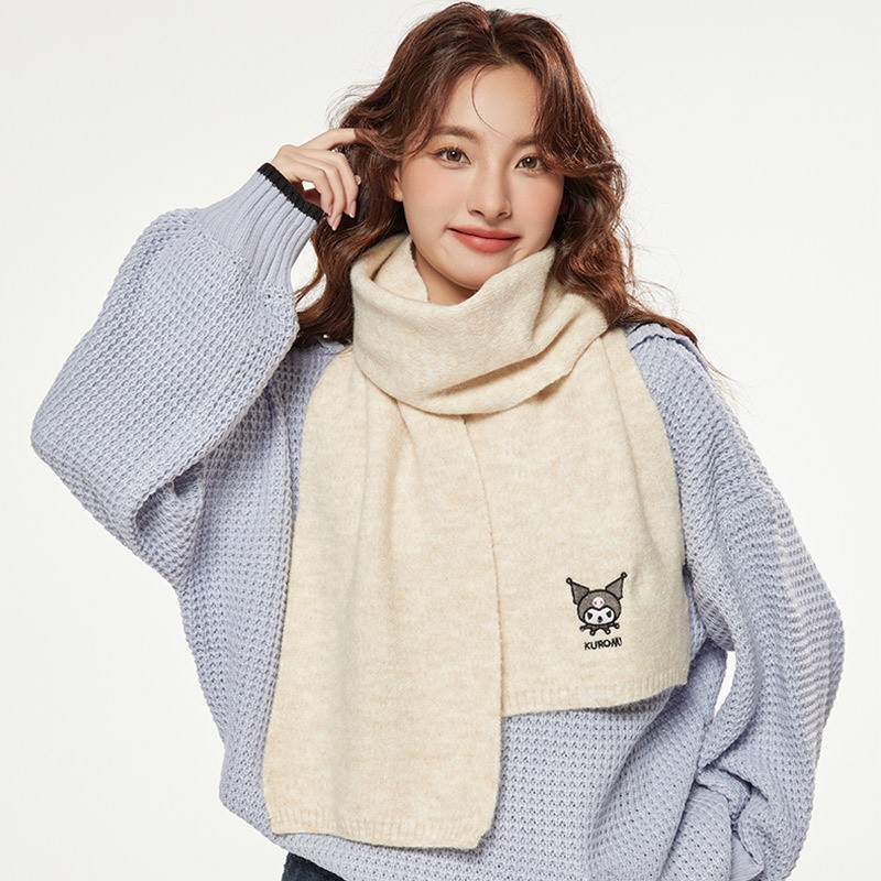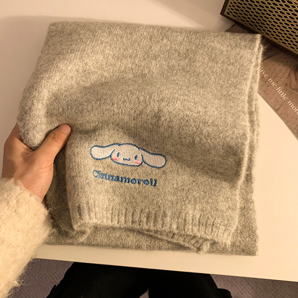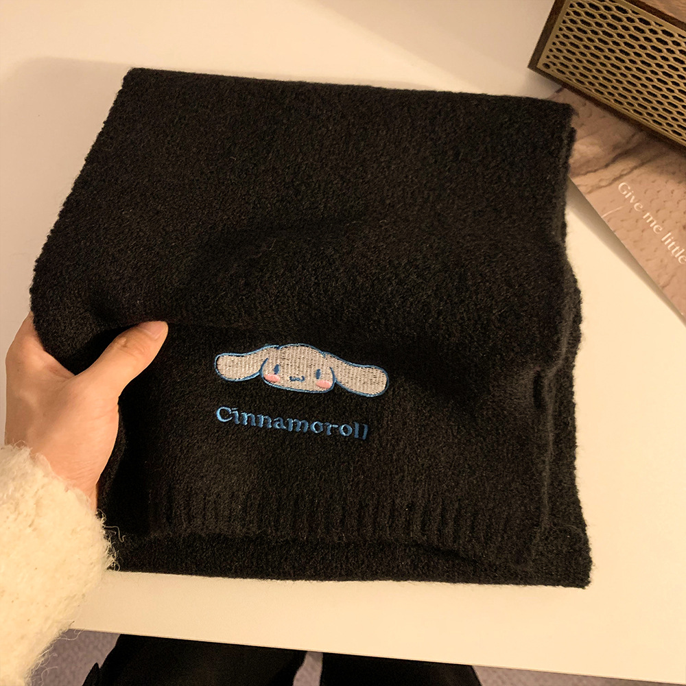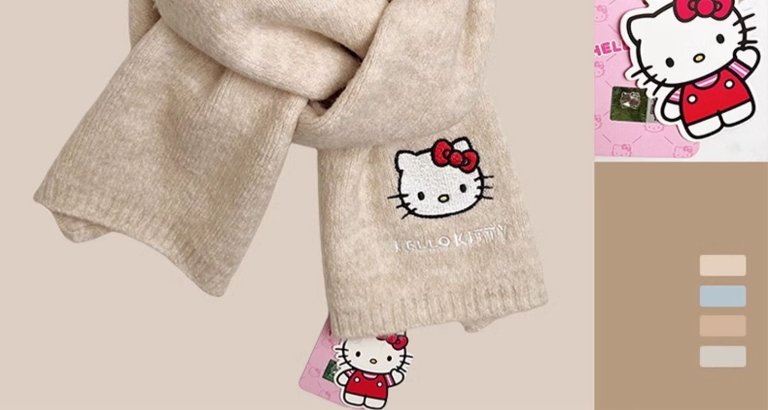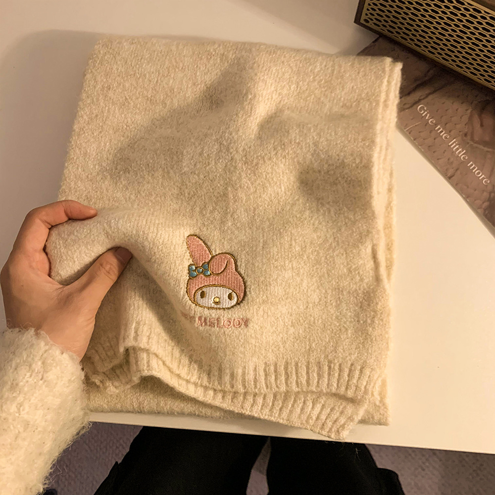 정품 공인 헬로 키티 헬로 키티 니트 자수 스카프 여성의 가을과 겨울 학생들을위한 귀여운 따뜻한 스카프