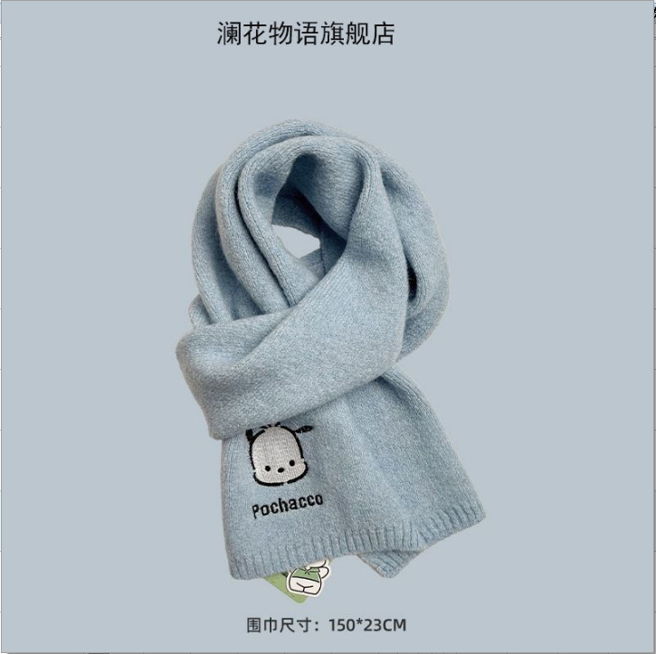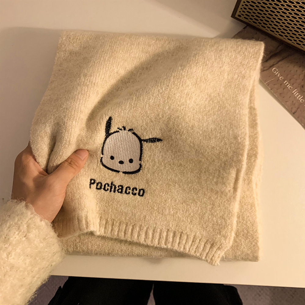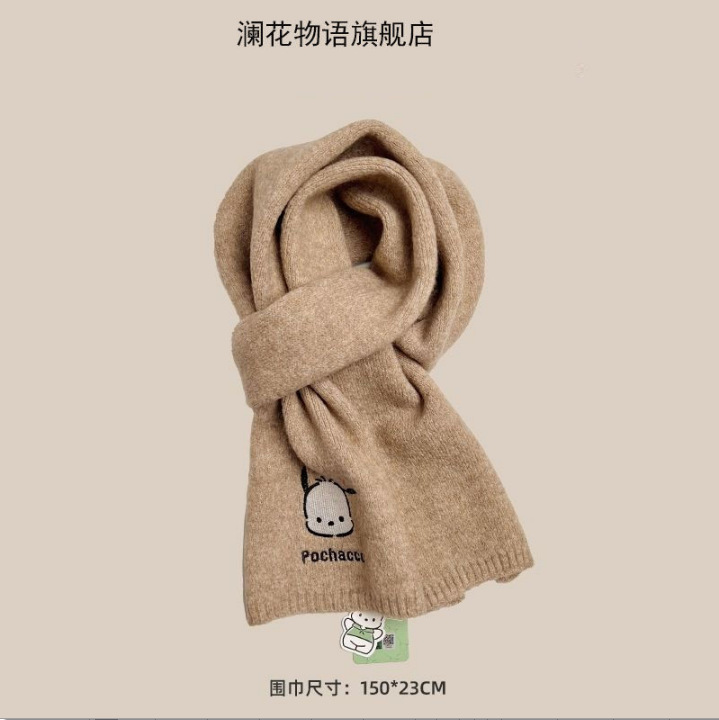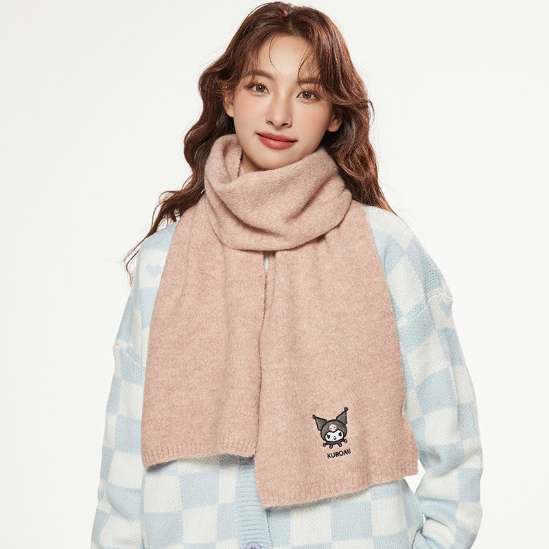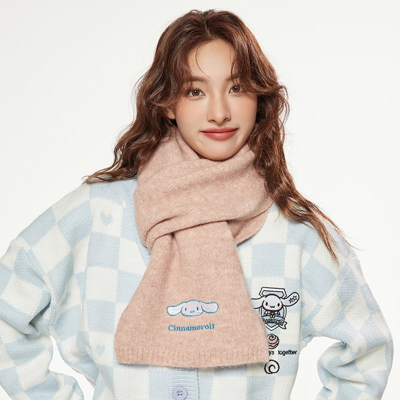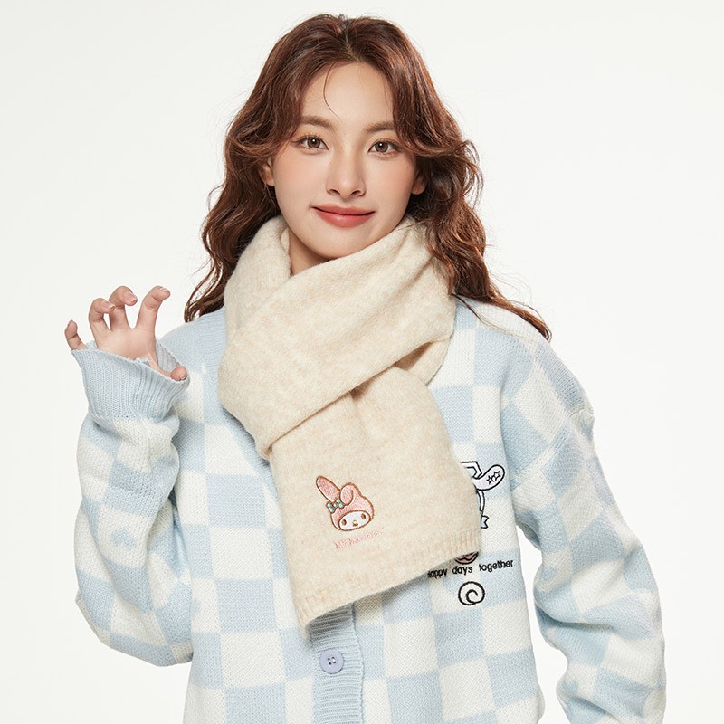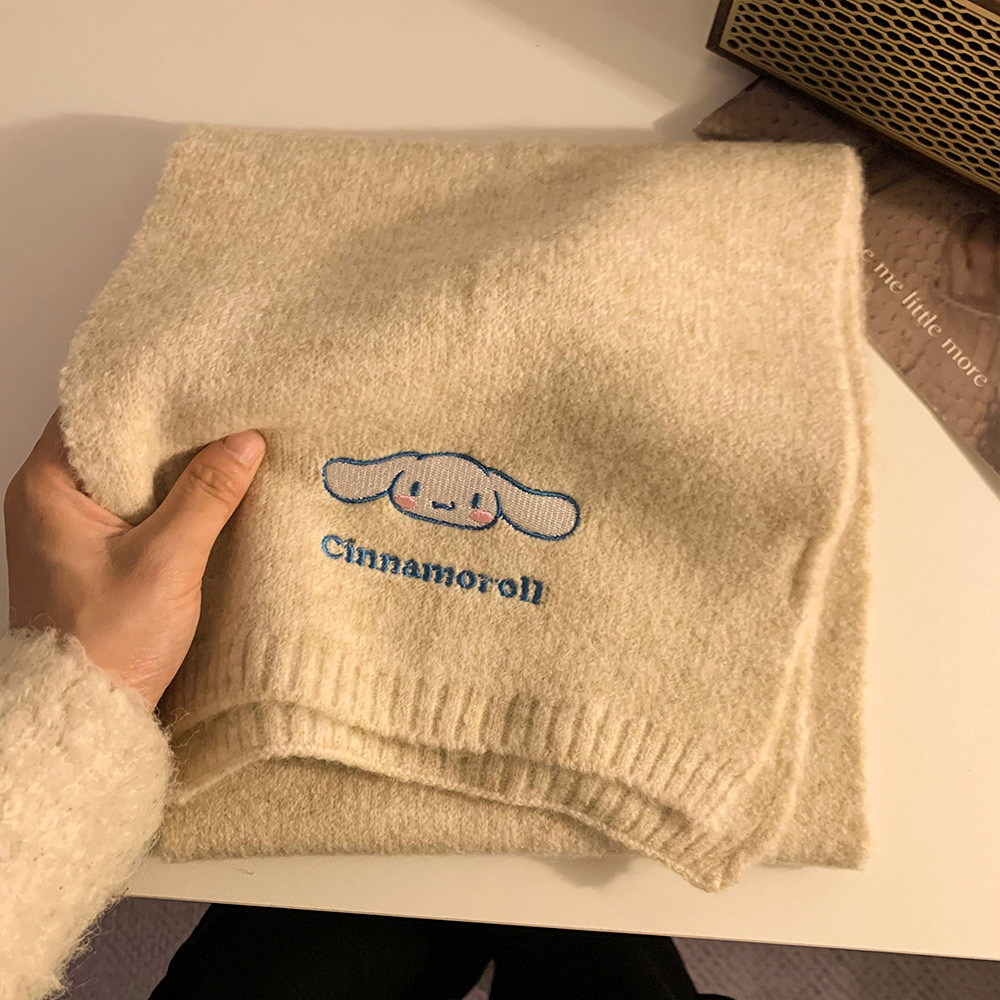 정품 공인 헬로 키티 헬로 키티 니트 자수 스카프 여성의 가을과 겨울 학생들을위한 귀여운 따뜻한 스카프