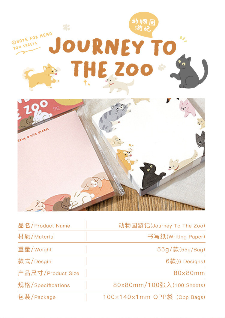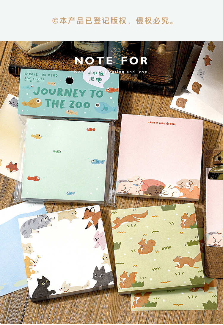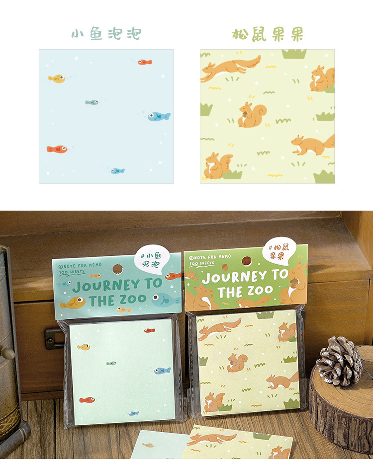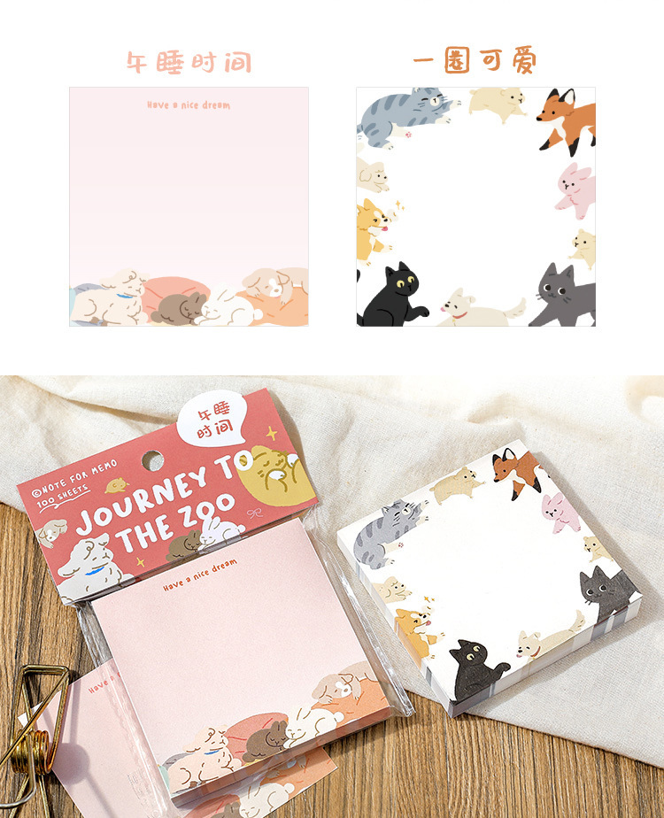 동물원 여행 노트 100 노트 모리 귀여운 일러스트 핸드북 메모 펀치-메시지 페이퍼