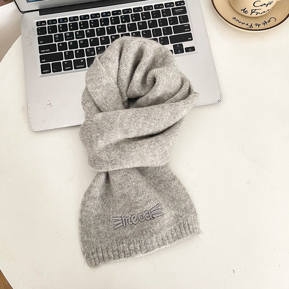 귀여운 자수 고양이 양모 니트 스카프 모자 세트 새 겨울 따뜻한 어린이 긴 스카프 모자
