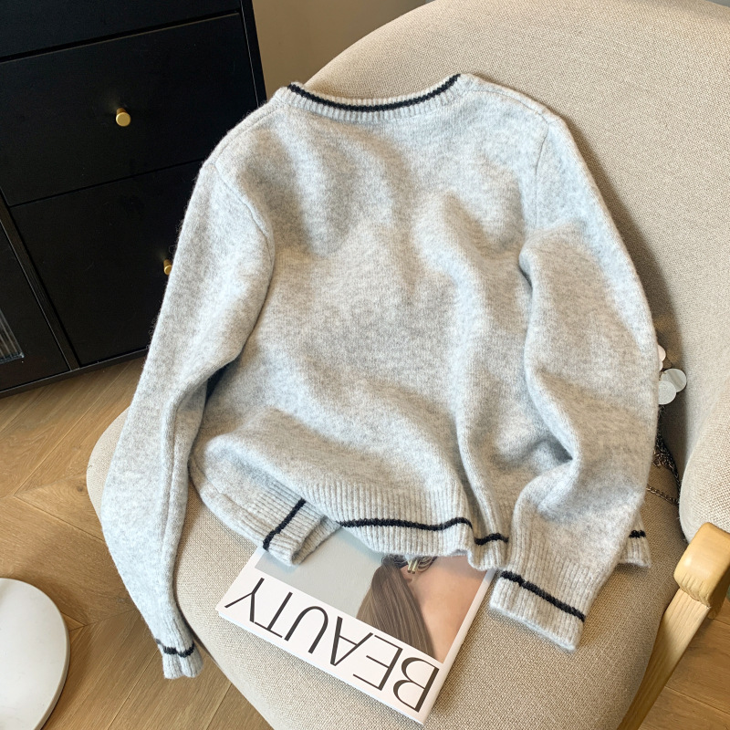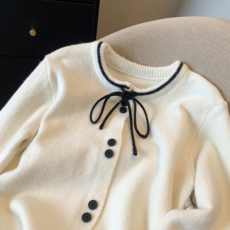 2024 가을과 겨울 샤넬 스타일 라운드 넥 대비 컬러 스웨터 여성용 스웨터 재킷 따뜻한 느슨한 올 매치 아우터 탑스토어 가기