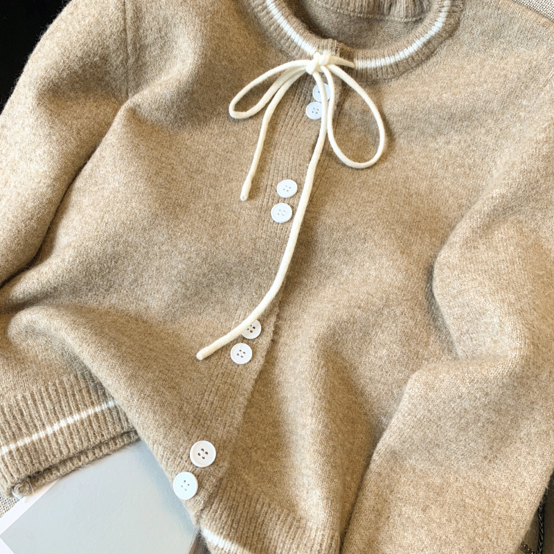 2024 가을과 겨울 샤넬 스타일 라운드 넥 대비 컬러 스웨터 여성용 스웨터 재킷 따뜻한 느슨한 올 매치 아우터 탑