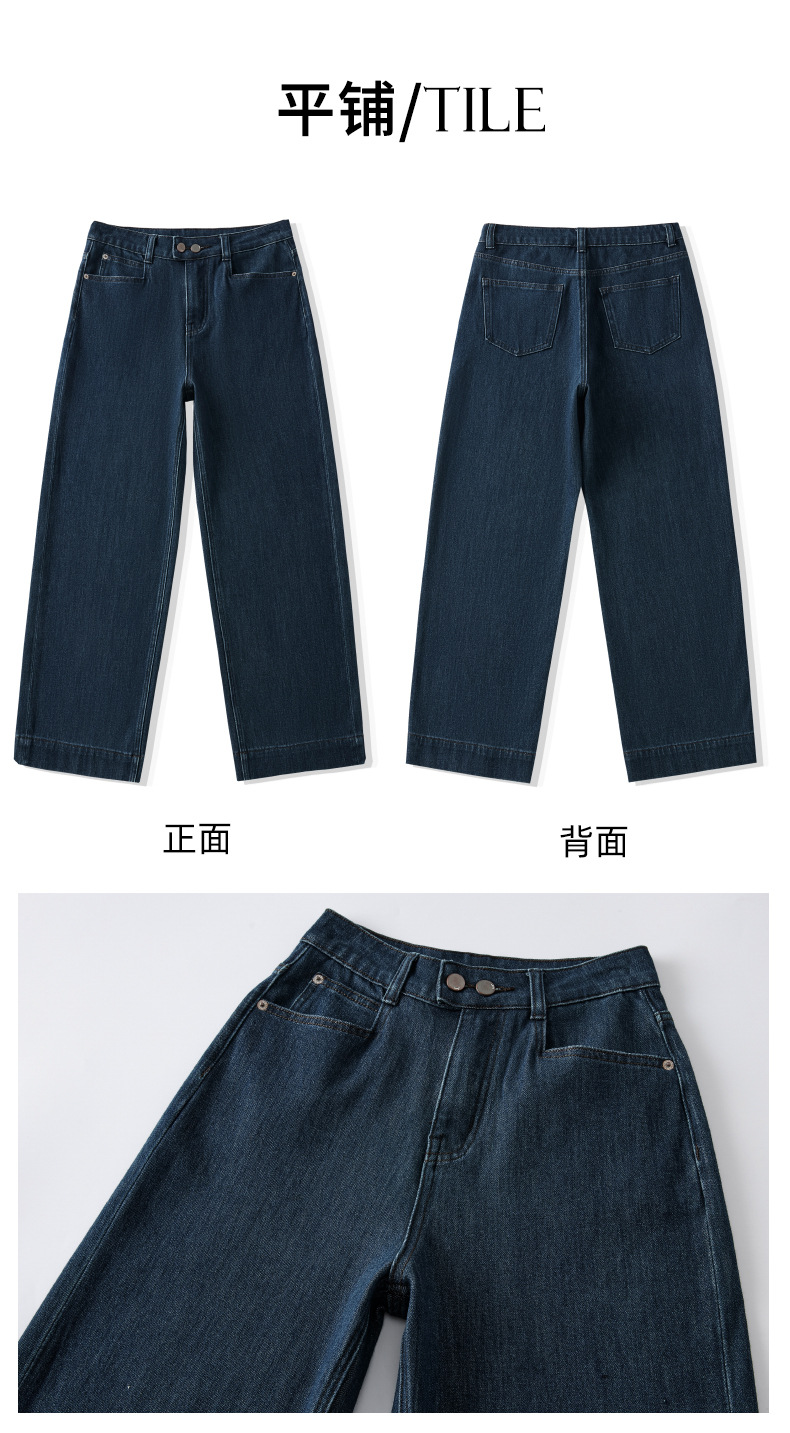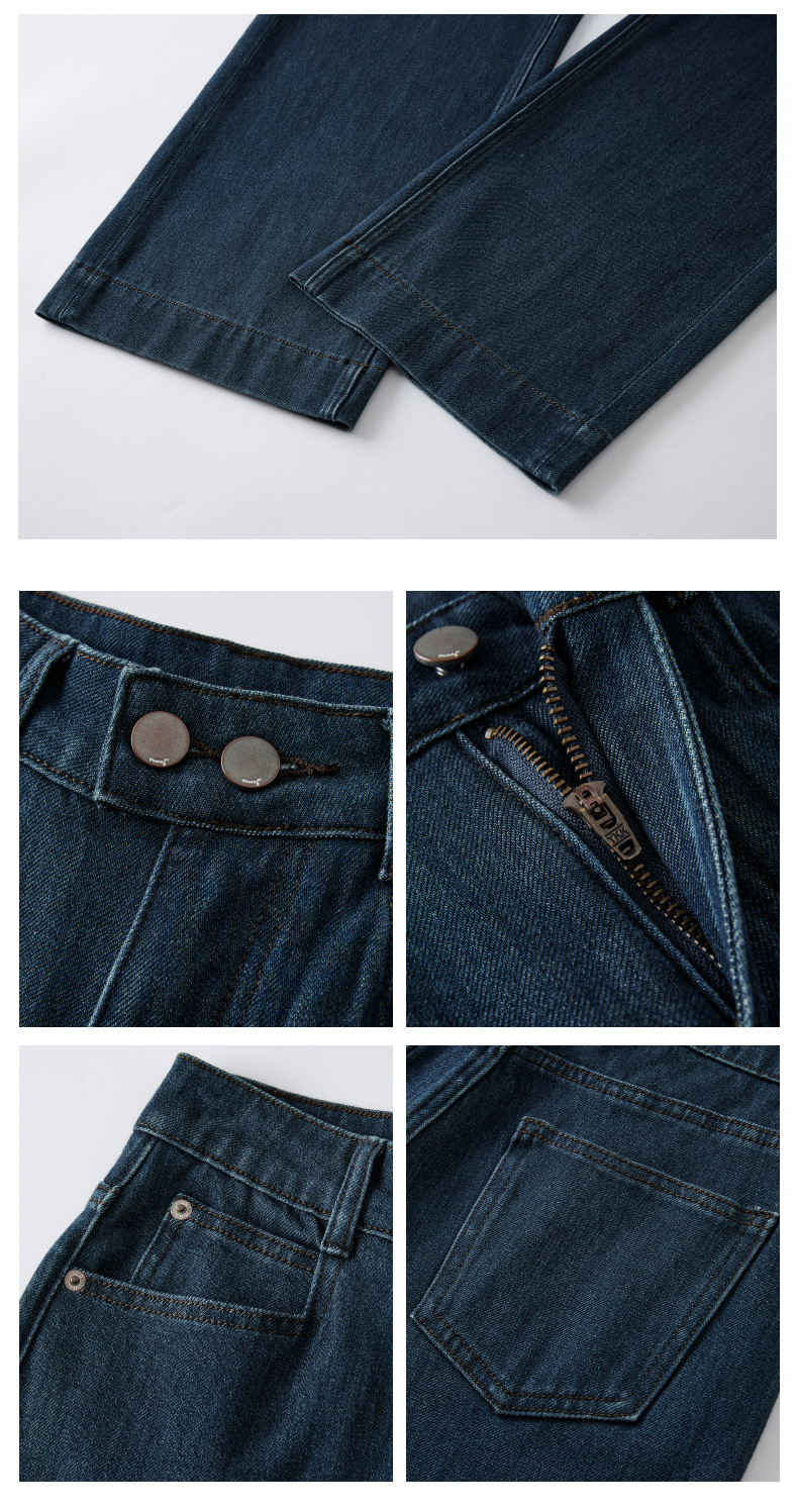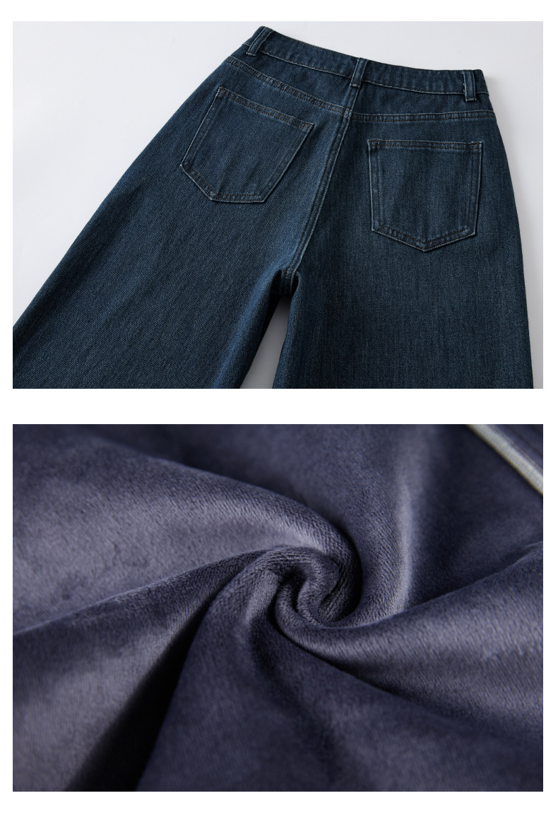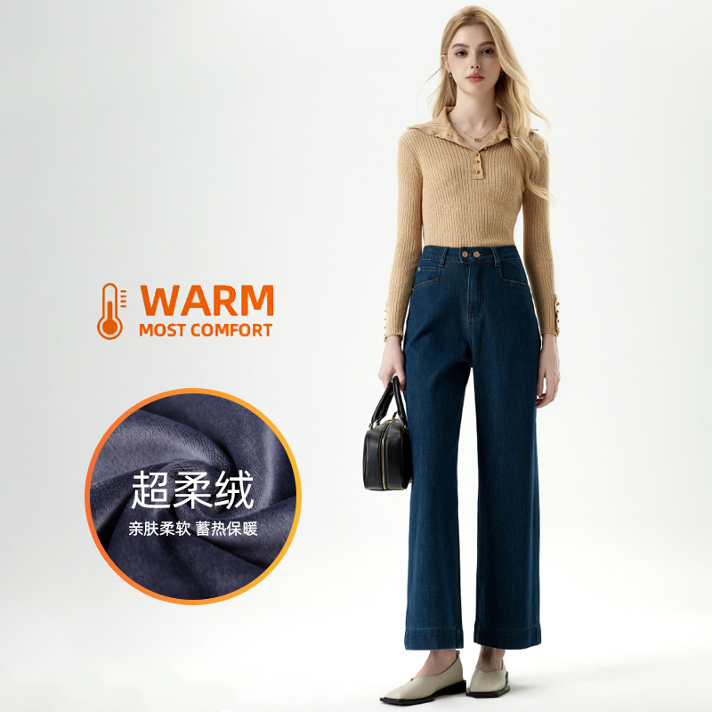 MBB 플리스 라이크라 360도 신축성 투버튼 청바지 여성용 2025 가을 겨울 하이웨이스트 와이드 레그 초부드러운 플리스 9부 바지스토어 가기