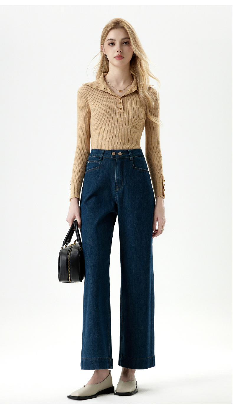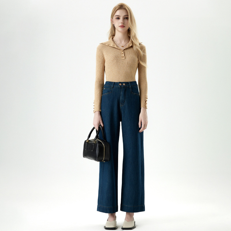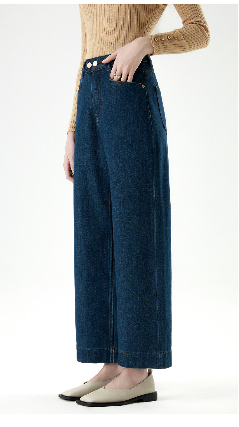 MBB 플리스 라이크라 360도 신축성 투버튼 청바지 여성용 2025 가을 겨울 하이웨이스트 와이드 레그 초부드러운 플리스 9부 바지스토어 가기