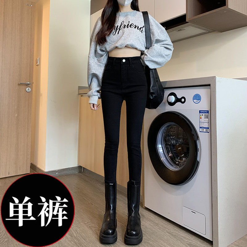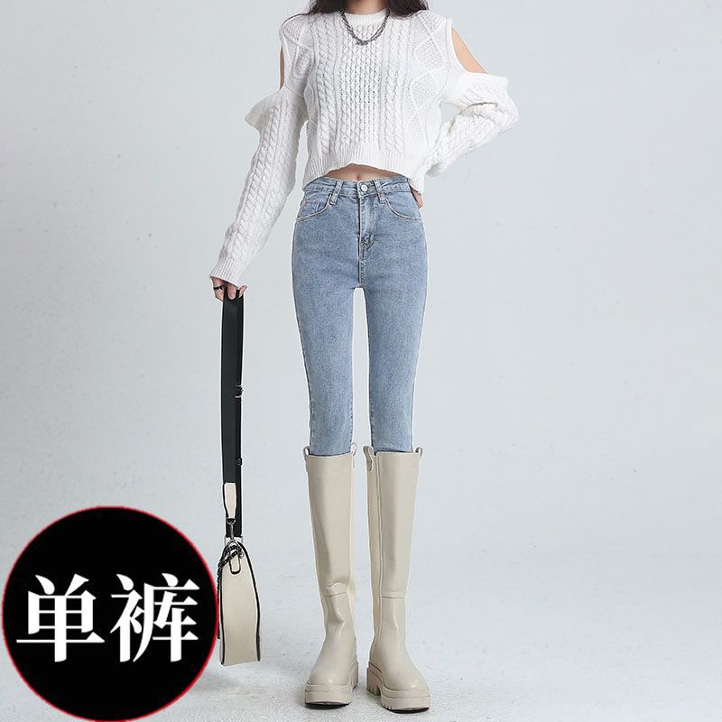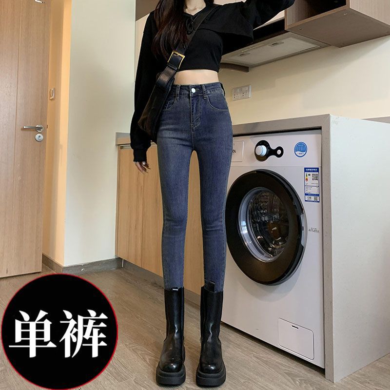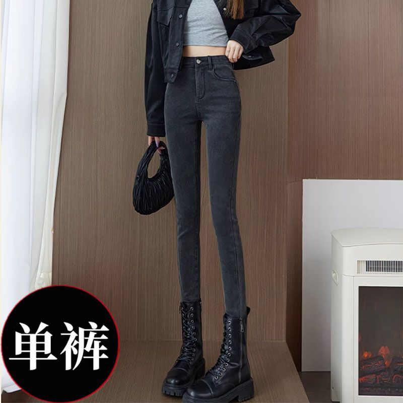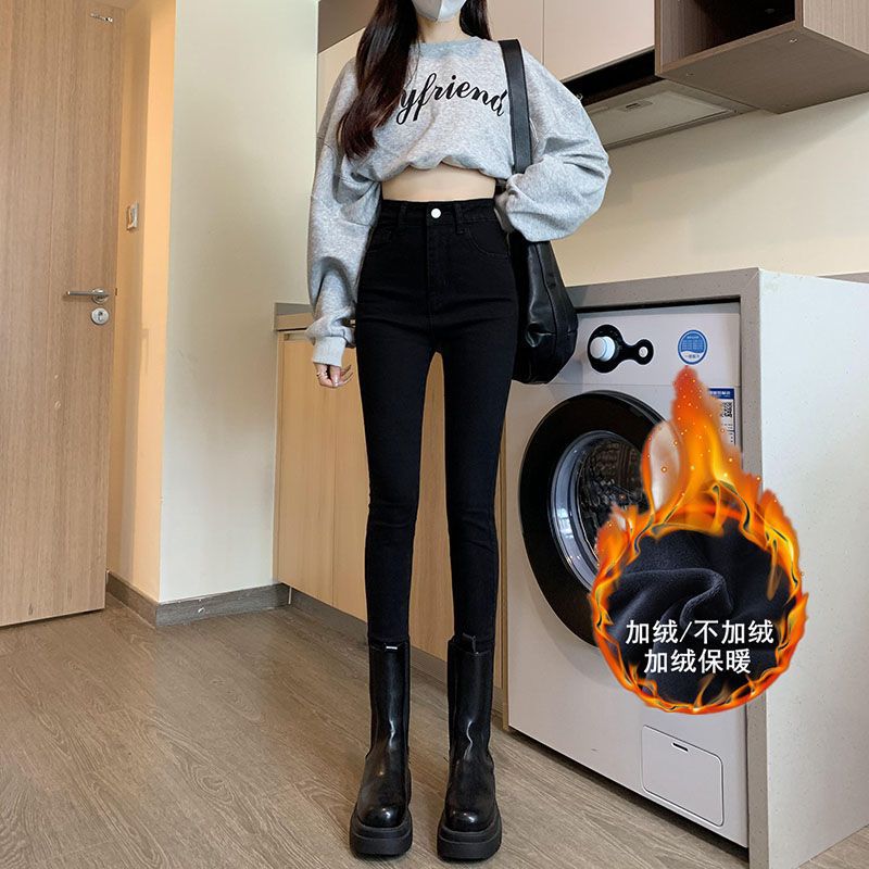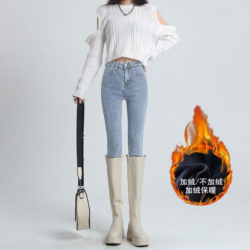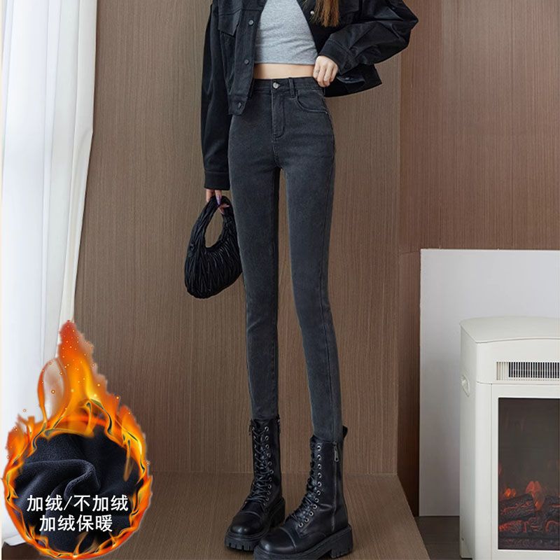 피겨 엉덩이 다리 연필 바지 기질 청바지 여성의 가을 2024 새로운 기모 두껍게 슬림 탄성스토어 가기