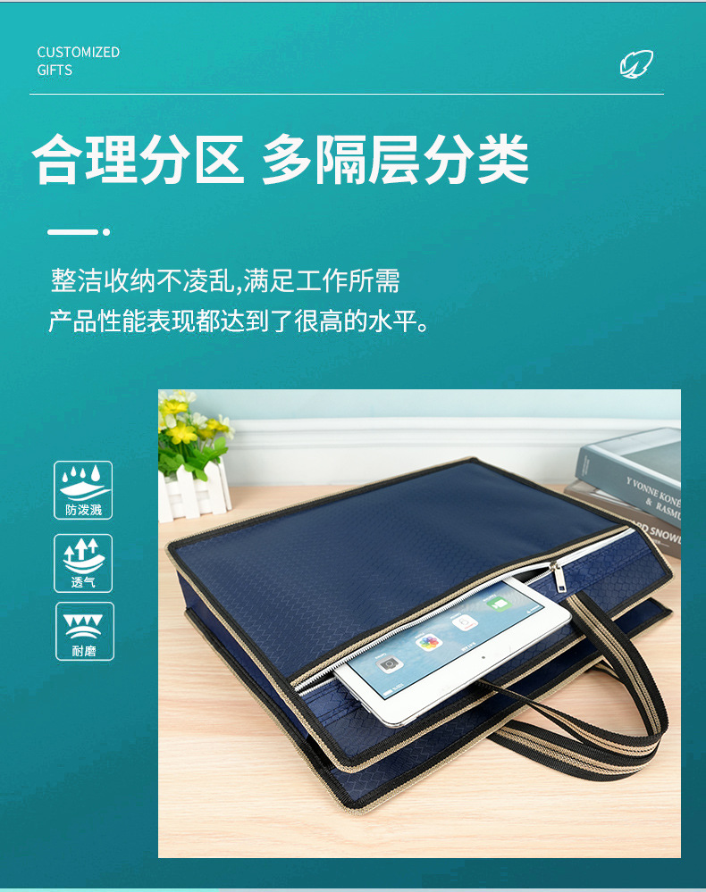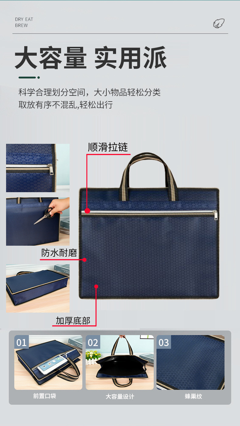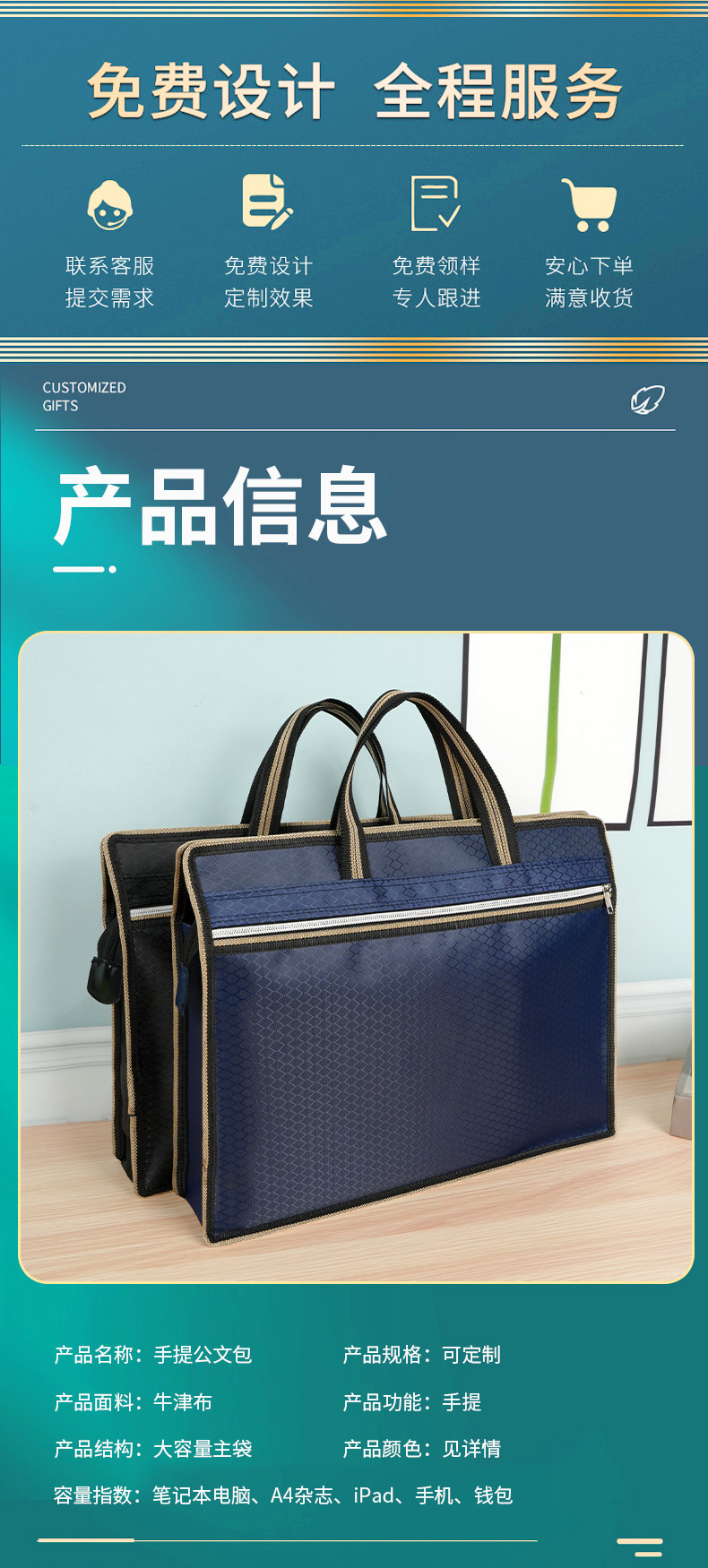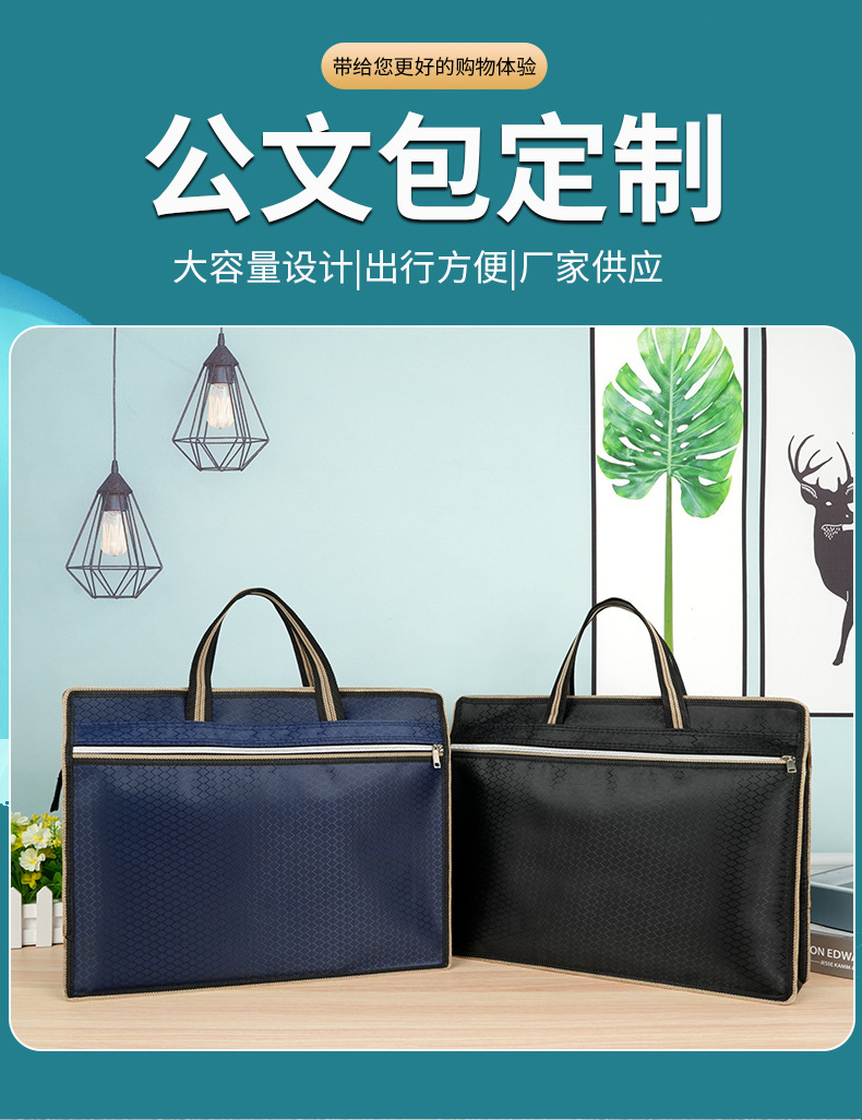 휴대용 옥스포드 천 문서 가방 인쇄 가능한 로고 지퍼 회의 문서 정보 가방 비즈니스 여행 서류 가방