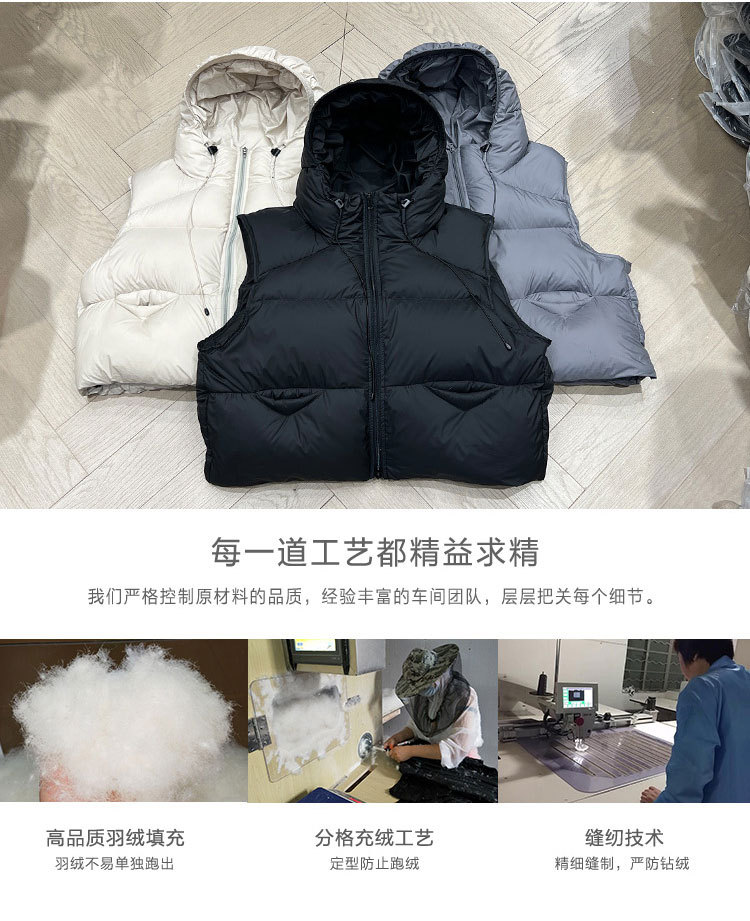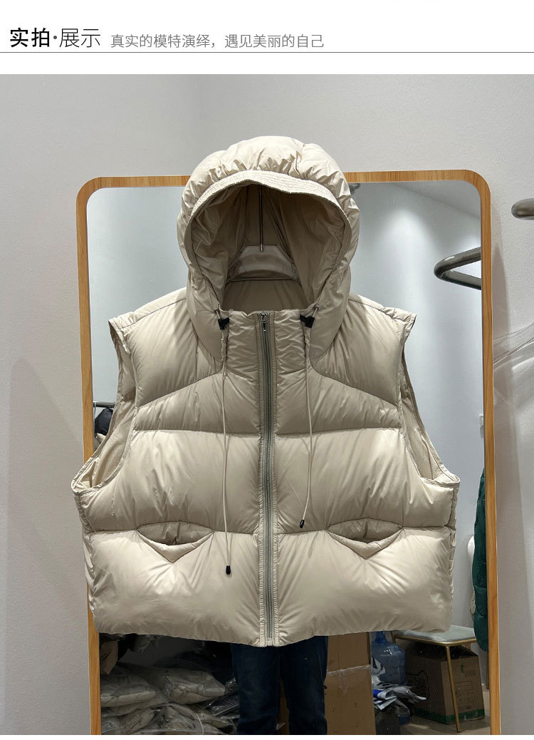 Goose Down Jacket Vest 여성 쇼트 후드 2024 가을 및 겨울 새로운 한국 스타일 퍼프 울트라 라이트 웨이스트 코트 조끼 재킷스토어 가기