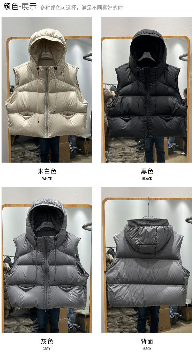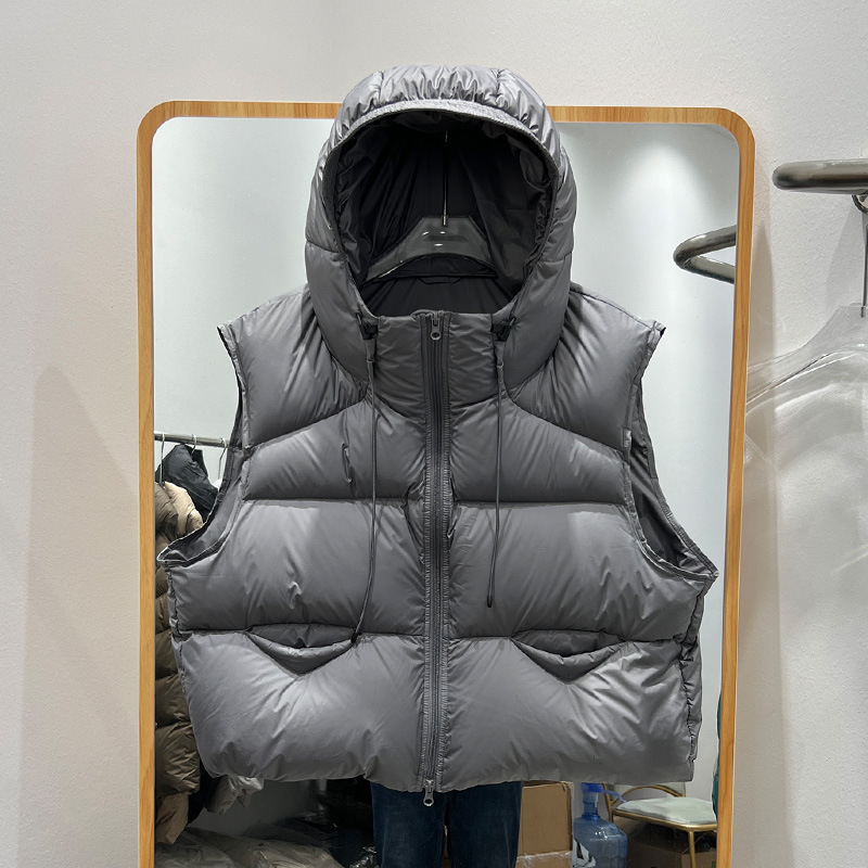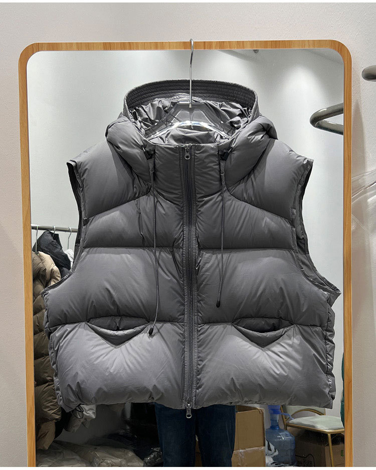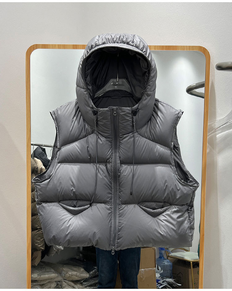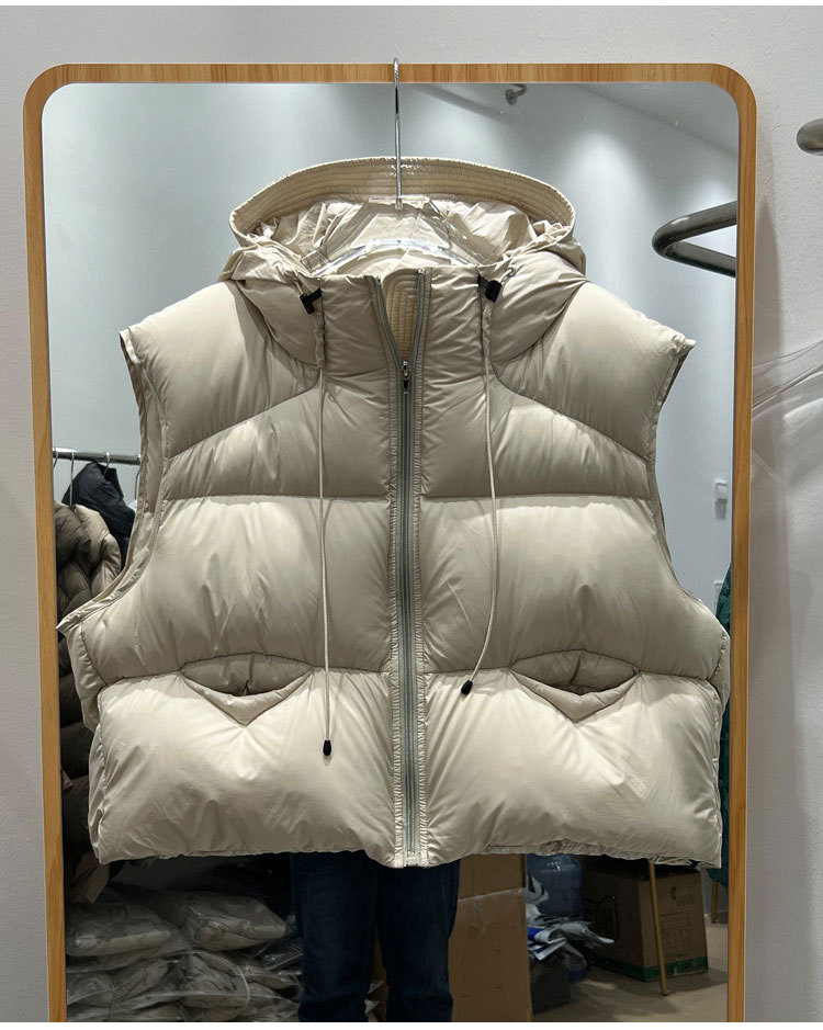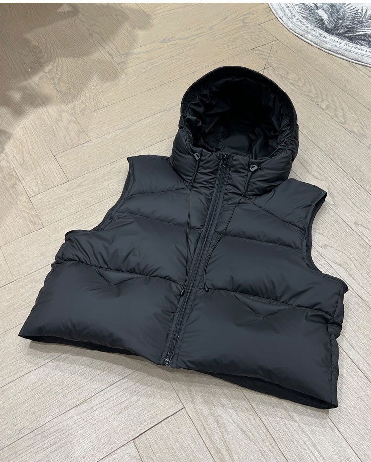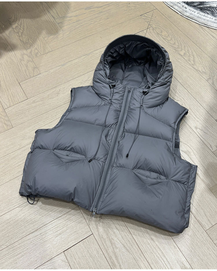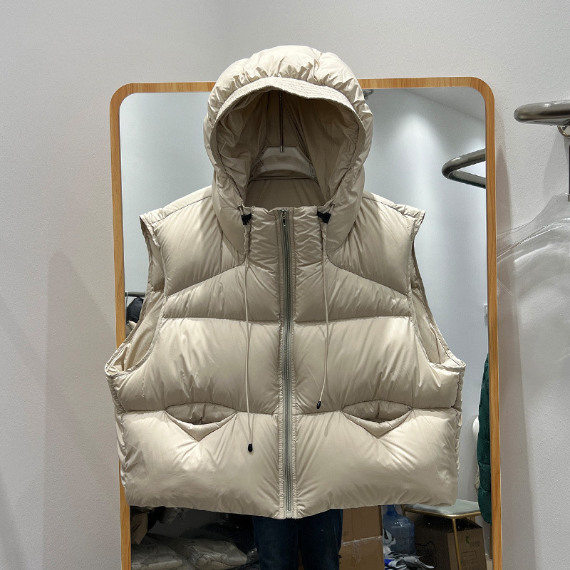 Goose Down Jacket Vest 여성 쇼트 후드 2024 가을 및 겨울 새로운 한국 스타일 퍼프 울트라 라이트 웨이스트 코트 조끼 재킷