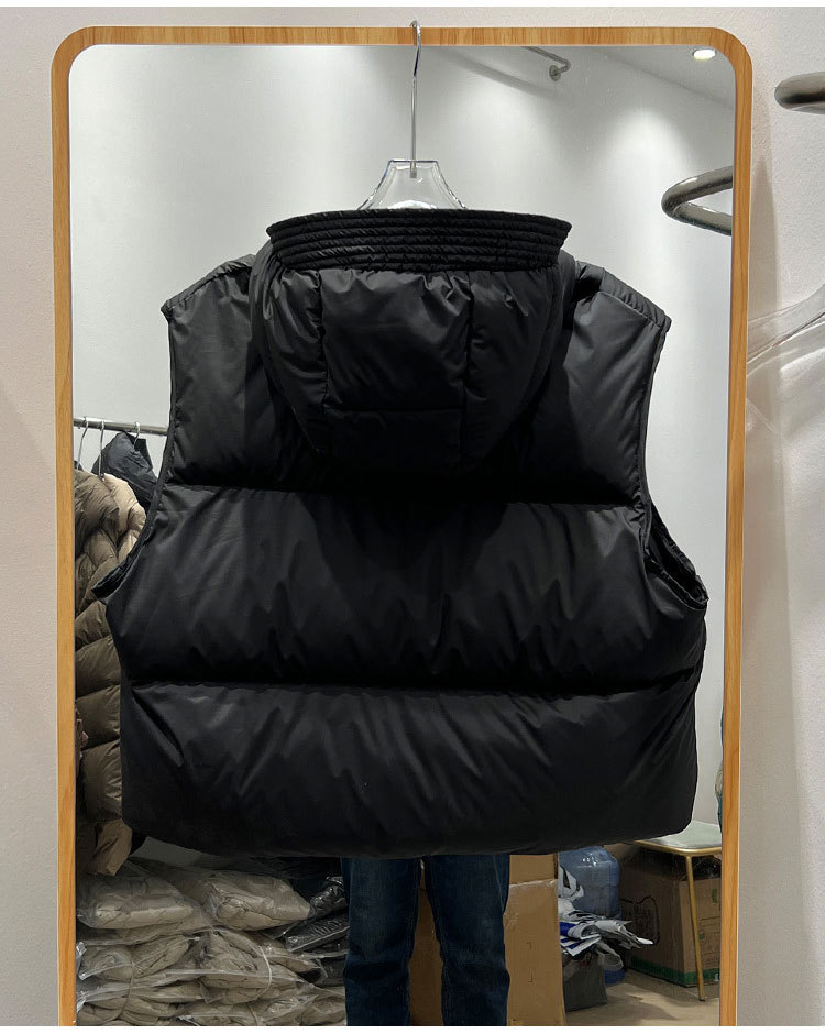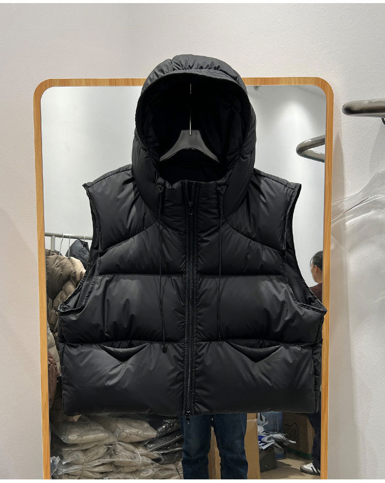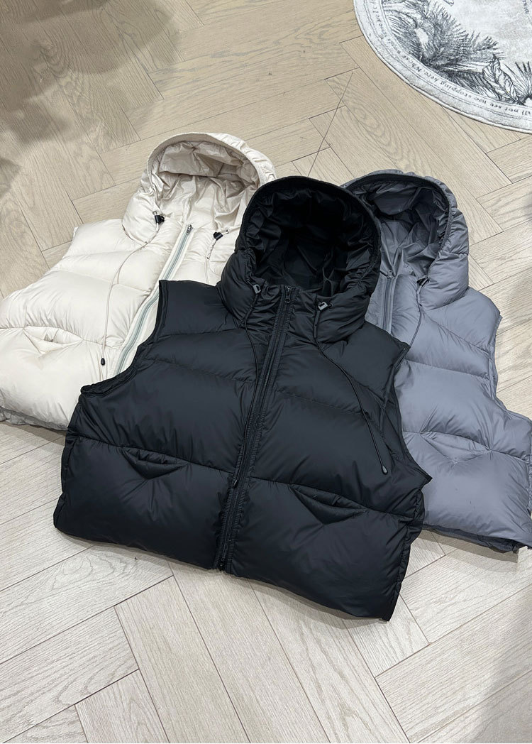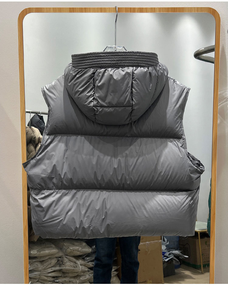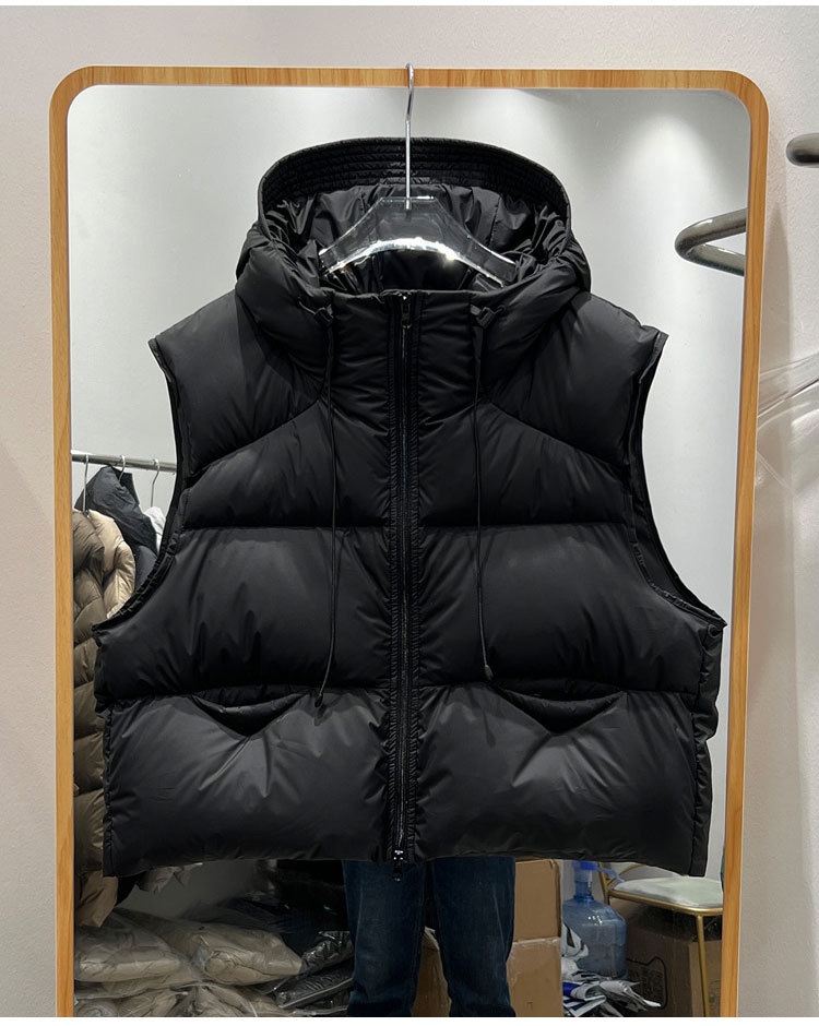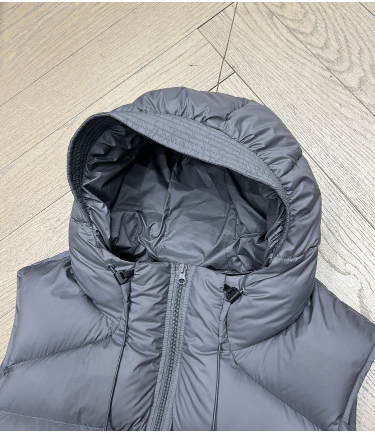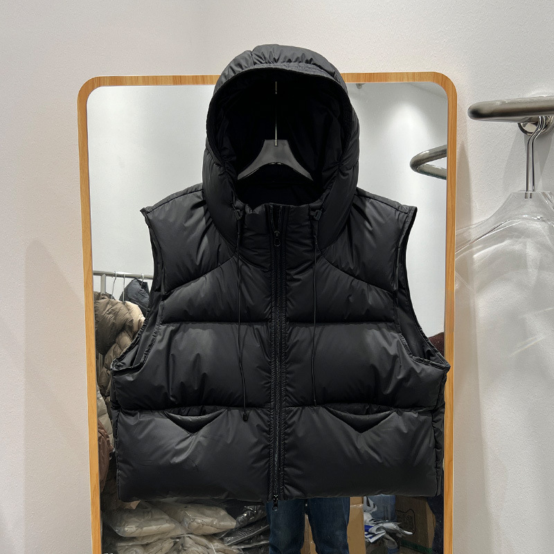 Goose Down Jacket Vest 여성 쇼트 후드 2024 가을 및 겨울 새로운 한국 스타일 퍼프 울트라 라이트 웨이스트 코트 조끼 재킷