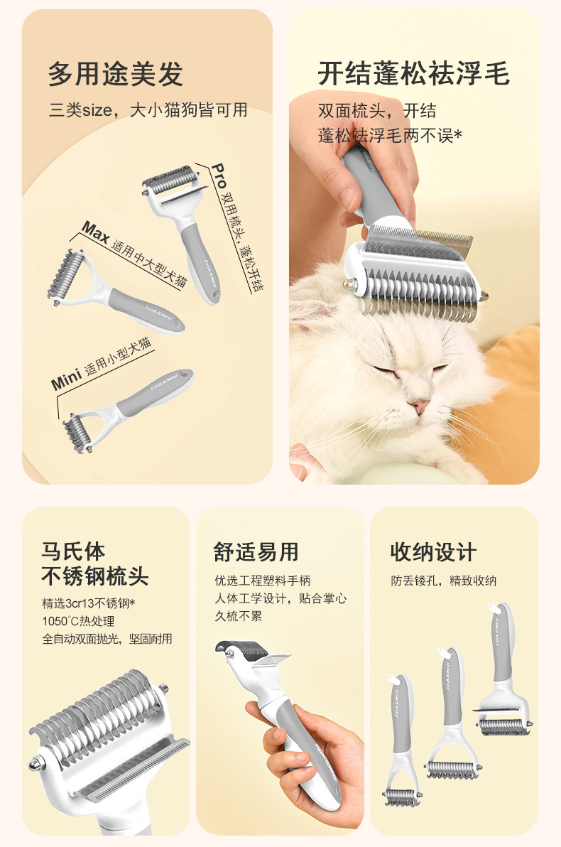 공장 직접 오픈 매듭 빗 개 빗 머리 제거 이중 목적 빗 개 황금 머리 고양이 보편적 인 빗 솜털 및 내구성스토어 가기