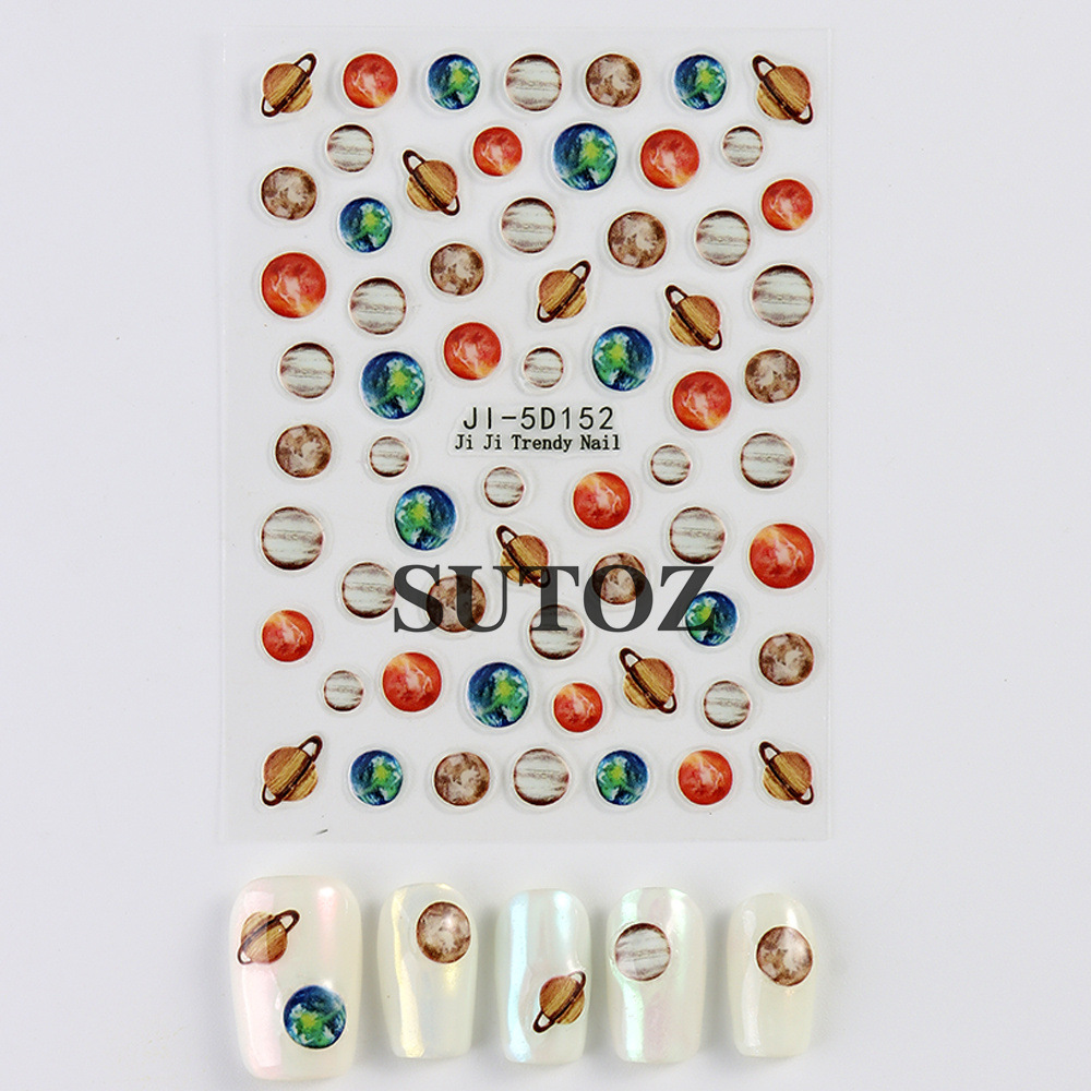 국경 간 새로운 5D 네일 아트 스티커 가을 Maillard 해피 플래닛 스테레오 릴리프 네일 백 접착 스티커