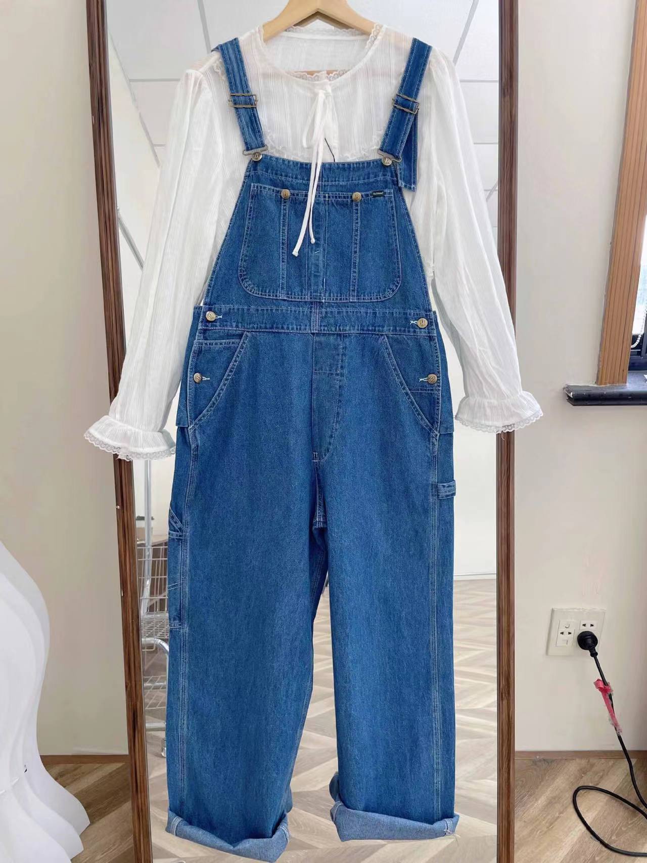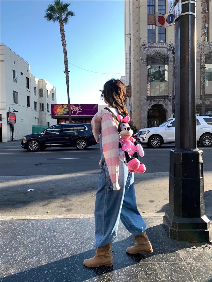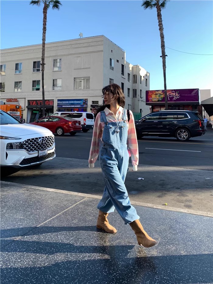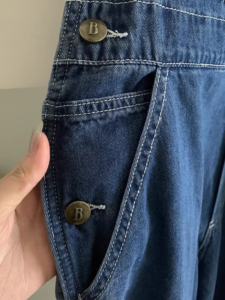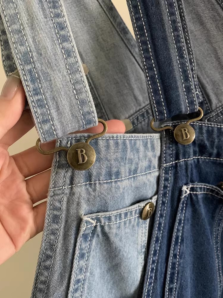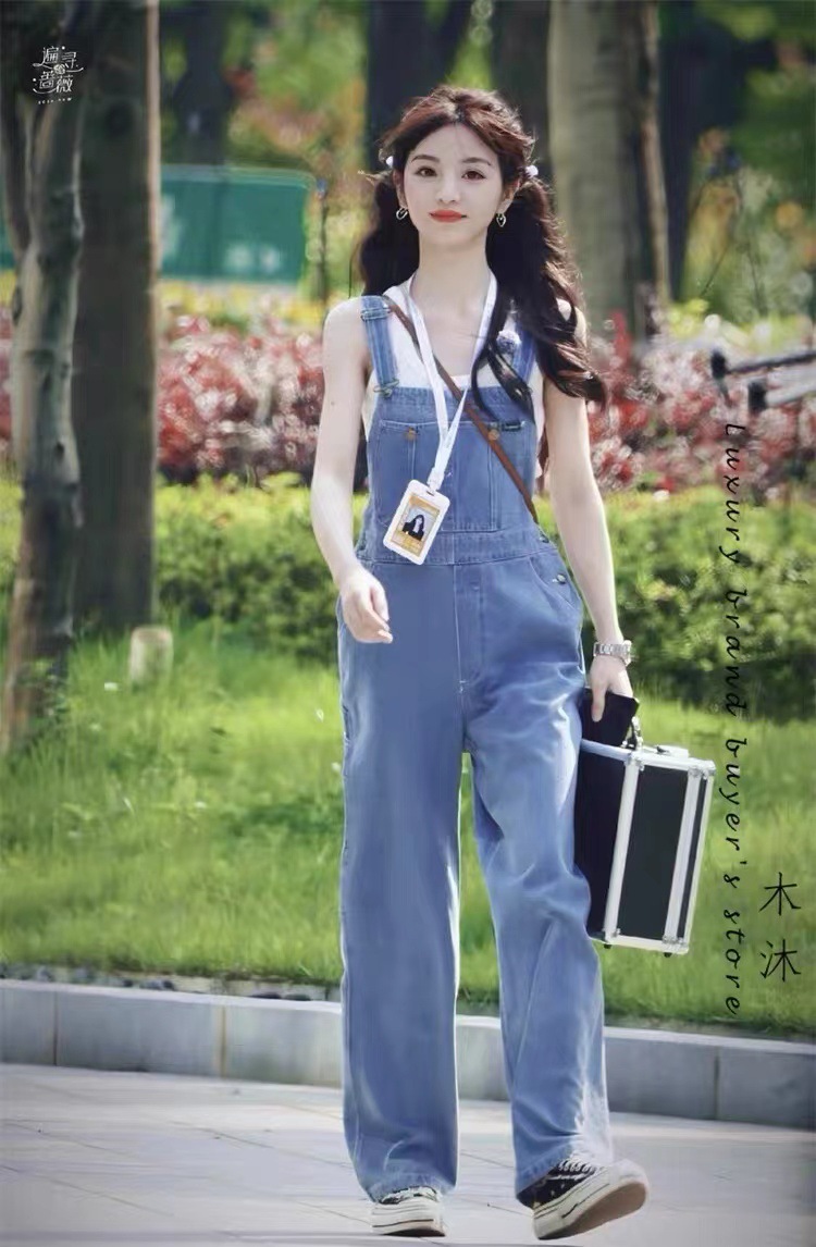 재고 있음~ 한국의 틈새 트렌드 브랜드 팔마이(팔마이) 페버 시웨이와 동일한 스타일의 스트레이트 캐주얼 데님 팬츠, 여성용 멜빵바지스토어 가기