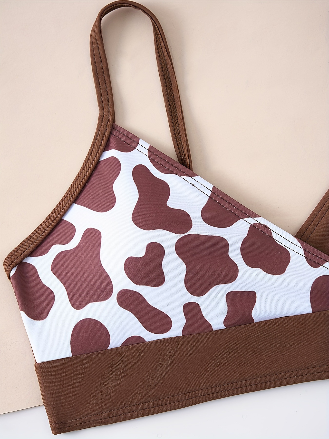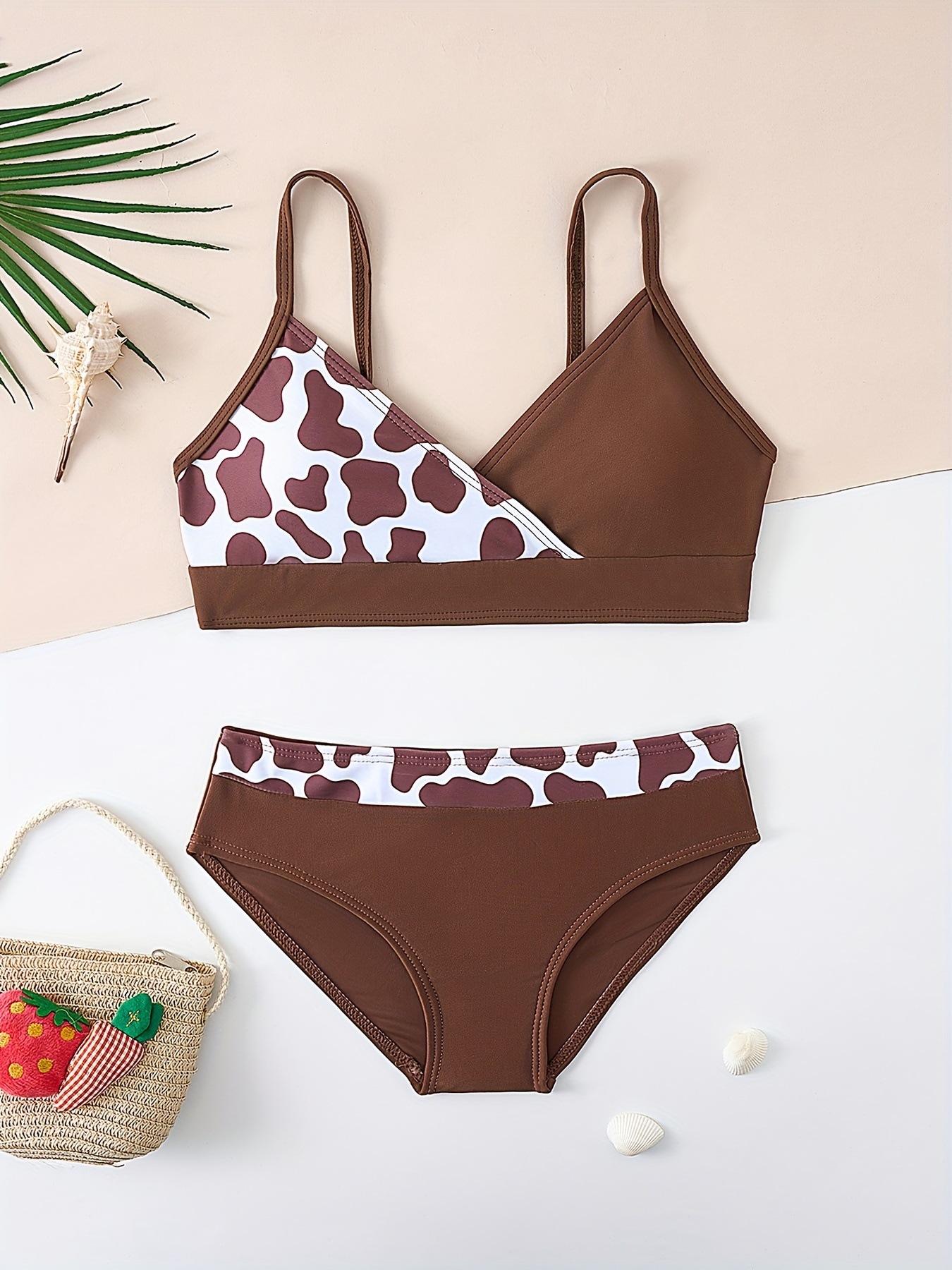 어린이 아기 소녀 수영복 갈색 젖소 얼룩 인쇄 수영복 패션 스플릿 귀여운 수영복 퍼프 슬리브