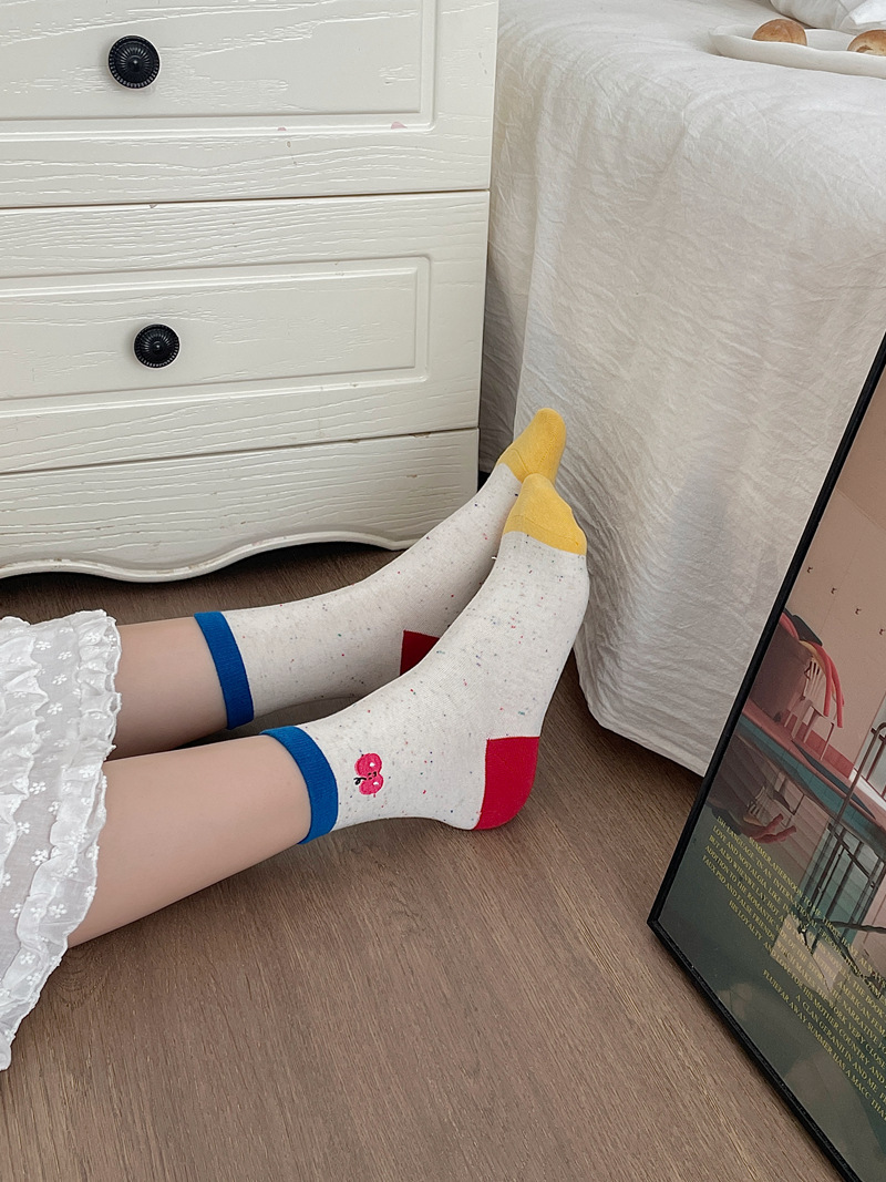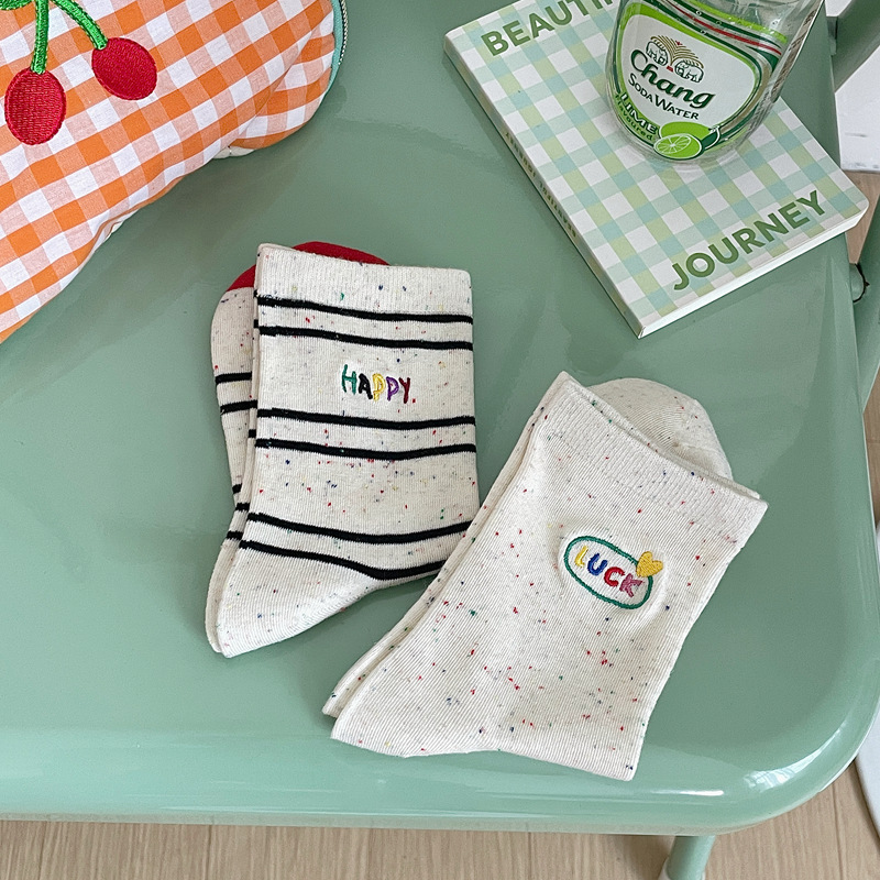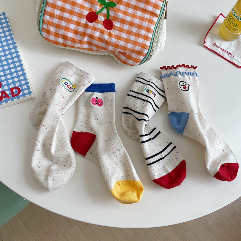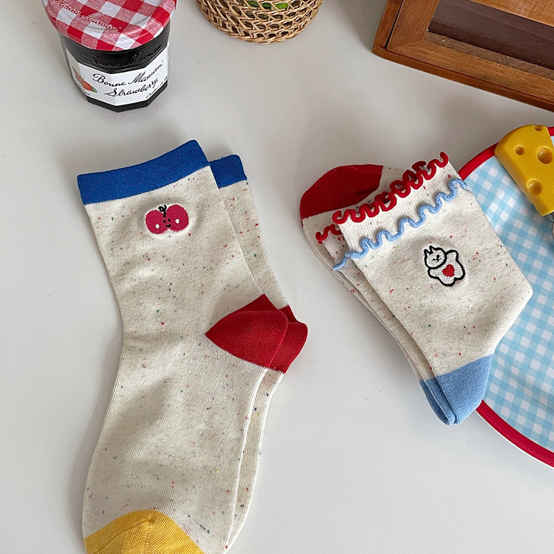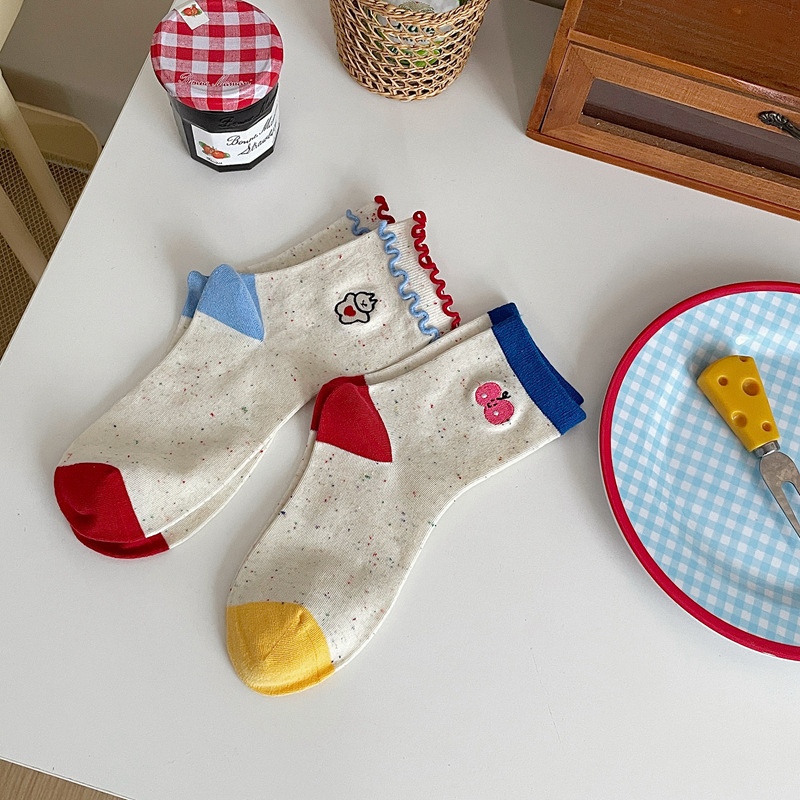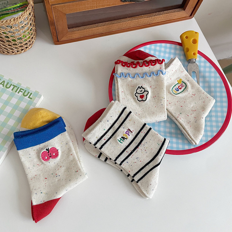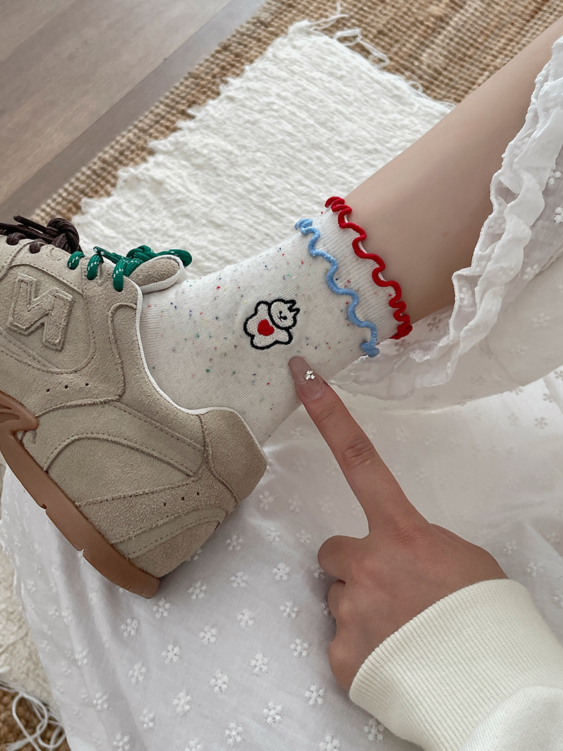 가을과 겨울 새로운 포인트 원사 더블 나무 귀 자수 귀여운 곰 레이스 튜브 양말 재미 소녀 면화 양말 도매