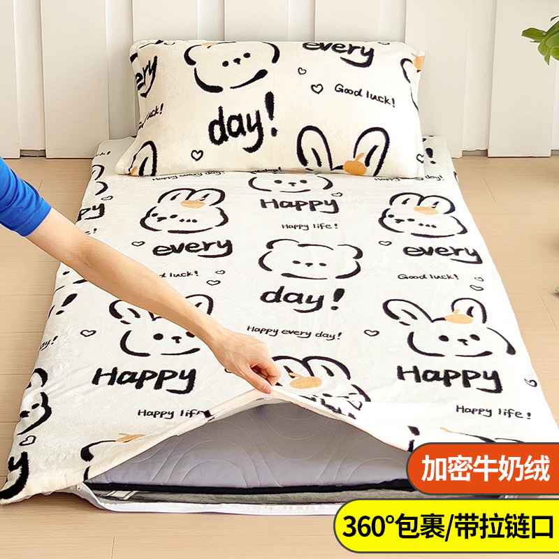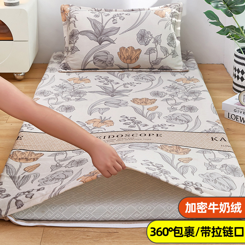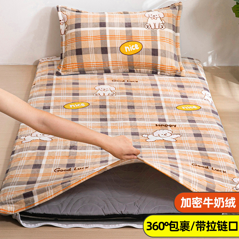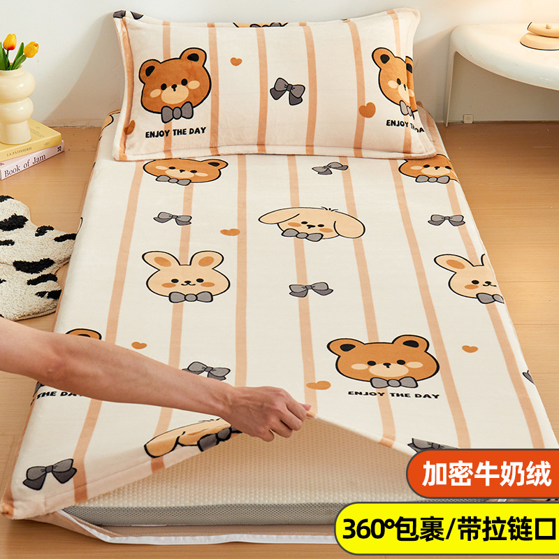 겨울 우유 벨벳 매트리스 커버 매트리스 커버 보호 커버 90x190 학생 기숙사 매트리스 커버 1 인 플러스 벨벳 쿠션 퀼트 커버