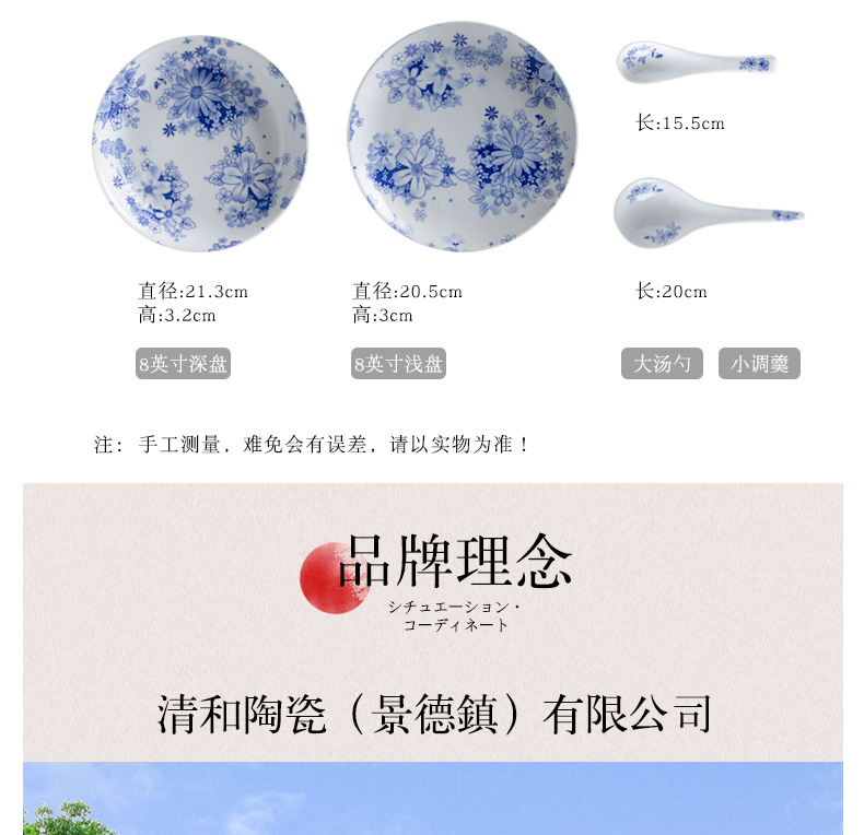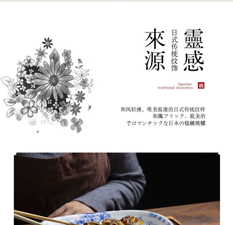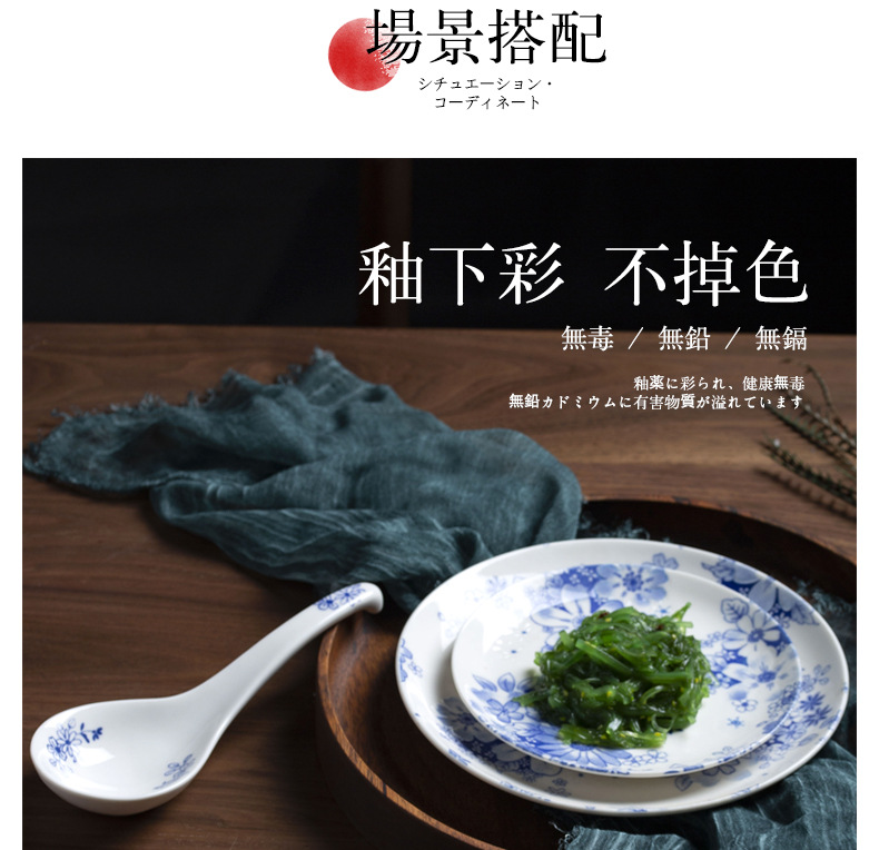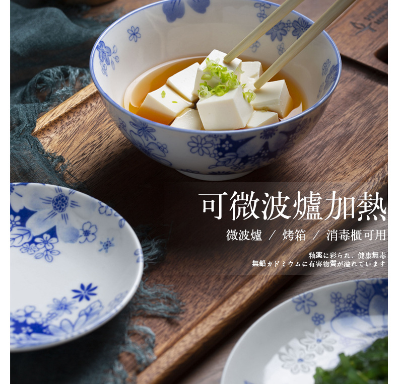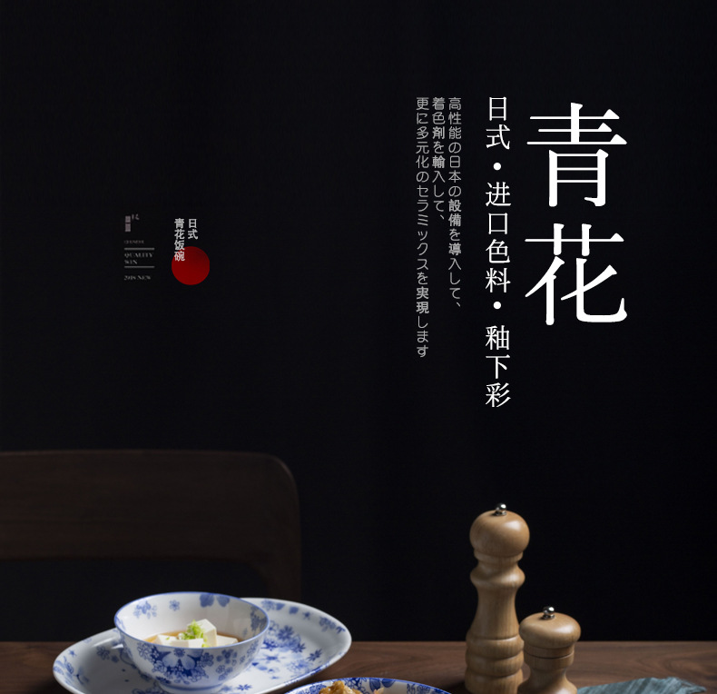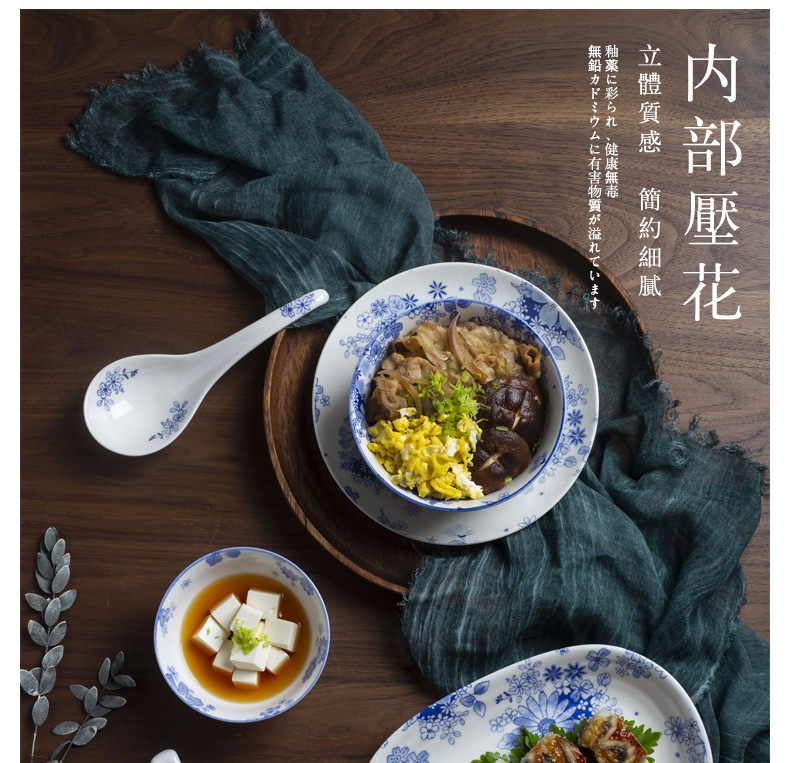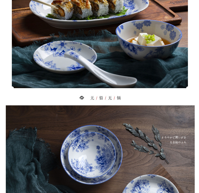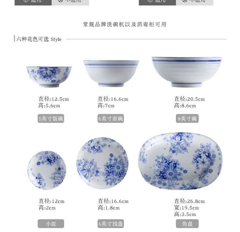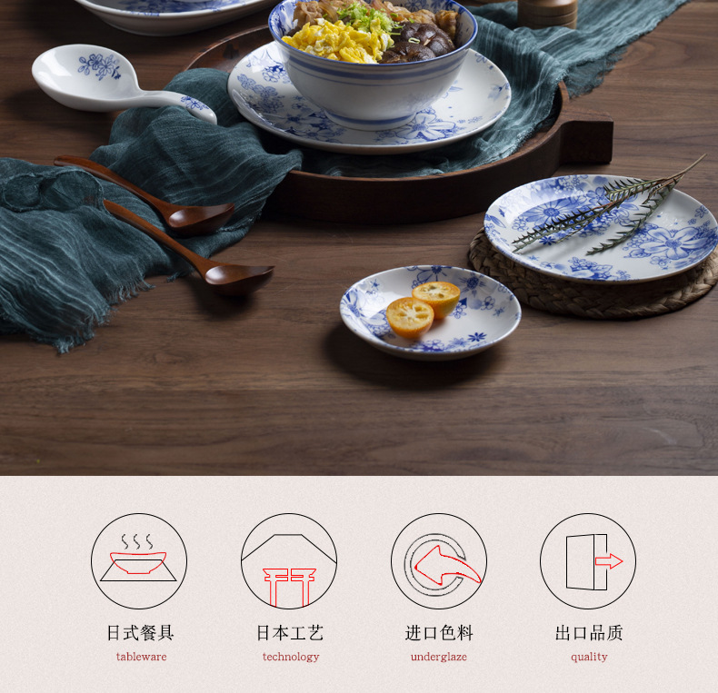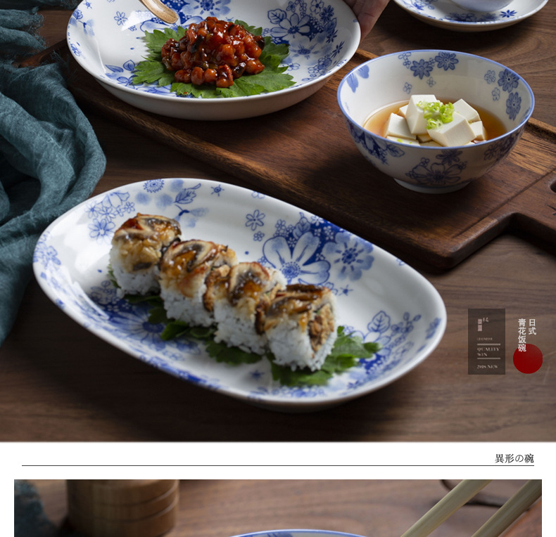 일본식 파란색과 흰색 세라믹 식기 세트 녹은 색 뼈 접시 깊은 밥 그릇 요리 수프 국수 그릇스토어 가기