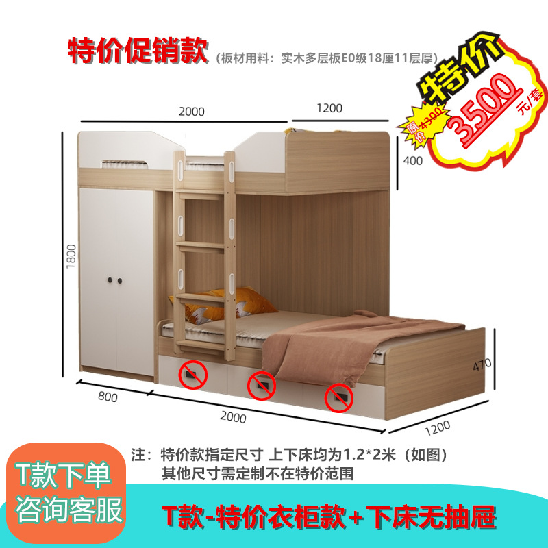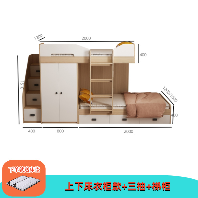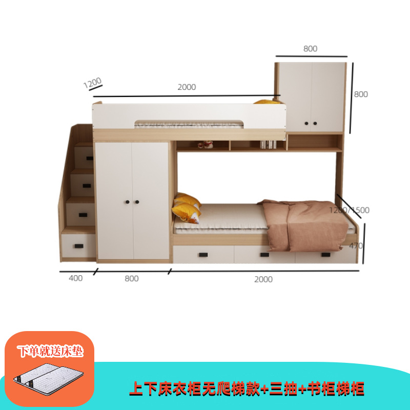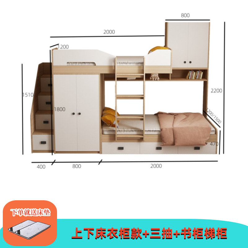 • 사다리가 없는 F형 상하 침대 옷장 + 서랍 3개 + 책장 사다리 캐비닛 E0 원목 다층 보드