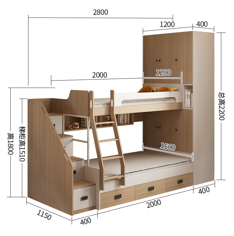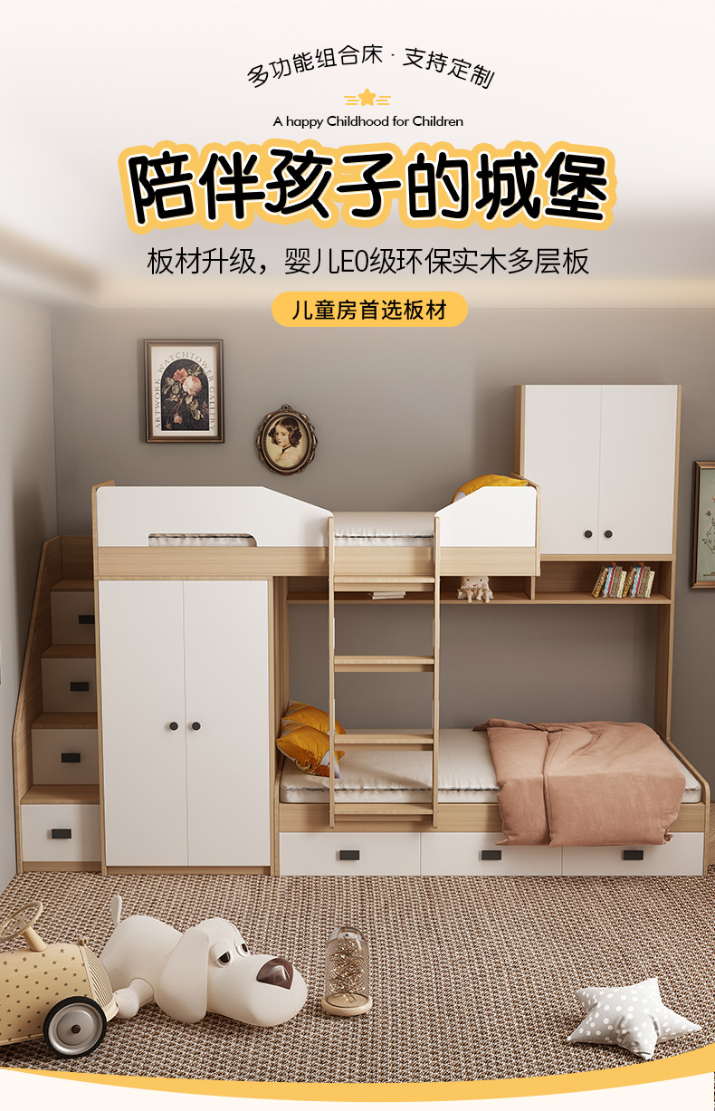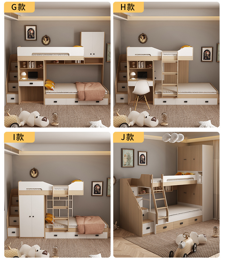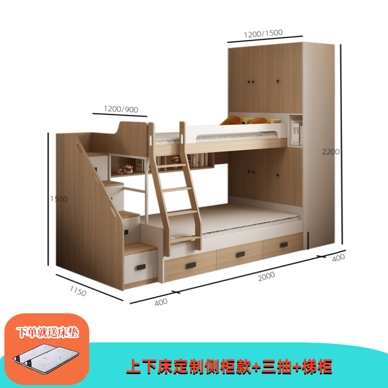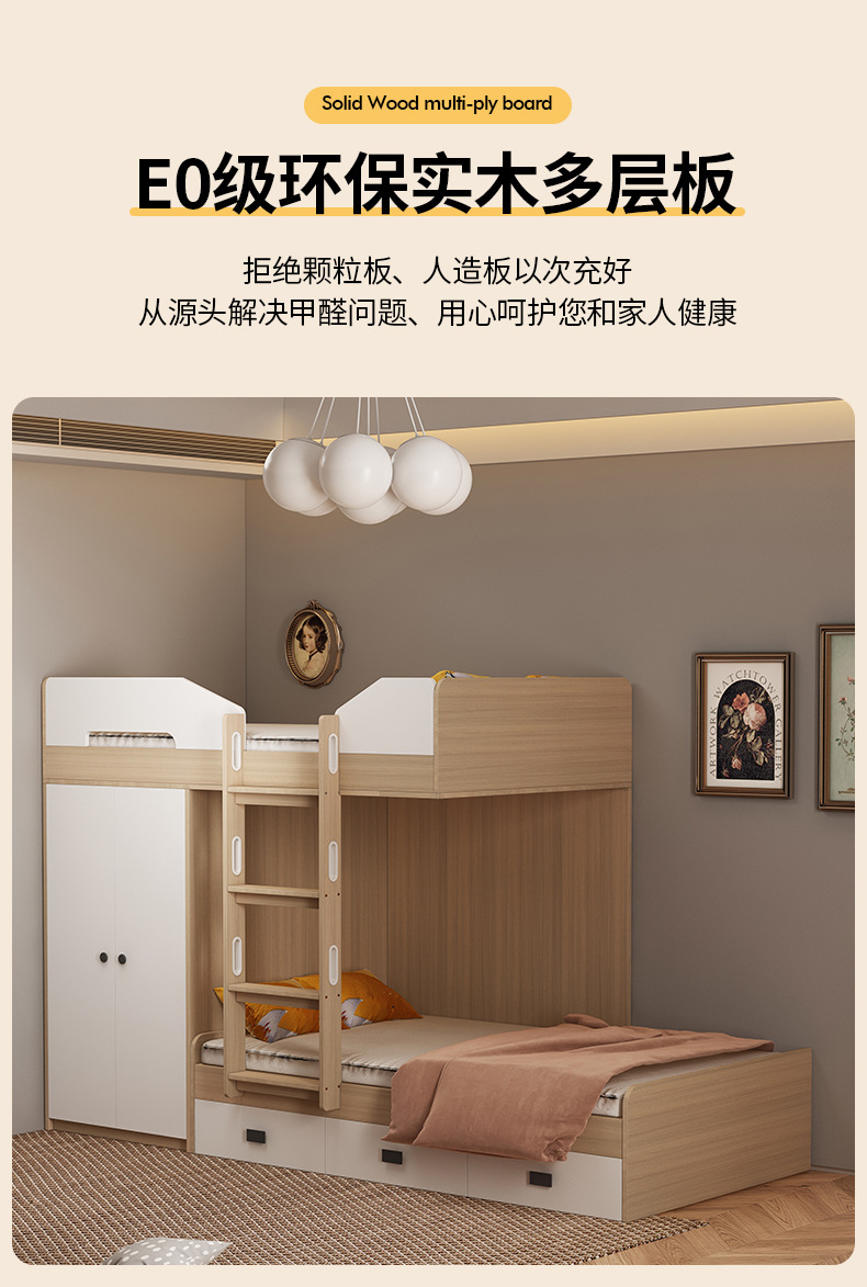 • G 모델, 상부 및 하부 침대 옷장 모델 + 서랍 3개 + 사다리 캐비닛 E0 원목 다층 보드