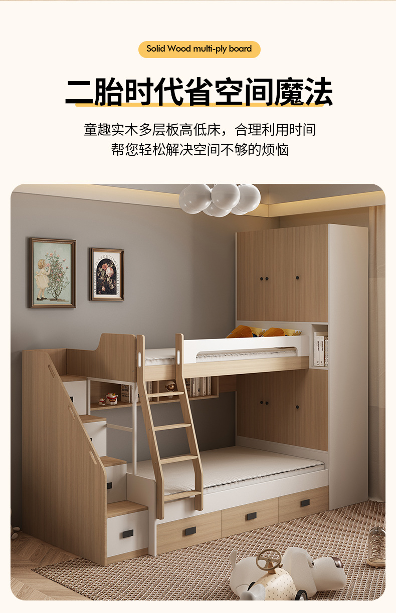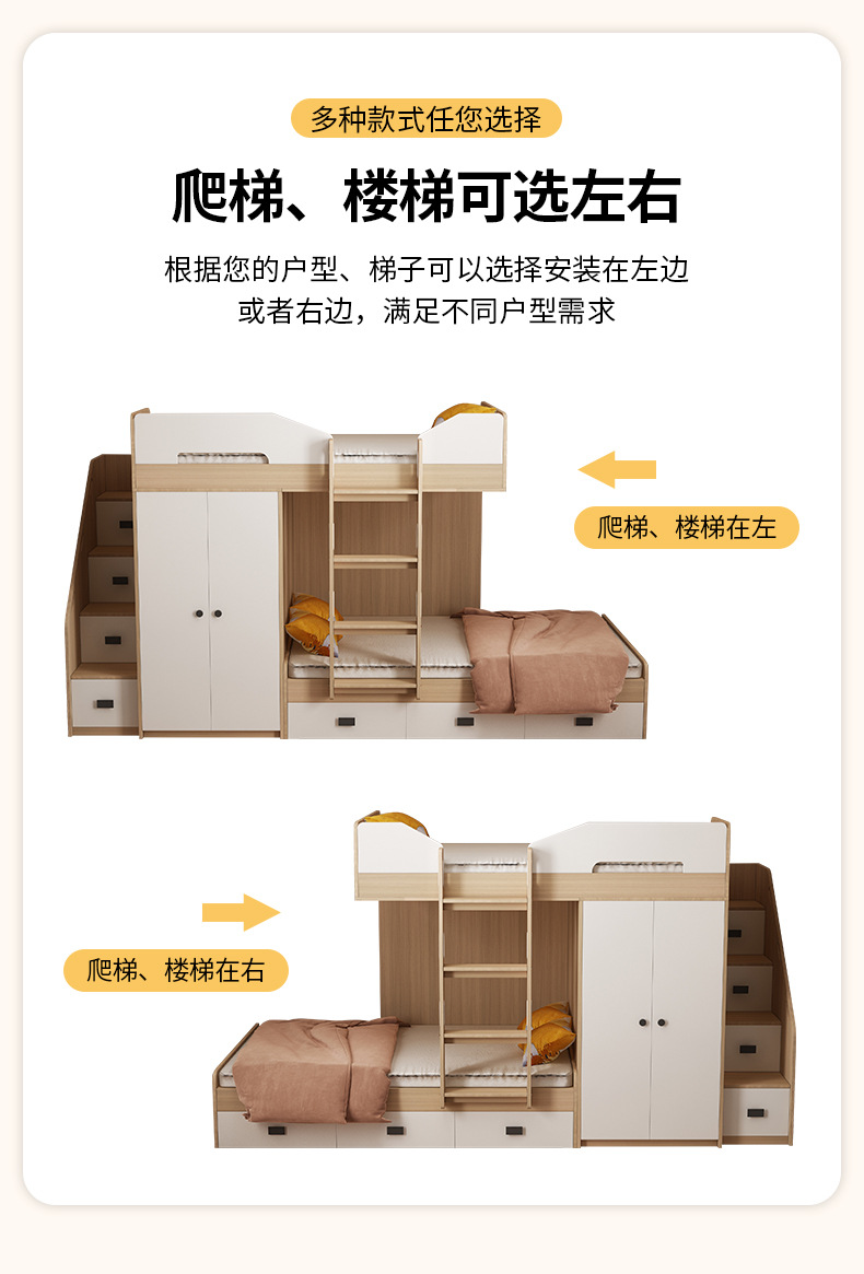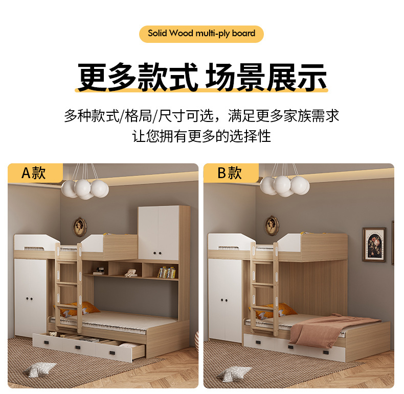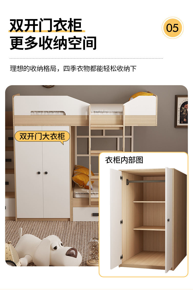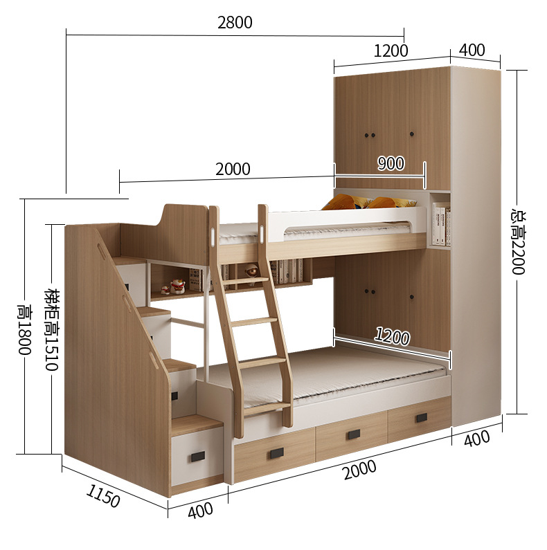 • G 모델, 상부 및 하부 침대 옷장 모델 + 서랍 3개 + 사다리 캐비닛 E0 원목 다층 보드