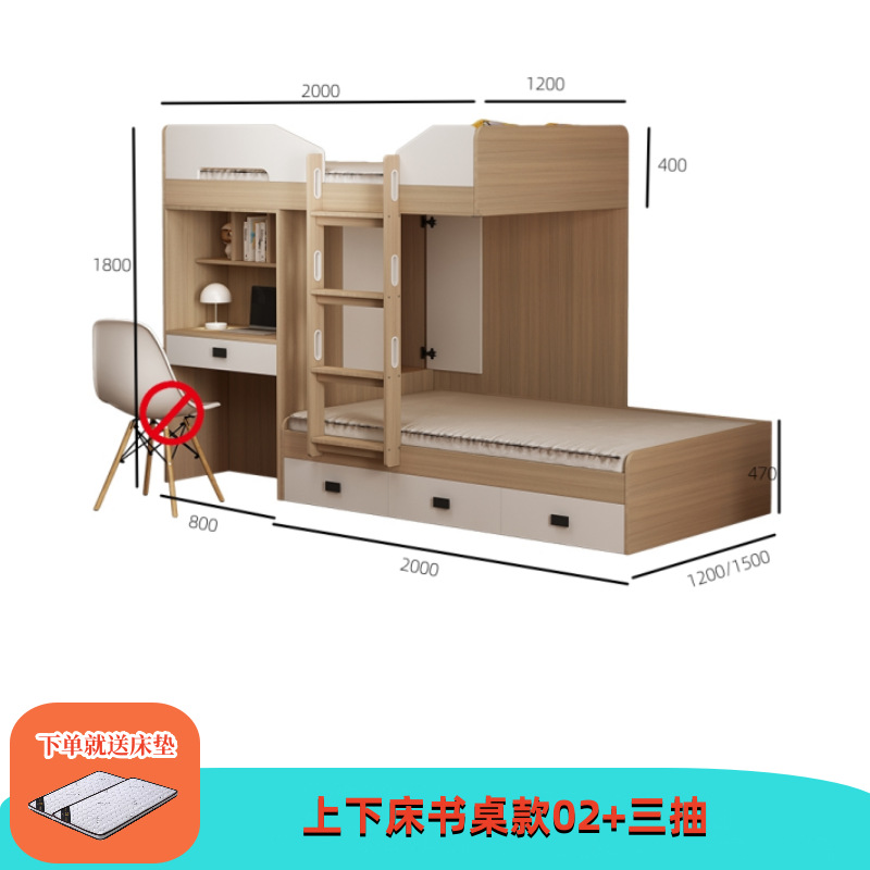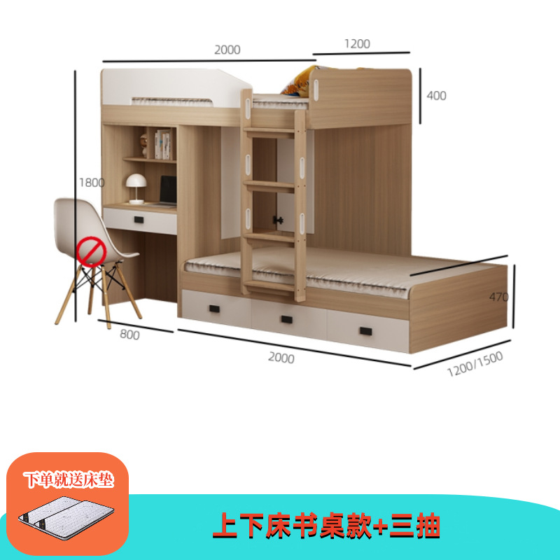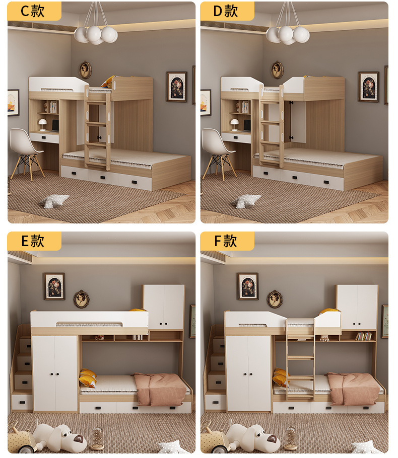 • 모델 D, 상하 침대 책상 모델 + 서랍 3개 E0 원목 다층 보드