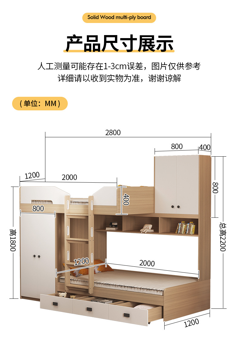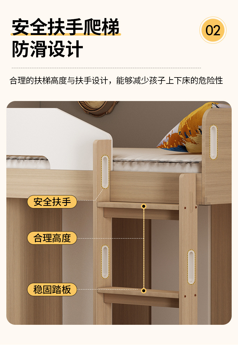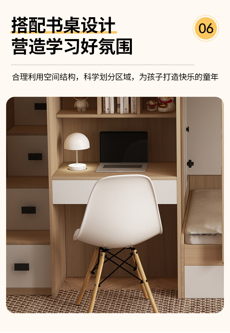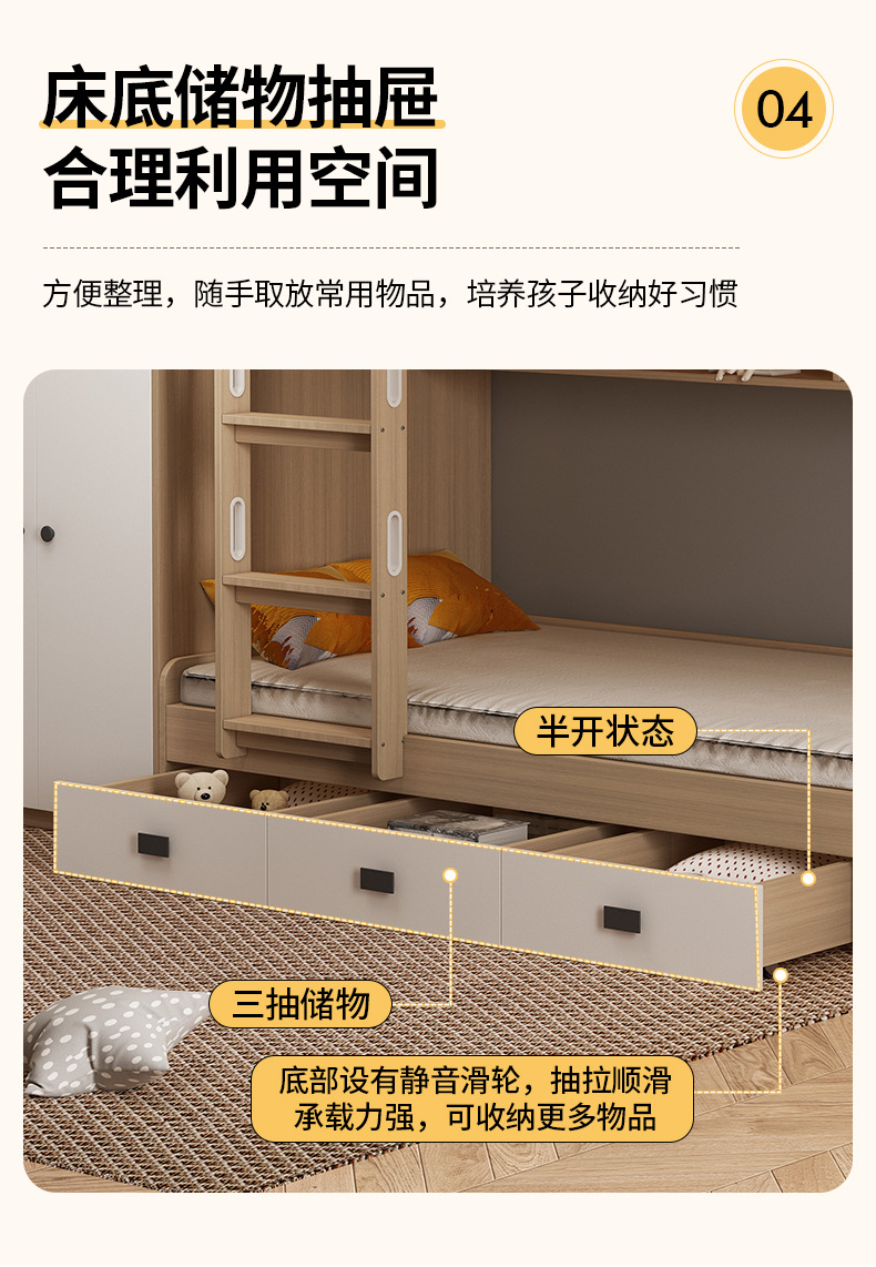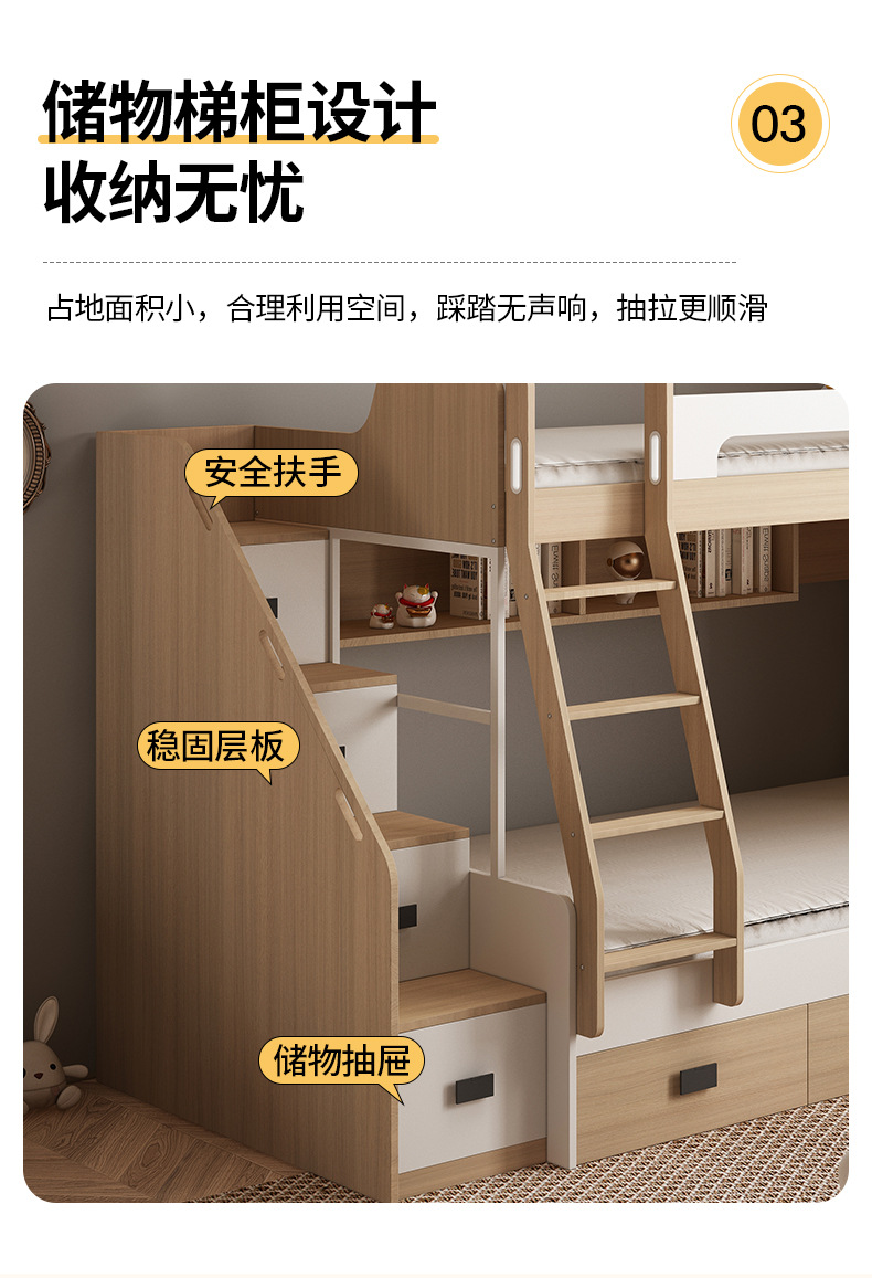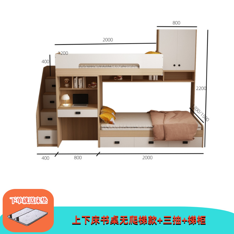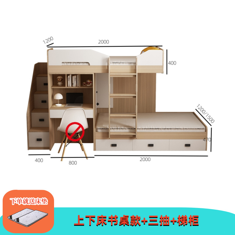 • M 모델, 상하 침대 책상 모델 + 서랍 3개 + 사다리 캐비닛 E0 원목 다층 보드