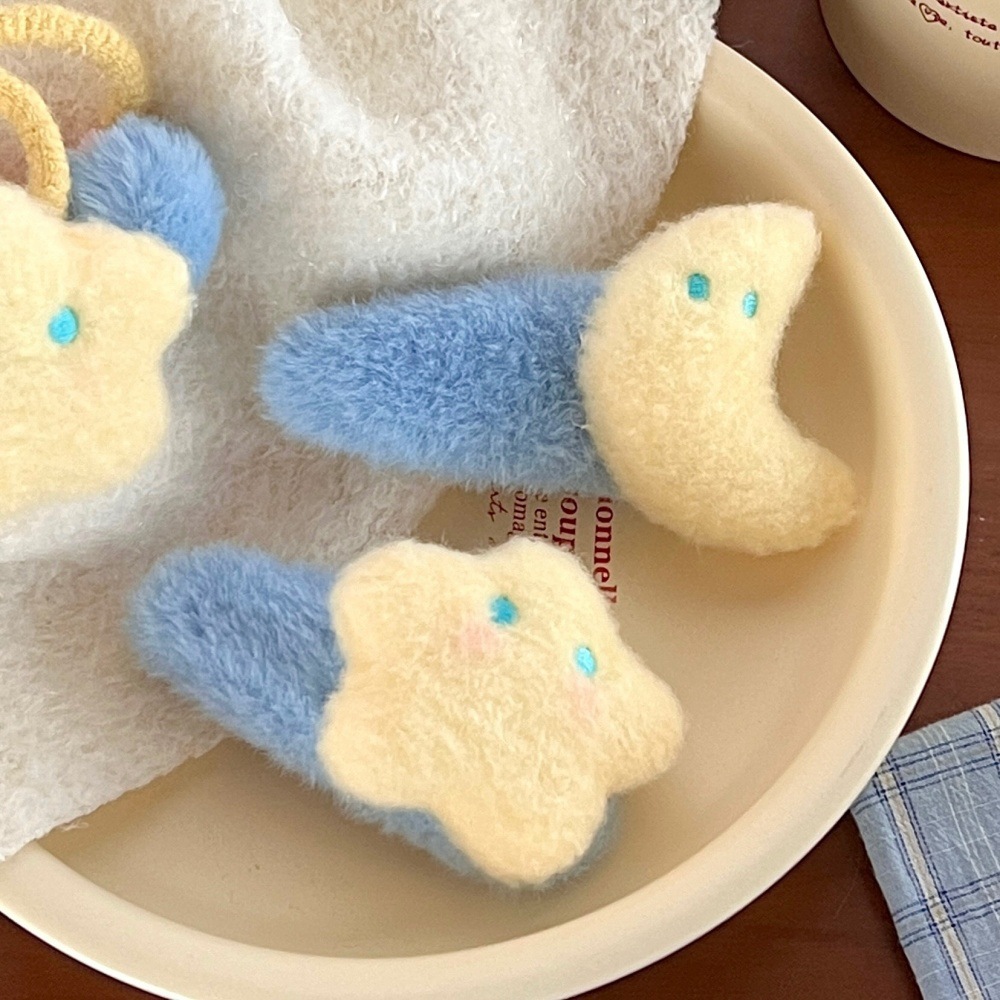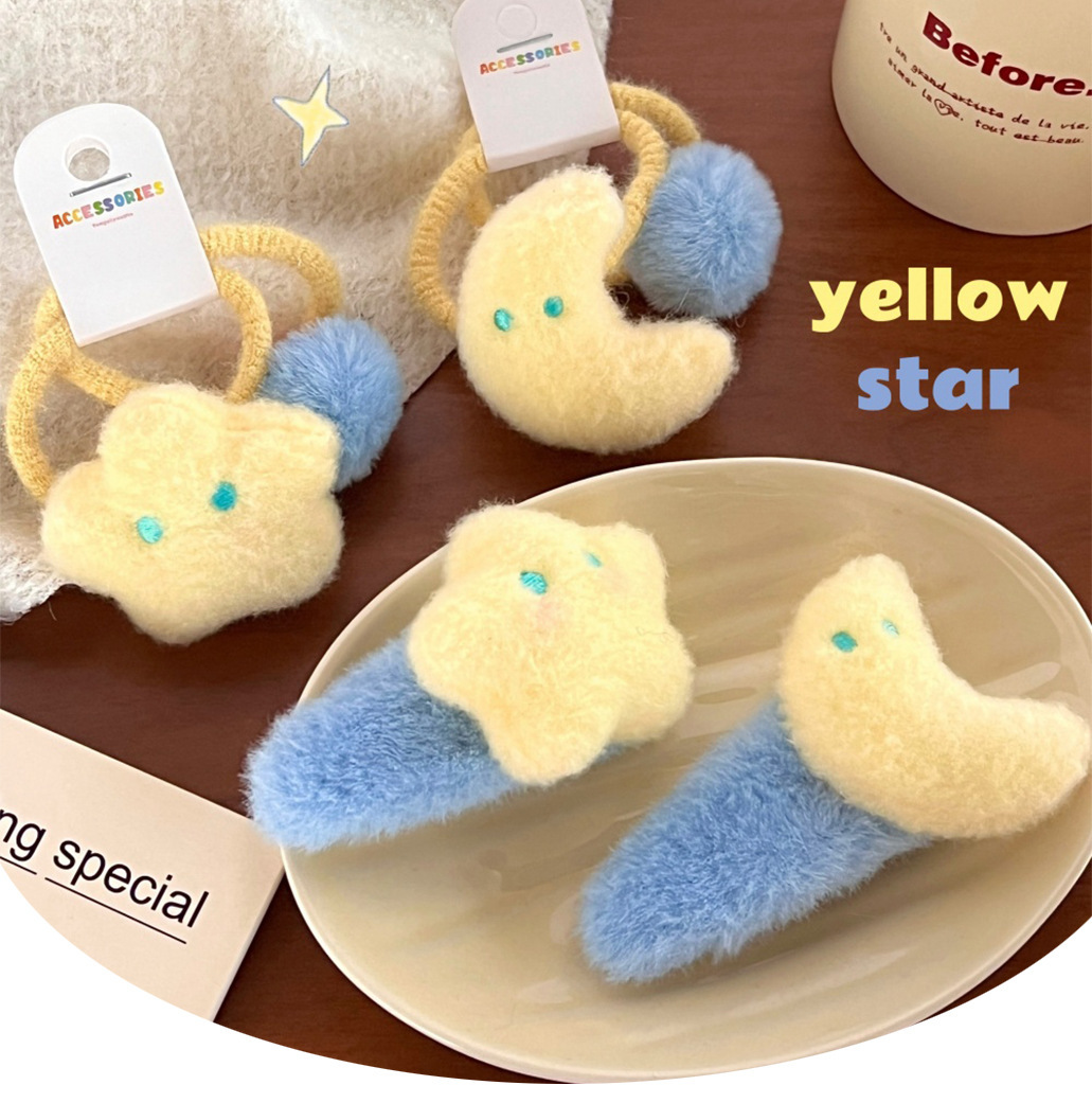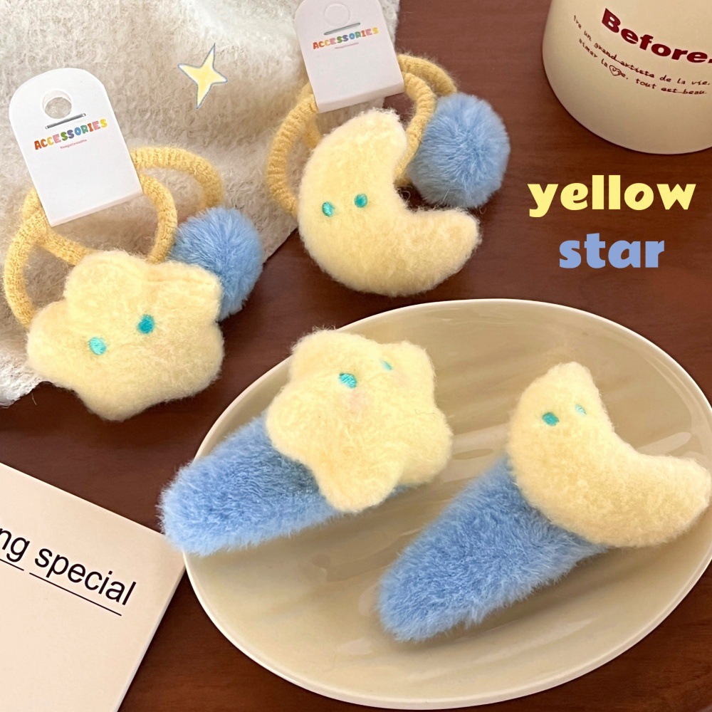 새로운 귀여운 우유 노란 별 문 머리핀 이발 봉제 bb 클립 클립 클립 소녀의 포니 테일 헤어 밴드 헤어 액세서리