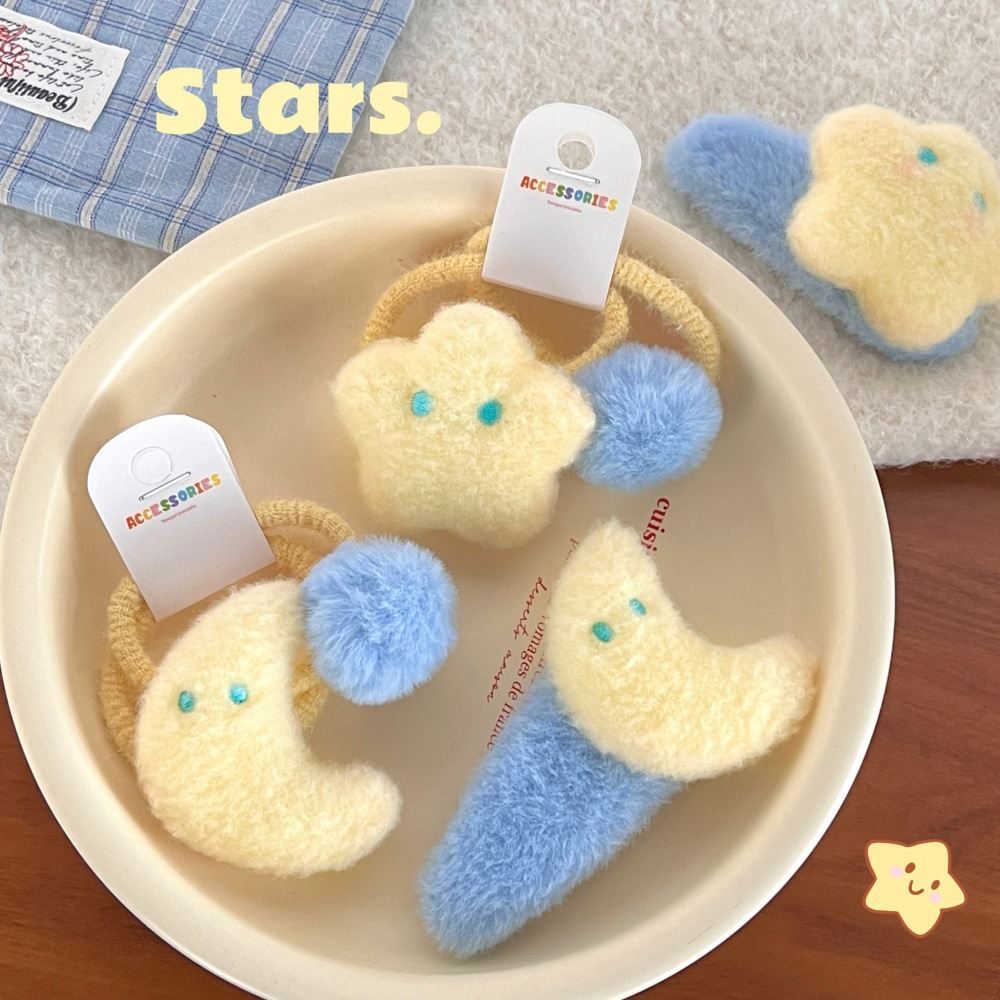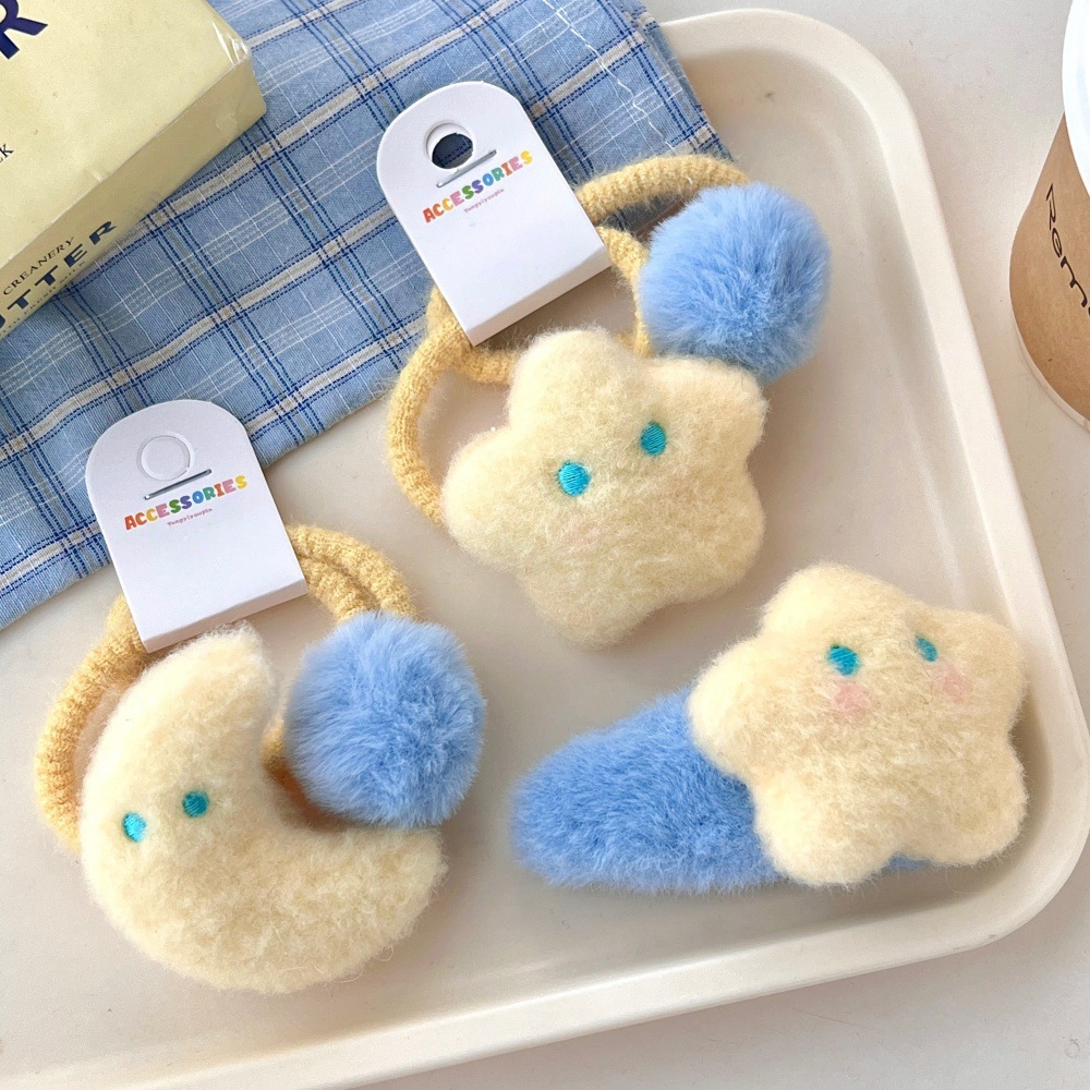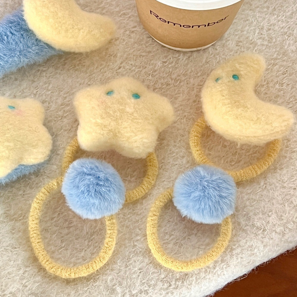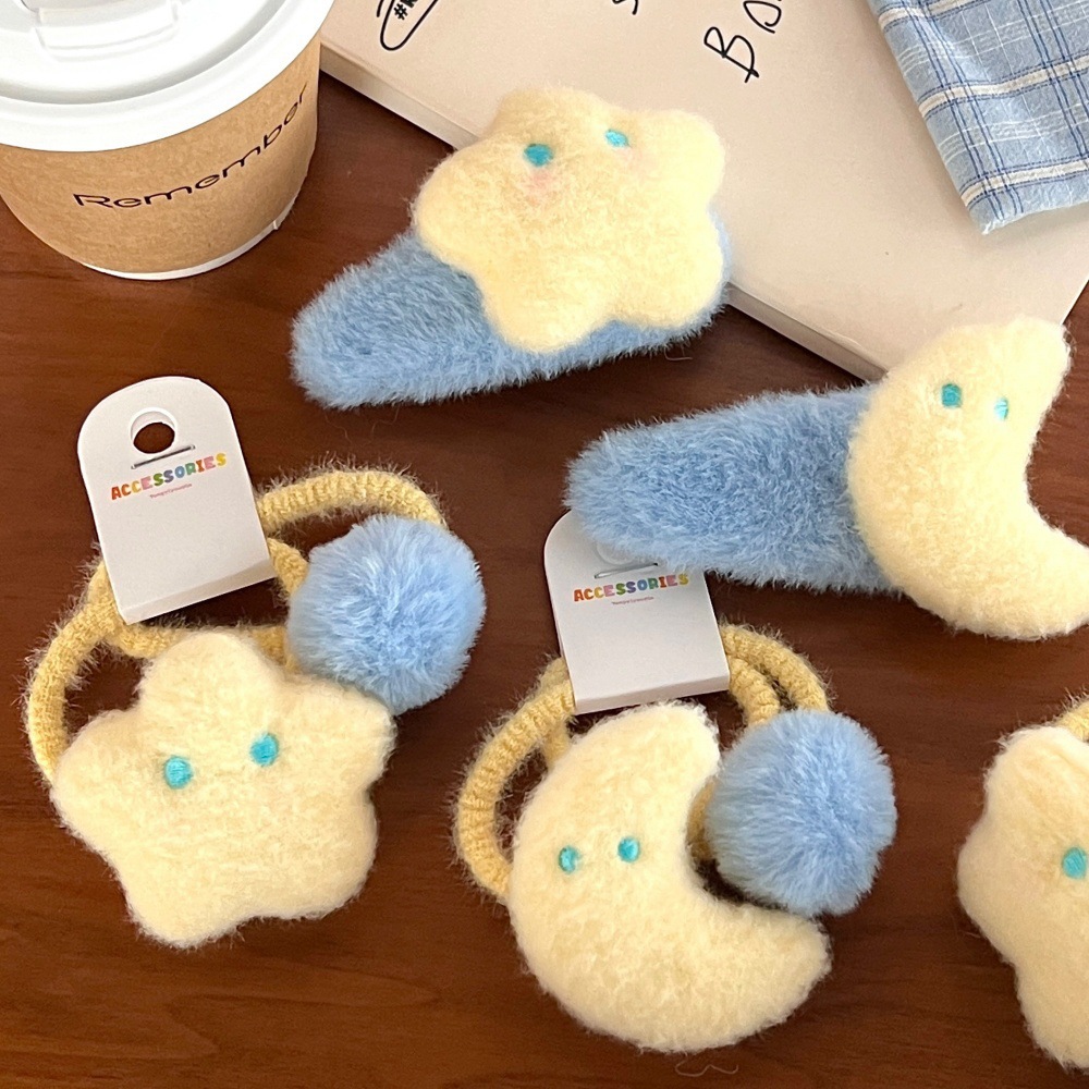 새로운 귀여운 우유 노란 별 문 머리핀 이발 봉제 bb 클립 클립 클립 소녀의 포니 테일 헤어 밴드 헤어 액세서리
