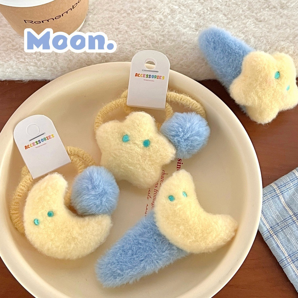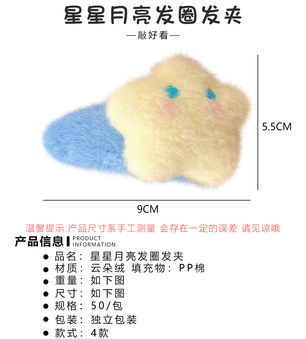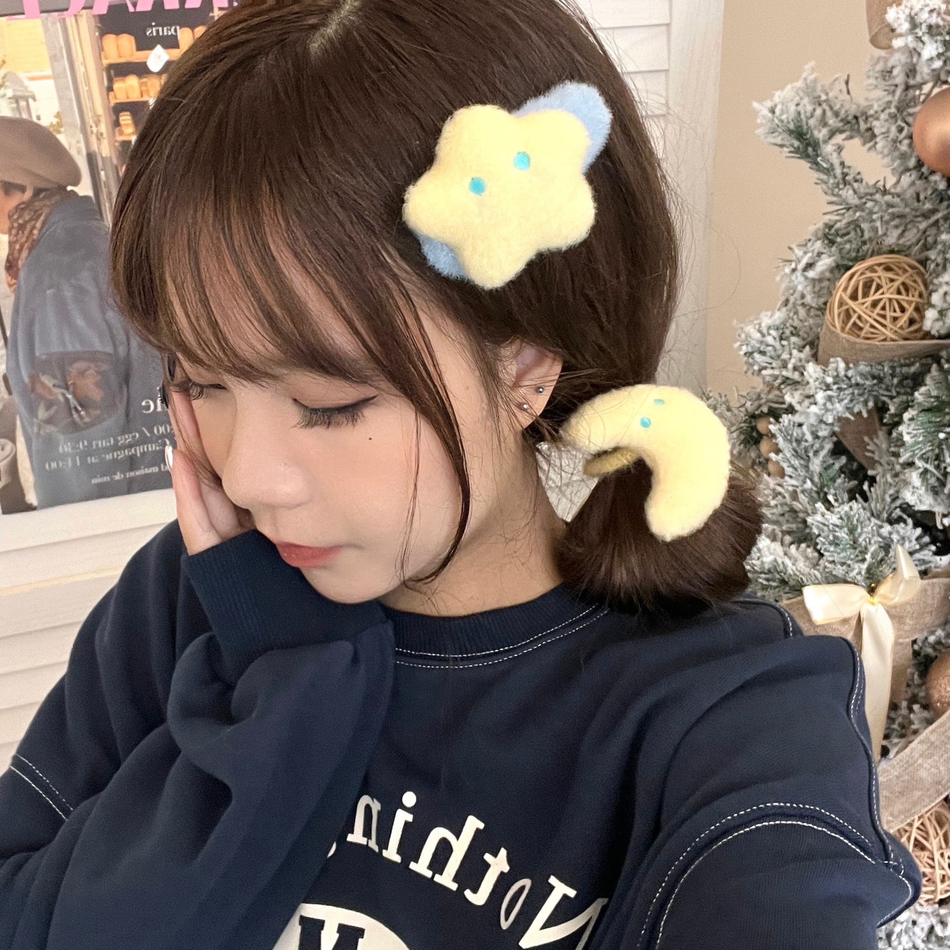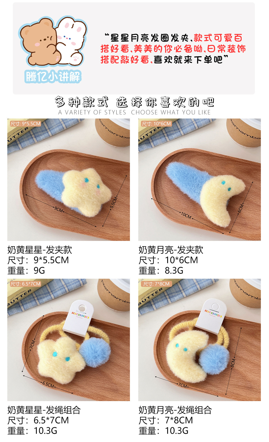 새로운 귀여운 우유 노란 별 문 머리핀 이발 봉제 bb 클립 클립 클립 소녀의 포니 테일 헤어 밴드 헤어 액세서리스토어 가기
