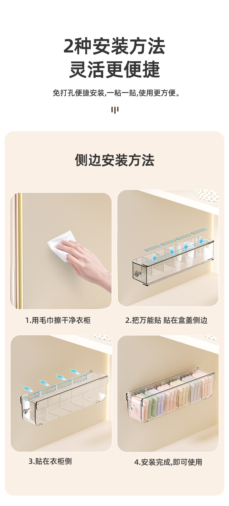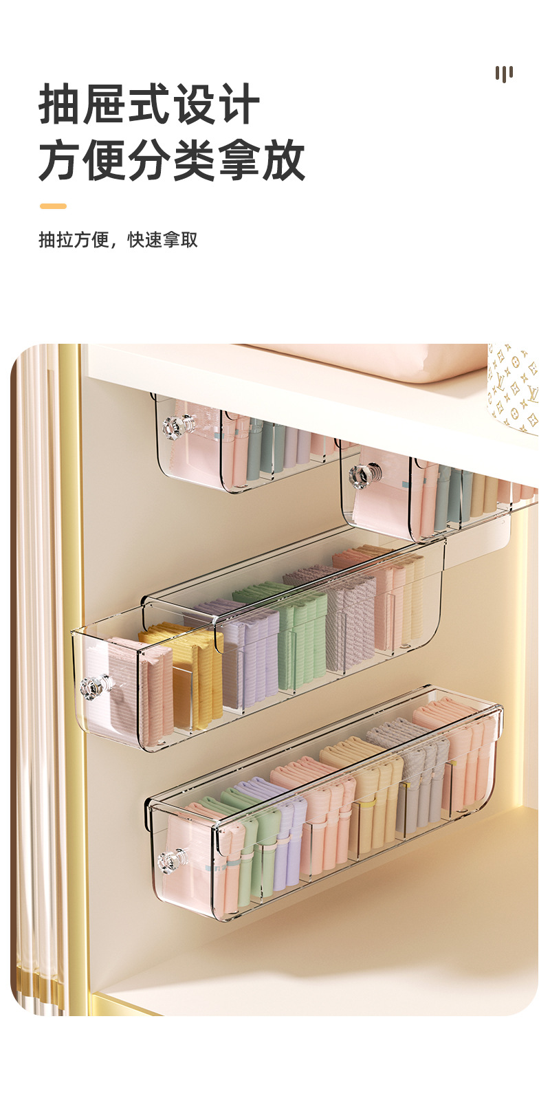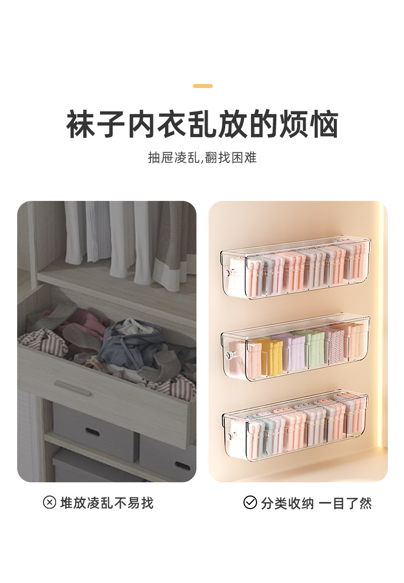 속옷 보관 상자 양말 속옷 주최자 투명한 벽 교수형 서랍 유형 홈 옷장 분리 유물 3 대 1