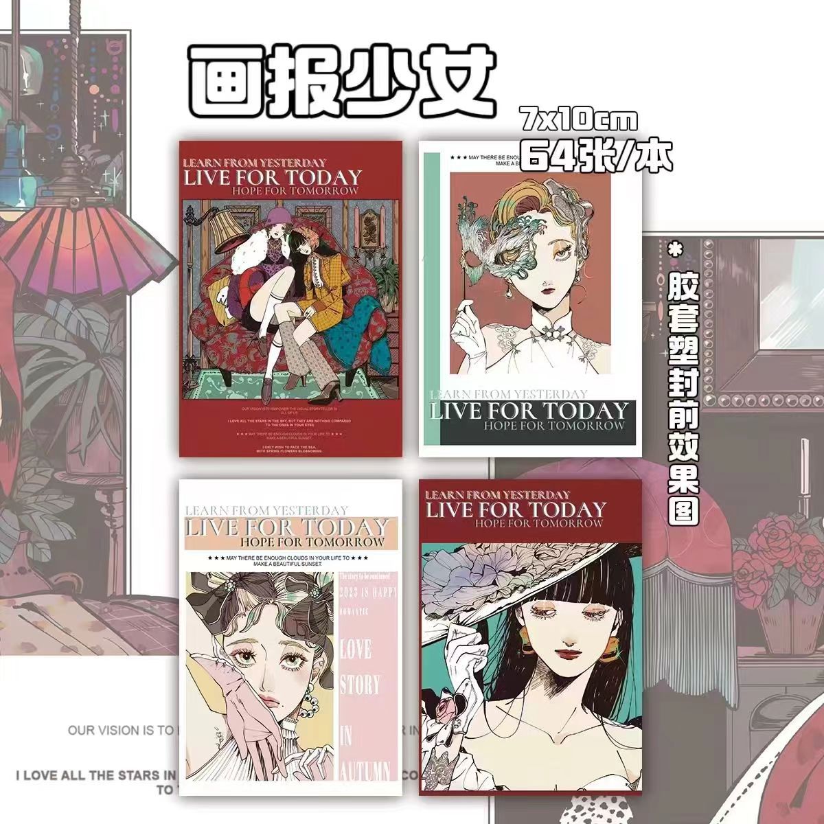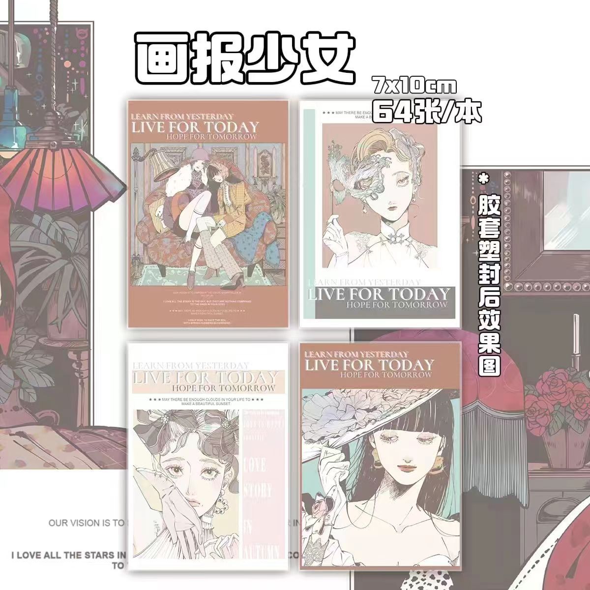 그림 소녀 레트로 미국 스타일 A7 고무 케이스 포켓북 휴대용 학생 노트북 내구성 미니 수평 라인 북스토어 가기