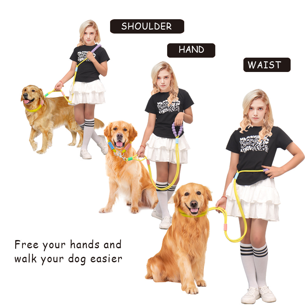개 견인 로프 다기능 개 걷는 로프는 자유로운 손 견인 로프 칼라를 가로 질러 기울어 질 수 있습니다.스토어 가기